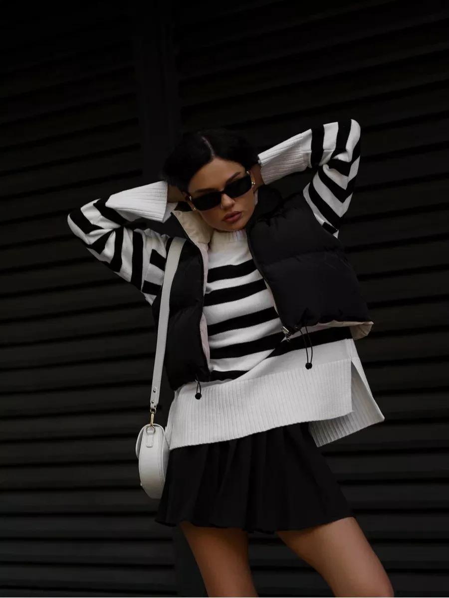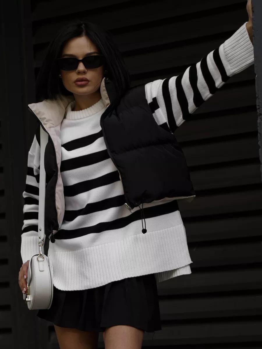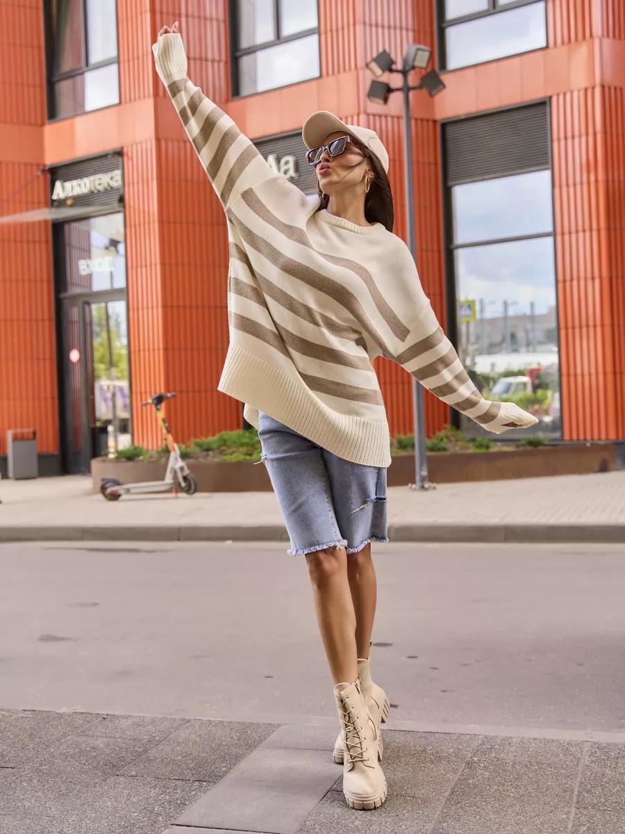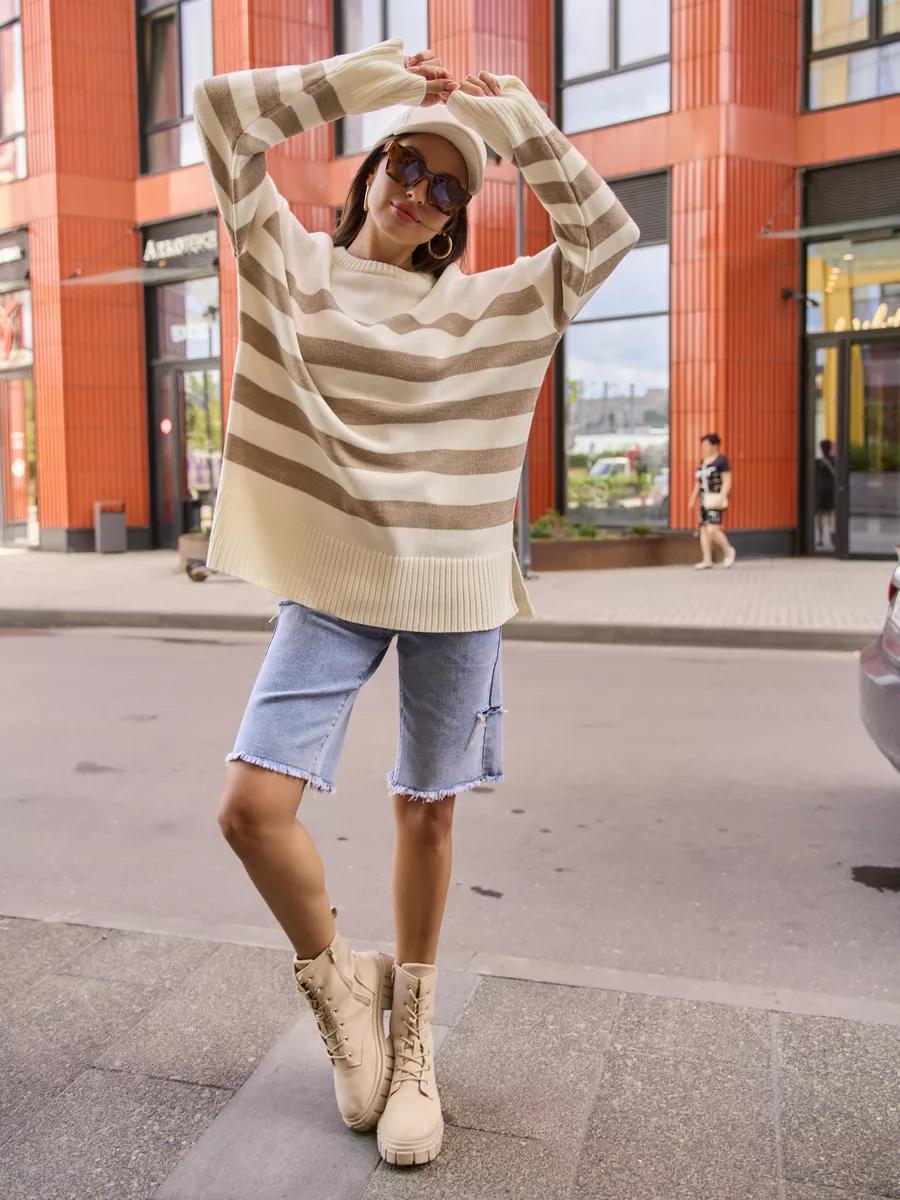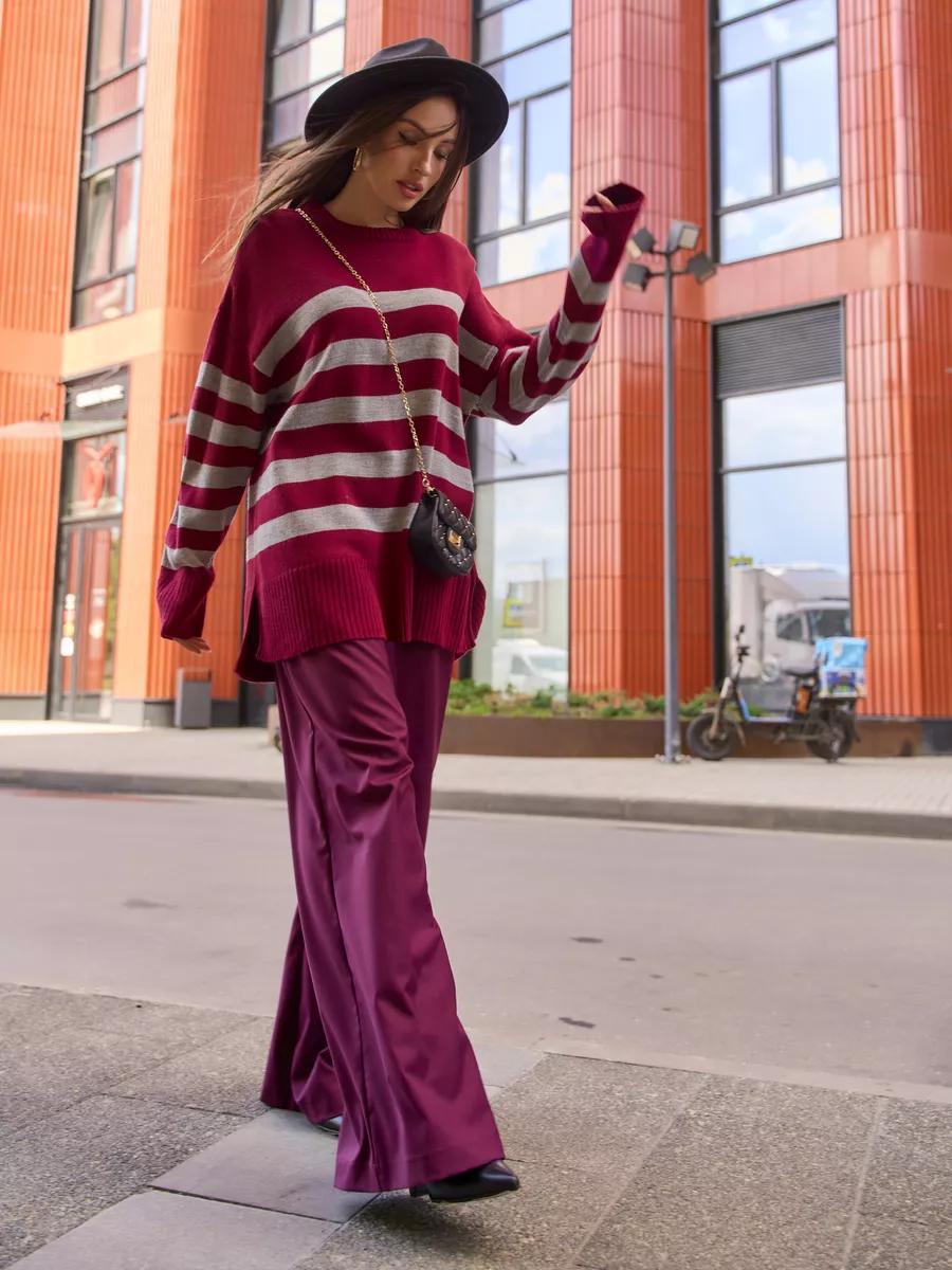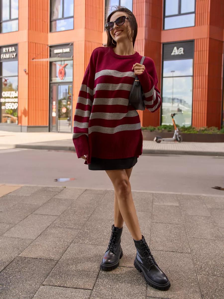 Ropa de Punto para Mujer Otoño e Invierno 2025 Nuevo Europeo y Americano Transfronterizo Casual Rayas Suelto Cuello Redondo Jersey Ropa de Punto Chaqueta para Mujer