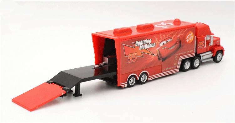 Función: McUncle doméstico se desliza hacia adelante, sin sonido ni luz, la cabeza del coche y la carrocería del coche se pueden separar, la puerta trasera de la carrocería del coche se puede abrir, y puede caber Rayo McQueen.