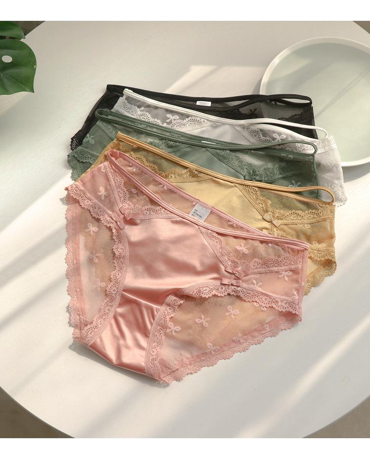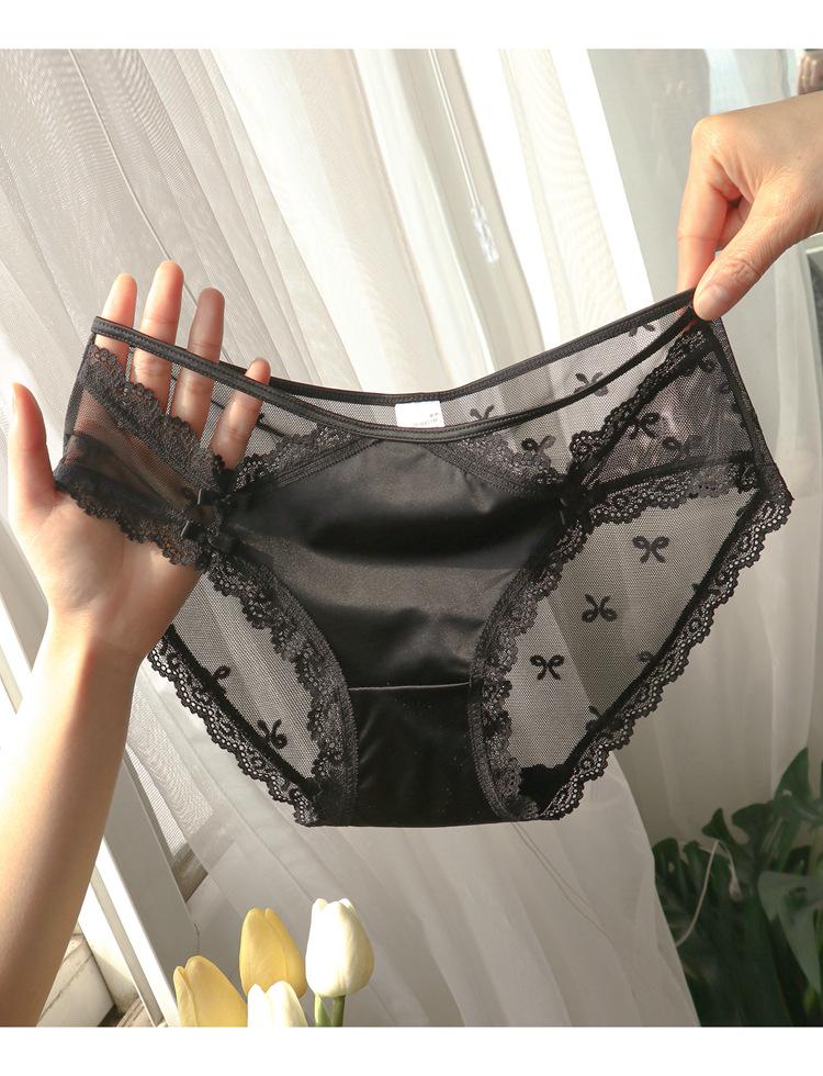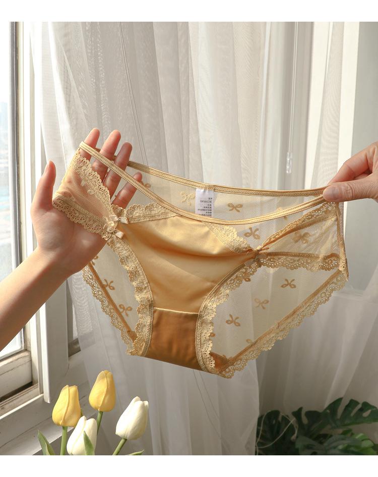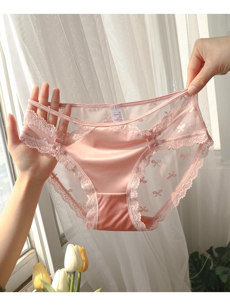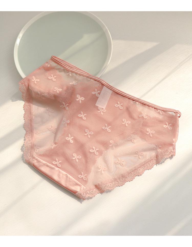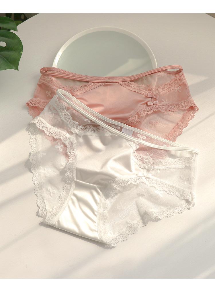 Ropa interior de encaje estilo francés para mujer, cintura baja, pura, transparente, de malla hueca, bragas blancas, estilo niña, bragas finas de verano