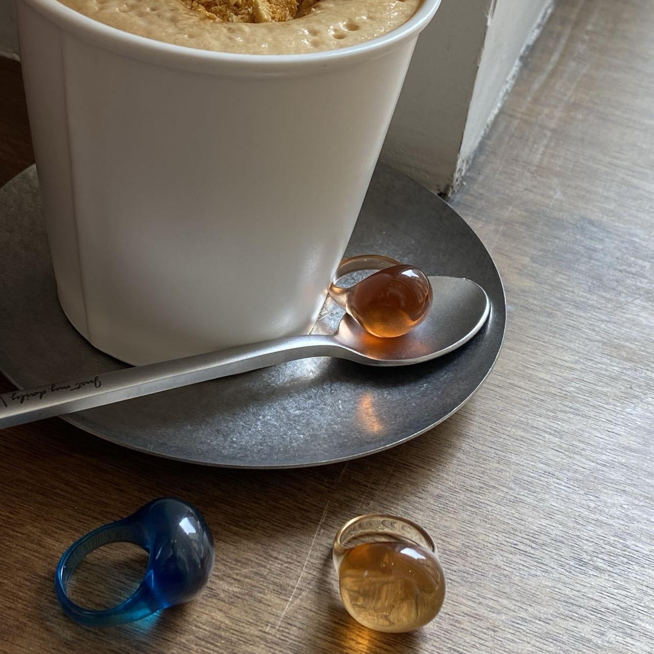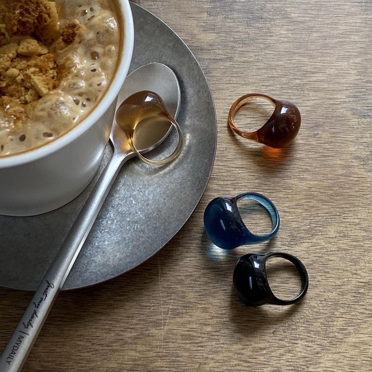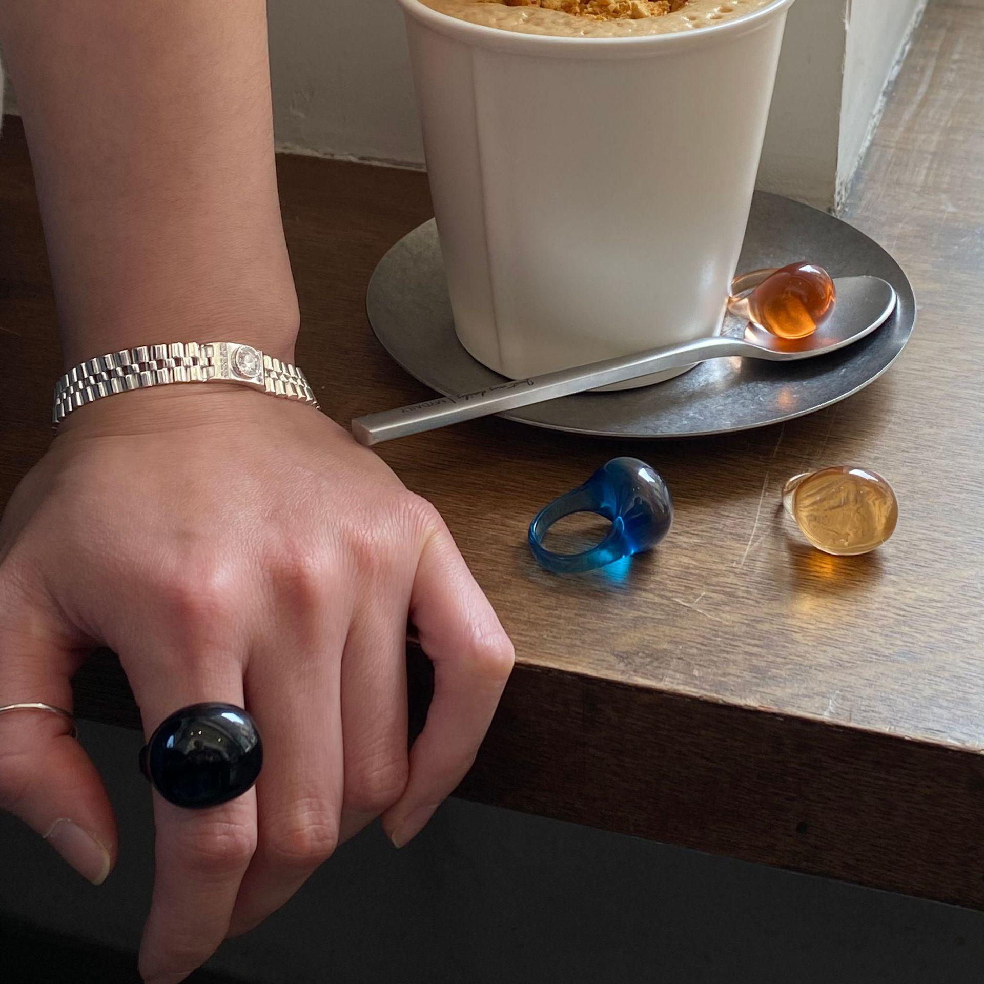 Nuevo anillo de resina transparente de nicho, de verano, con gelatina apilada, elegante y transparente para mujer.
