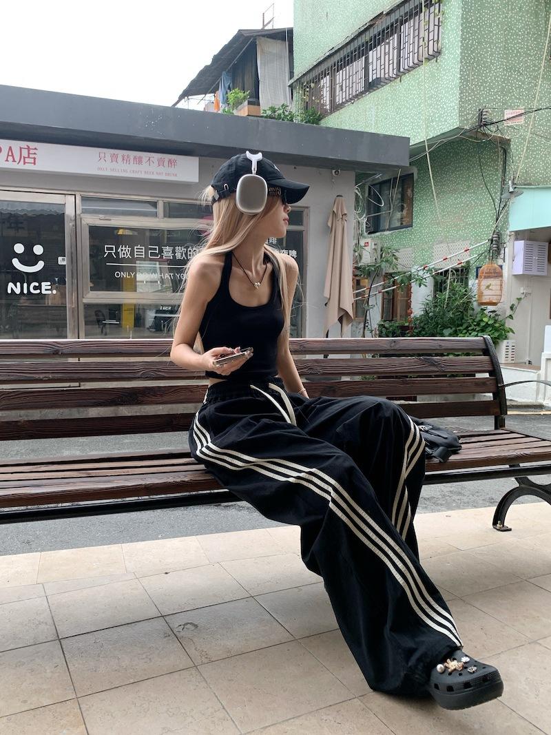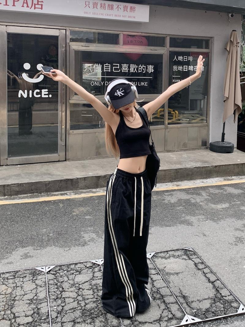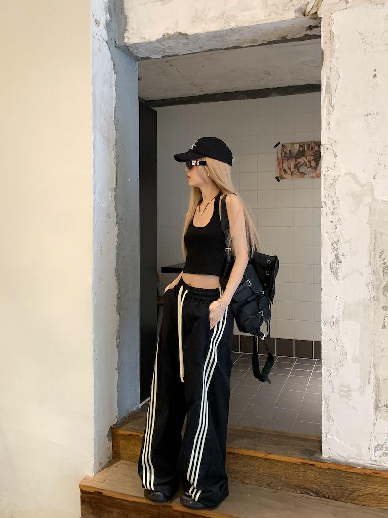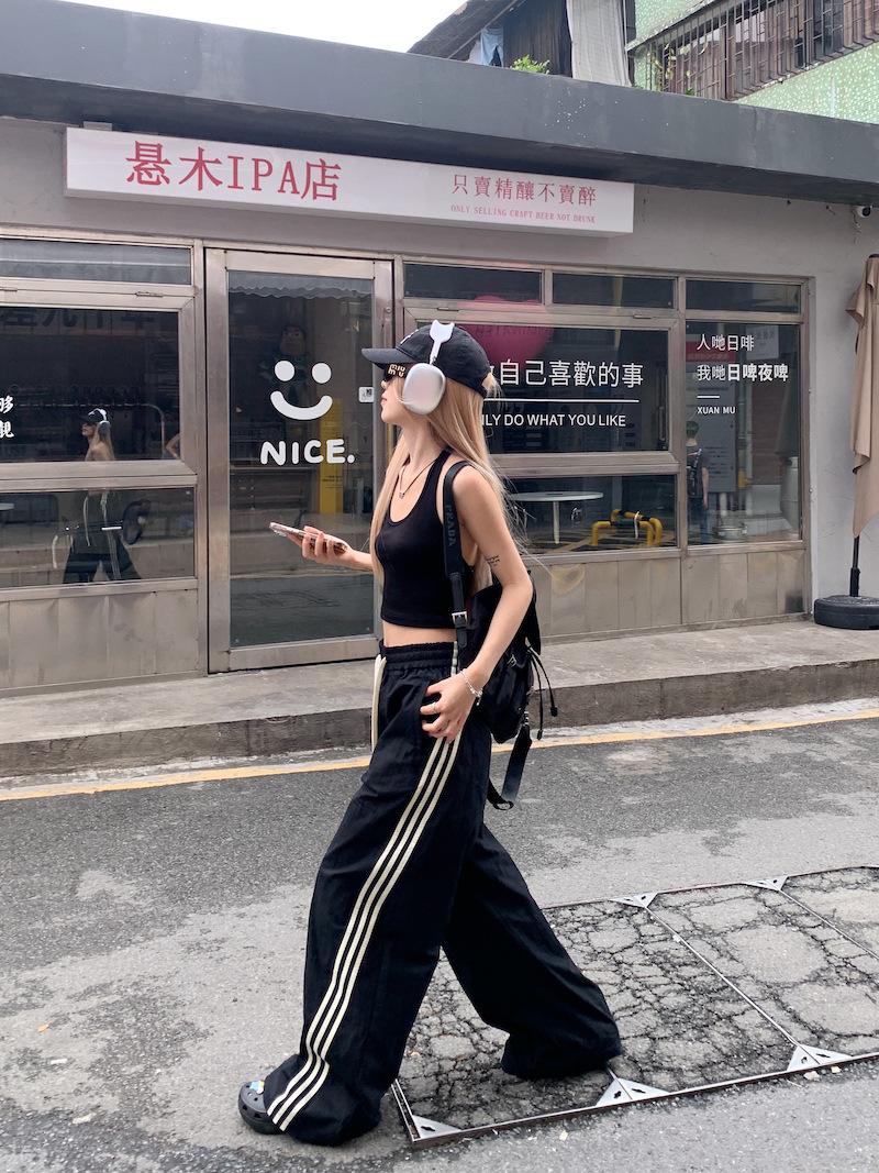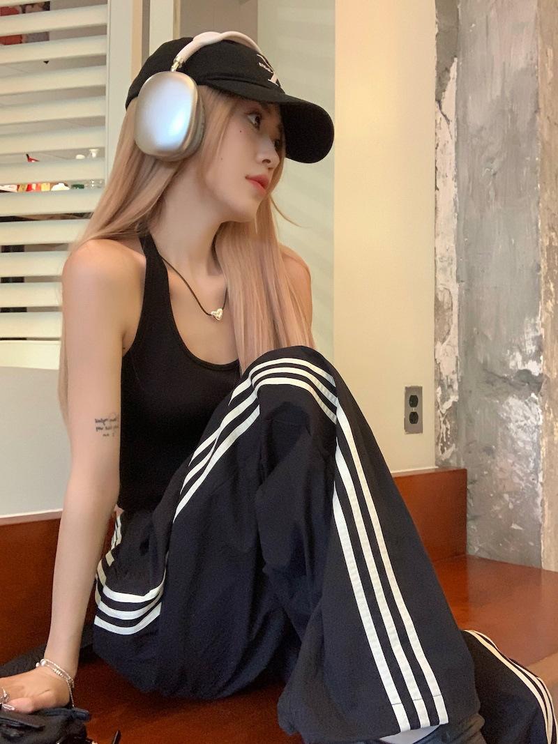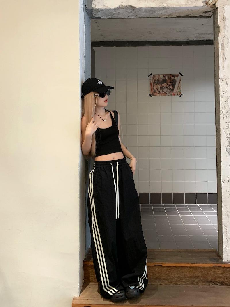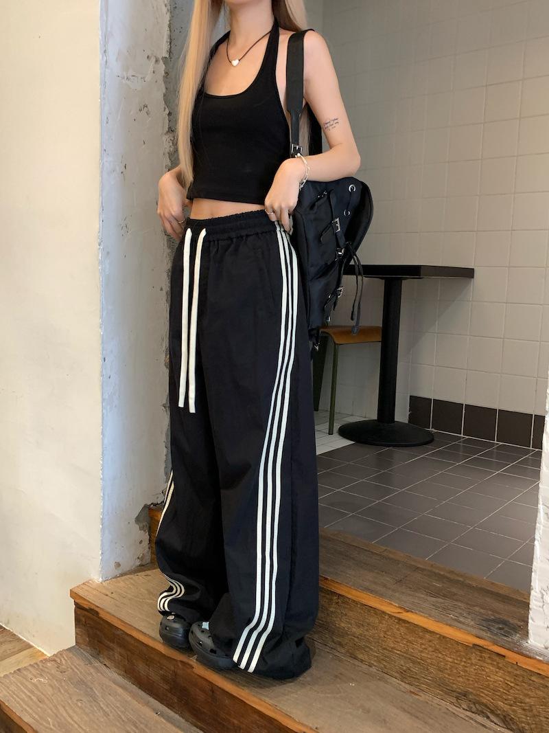 Pantalones Deportivos Retro Estilo Americano para Mujer Verano Delgados Secado Rápido Casuales Pantalones Sueltos de Pierna Ancha Pantalones Drapeados