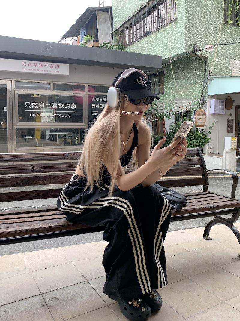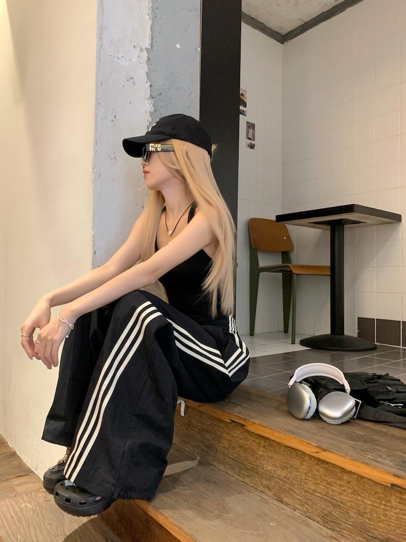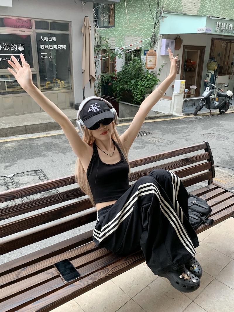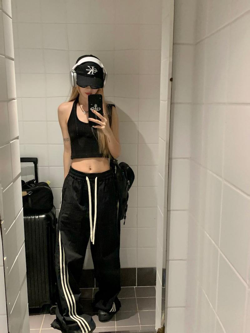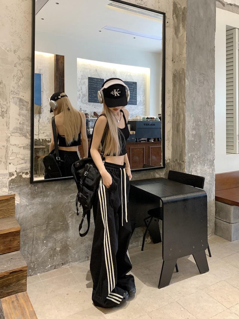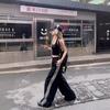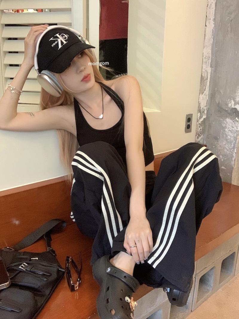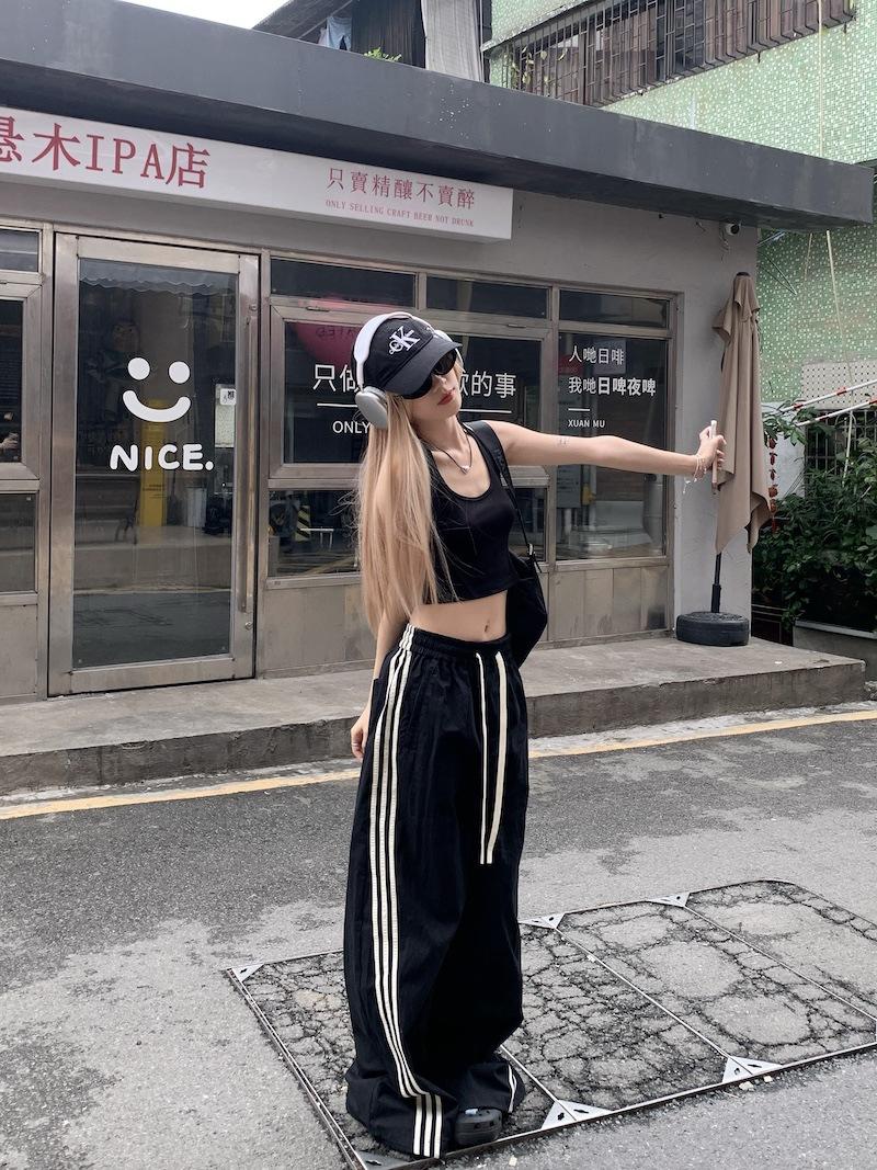 Pantalones Deportivos Retro Estilo Americano para Mujer Verano Delgados Secado Rápido Casuales Pantalones Sueltos de Pierna Ancha Pantalones Drapeados