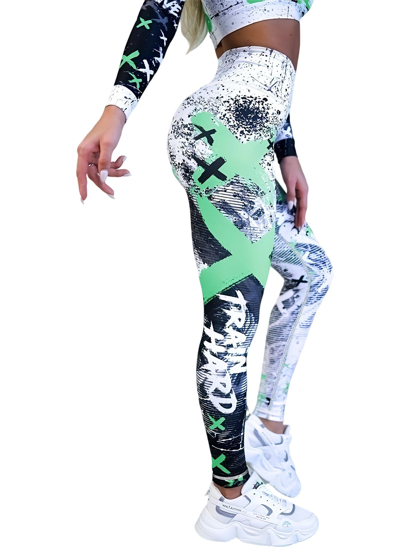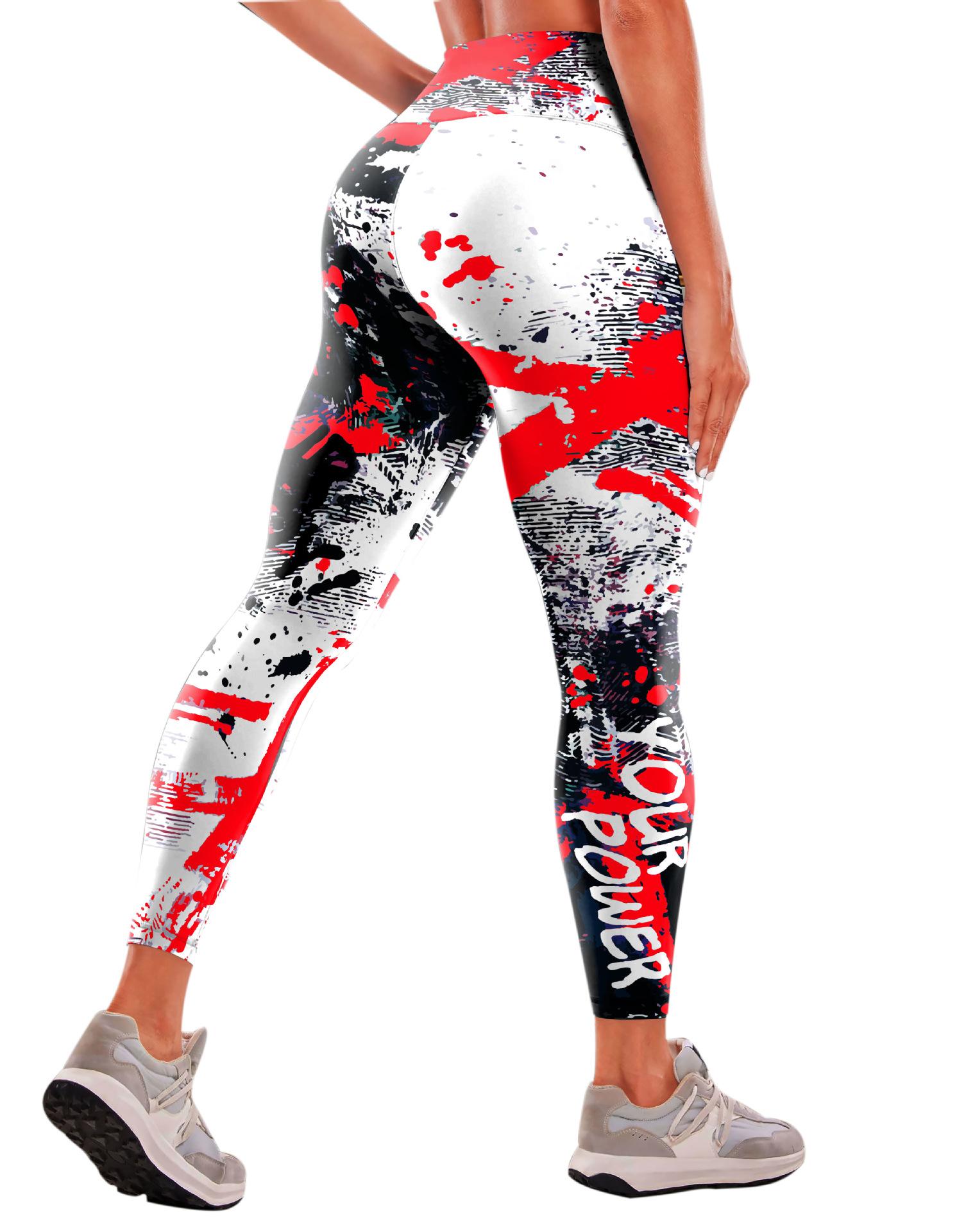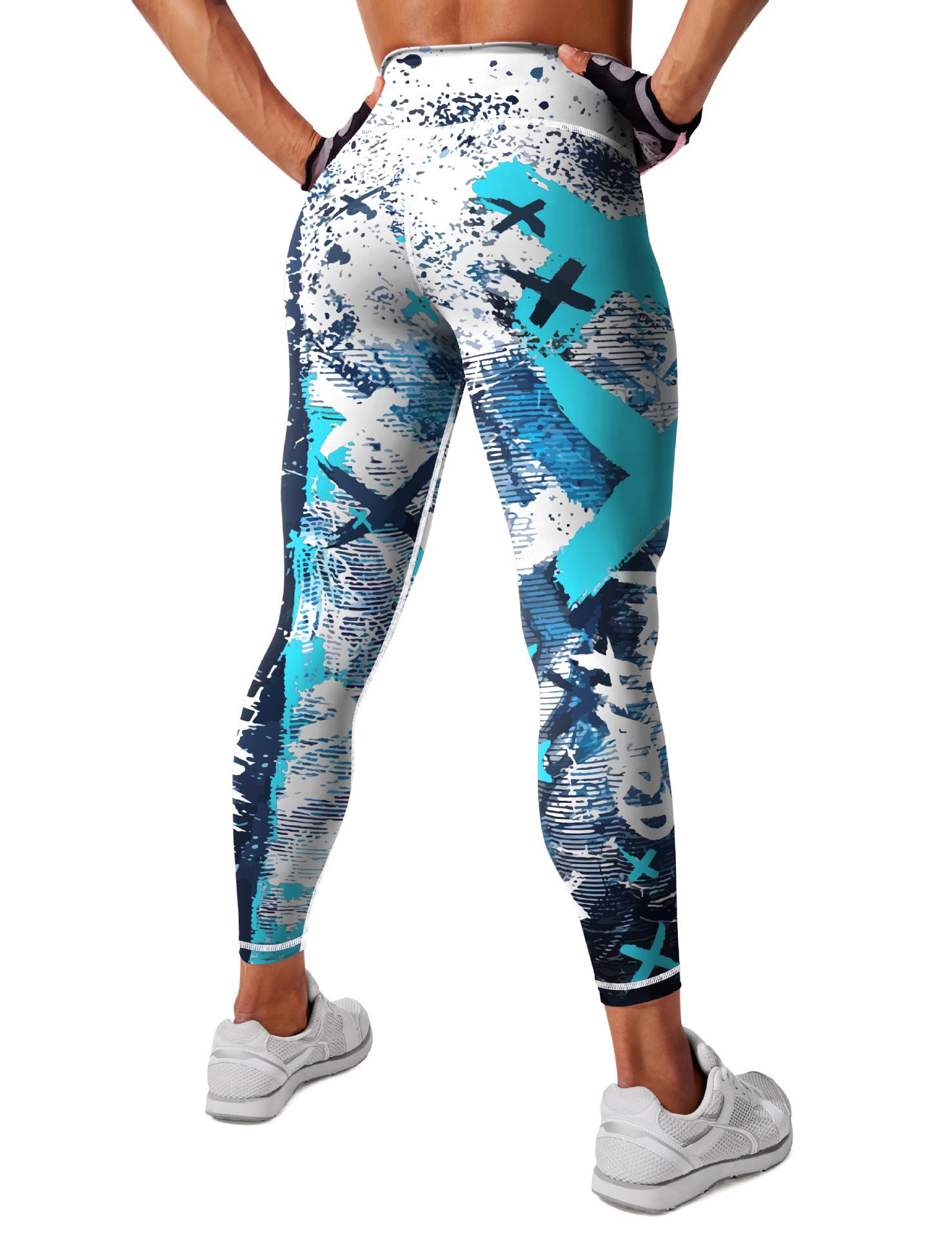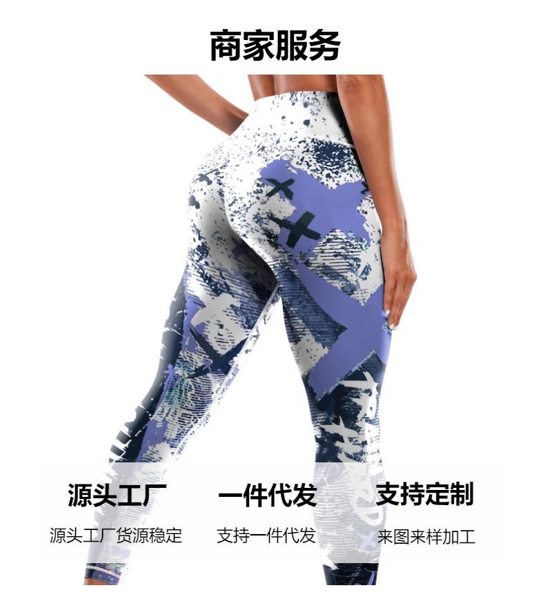 Pantalones de yoga estampados transfronterizos europeos y americanos, pantalones deportivos de fitness para mujer, pantalones ajustados de cintura alta, ropa de yoga europea y americana.
