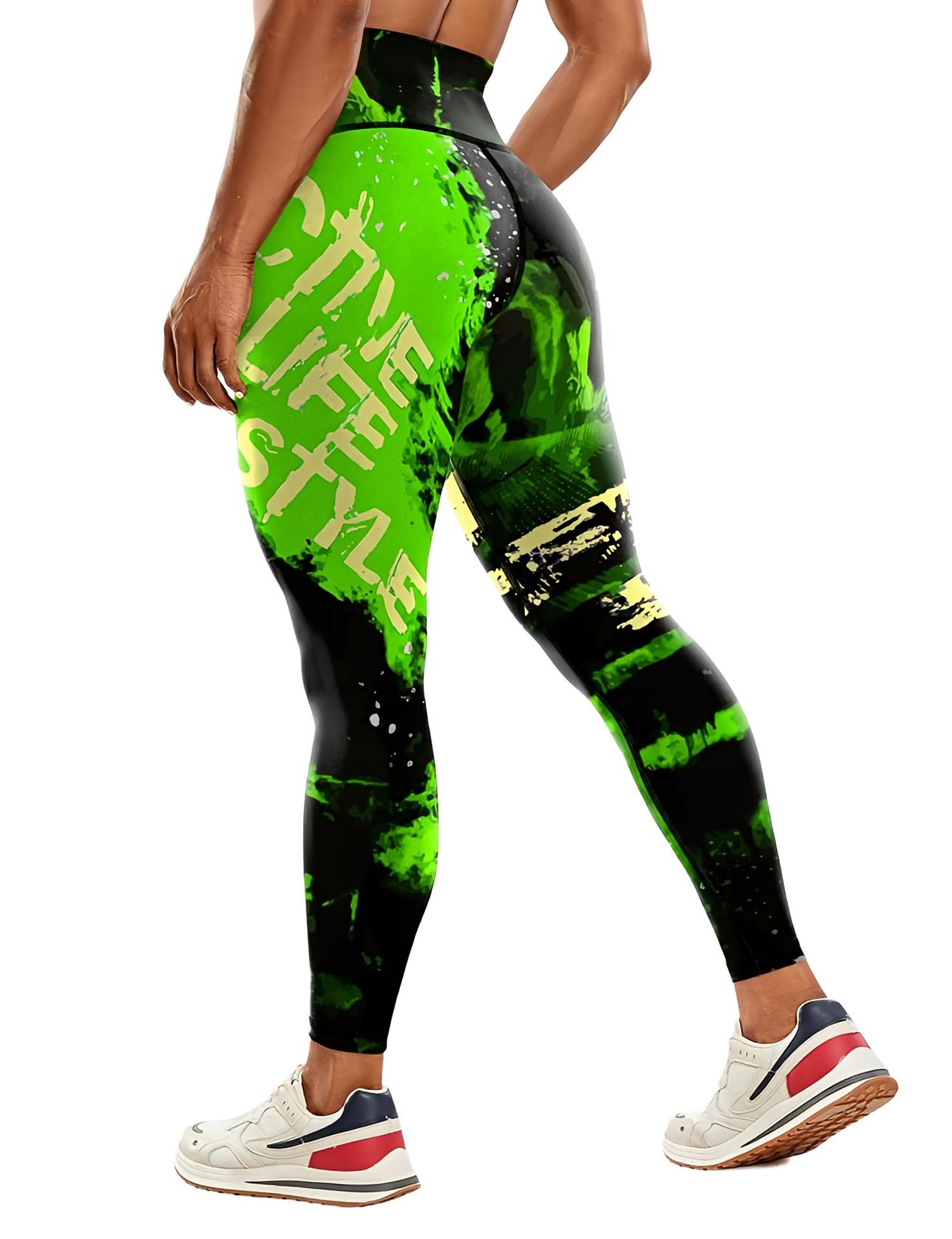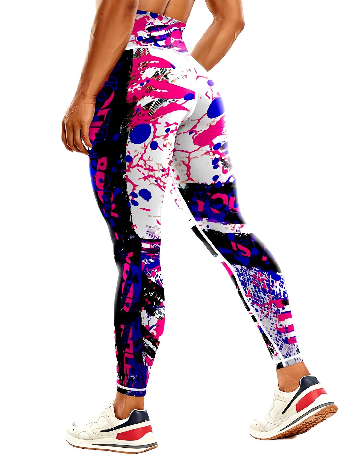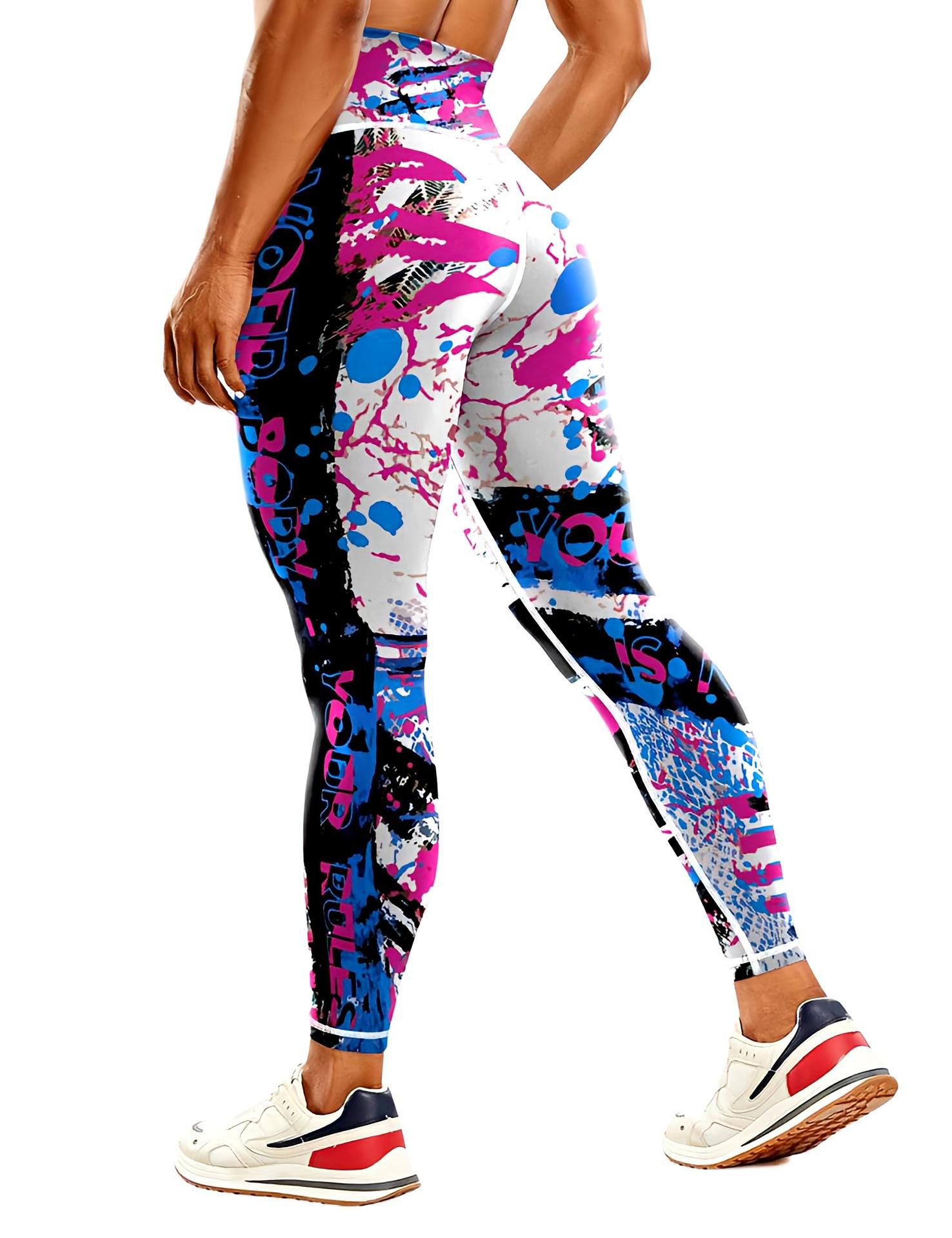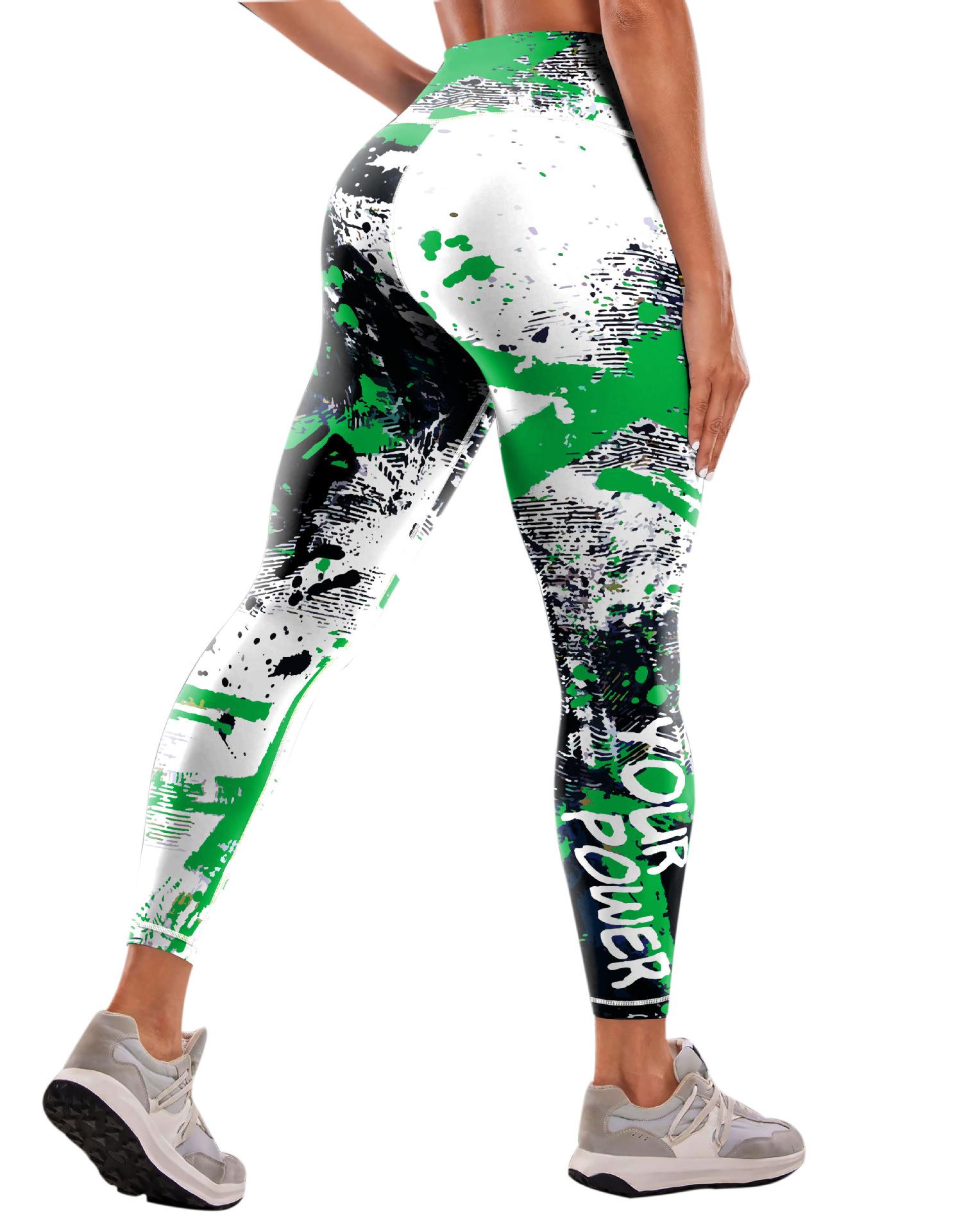 Pantalones de yoga estampados transfronterizos europeos y americanos, pantalones deportivos de fitness para mujer, pantalones ajustados de cintura alta, ropa de yoga europea y americana.