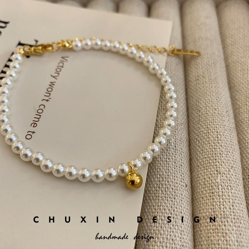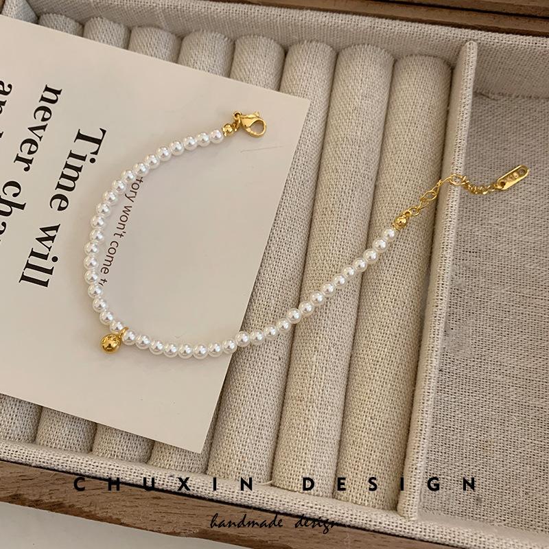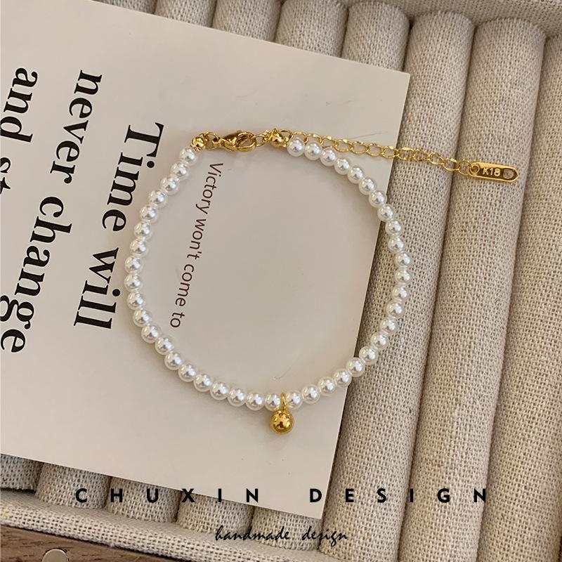 Pulsera Exquisita de Perlas Pequeñas de Frijol Dorado Estilo Francés para Mujer Diseño Nicho de Alta Gama Pulsera para Novia Popular en Internet Joyería de Moda ins