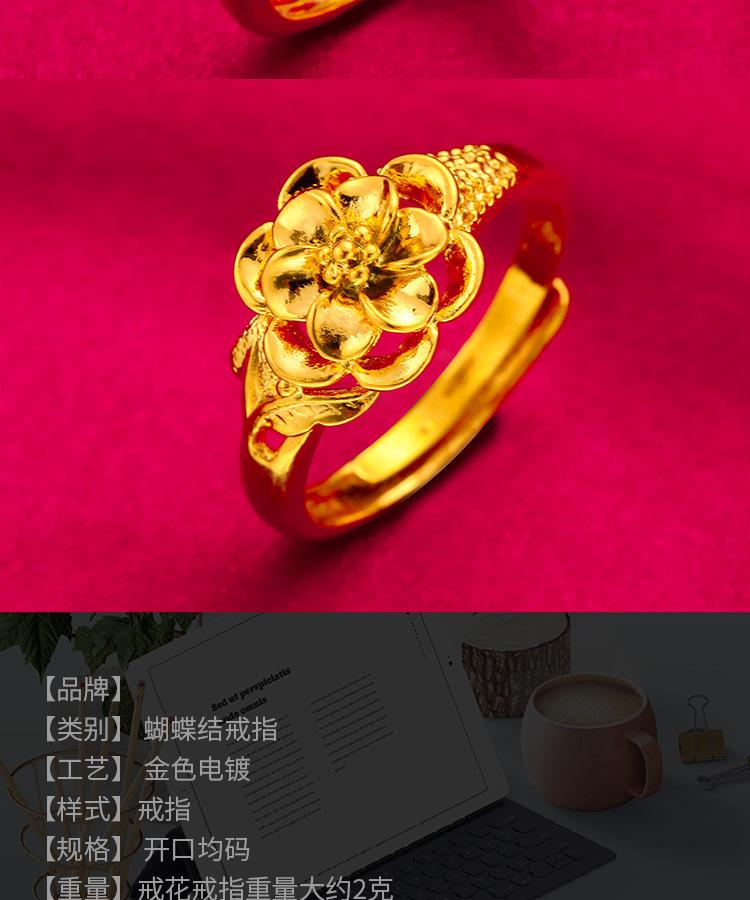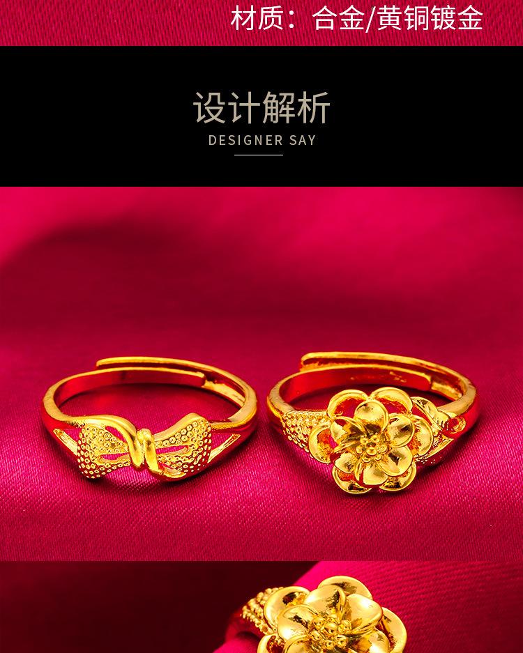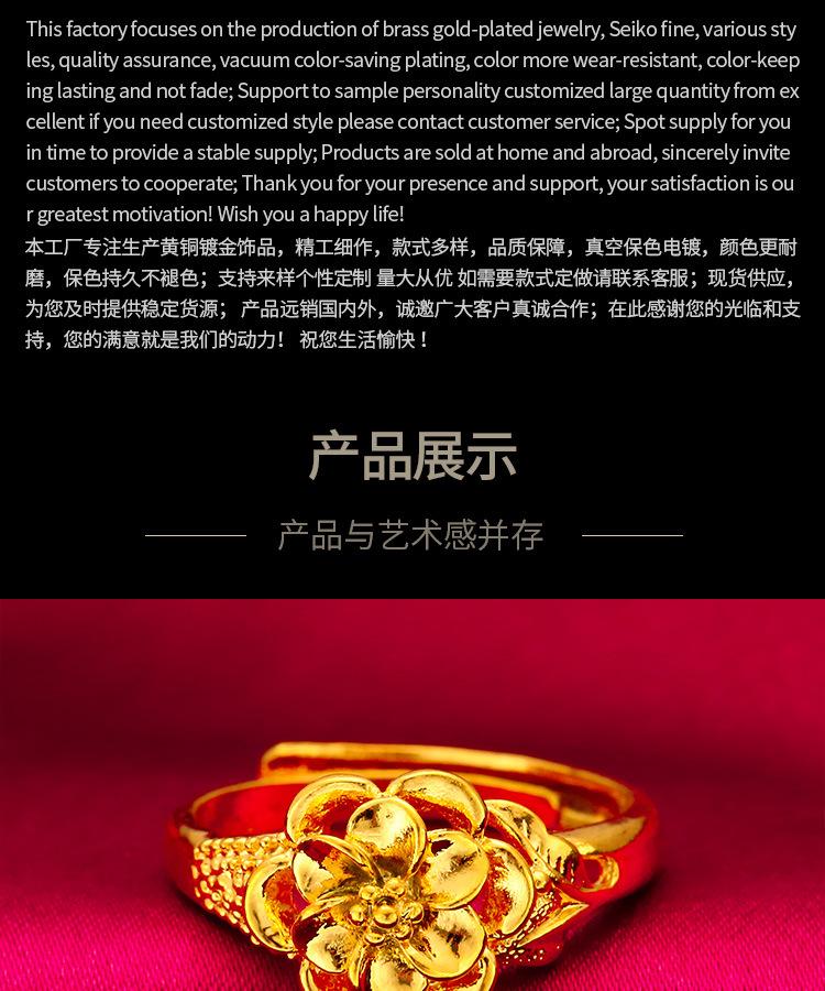 Anillo de oro arena de Vietnam para mujer, flor de oro de imitación, anillo de flor con abertura para dama, joyería, anillo al por mayor en vivo, abertura de anillo