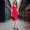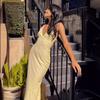 2024 Europeo y Americano AliExpress Vestido de noche plisado con cordón ajustable, sexy, de moda, ajustado, con cuello en V para mujer, comercio exterior para mujer