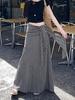 Falda Larga Coreana con Tirantes de Diseño Coreano a Cuadros Negros para Mujer Verano 2024 Cintura Alta Suelta Adelgazante Chic