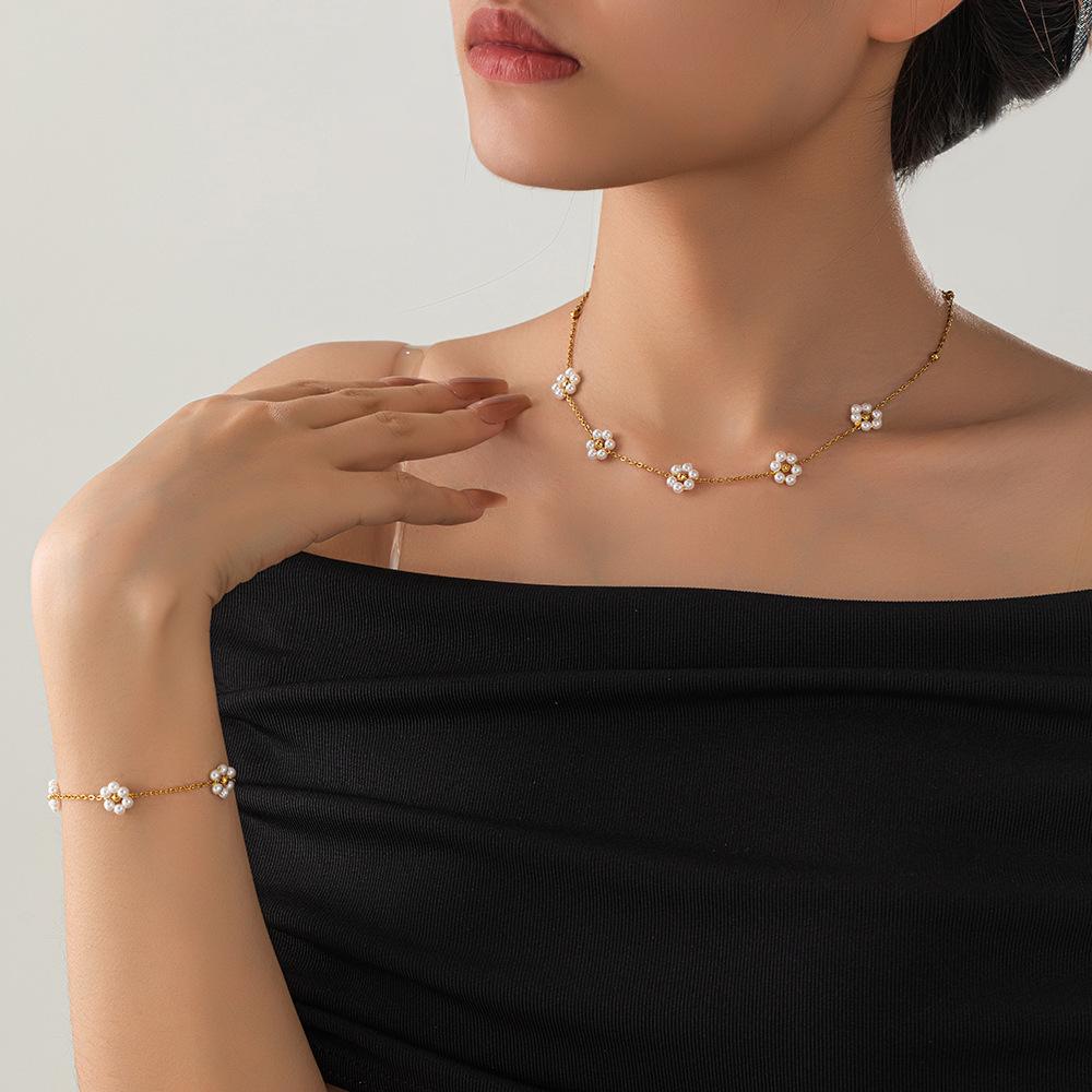 Collar de Cadena de Cuentas Hecho a Mano con Flores y Perlas de Primavera Transfronterizo Europeo y Americano, Collar de Cadena para Clavícula, Joyería al Por Mayor para Mujeres
