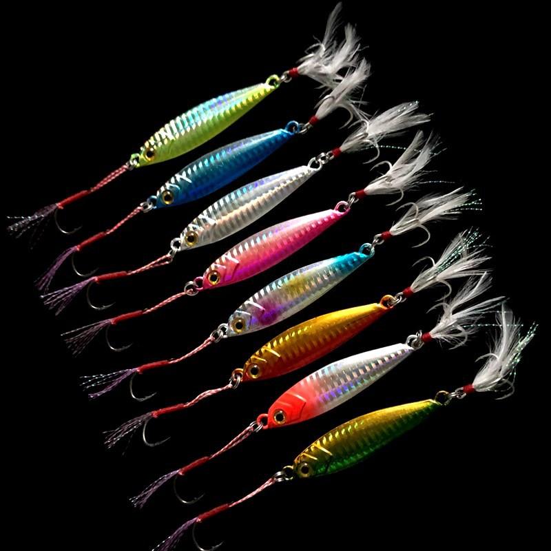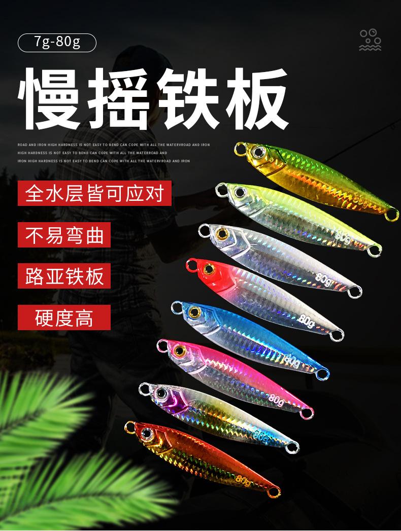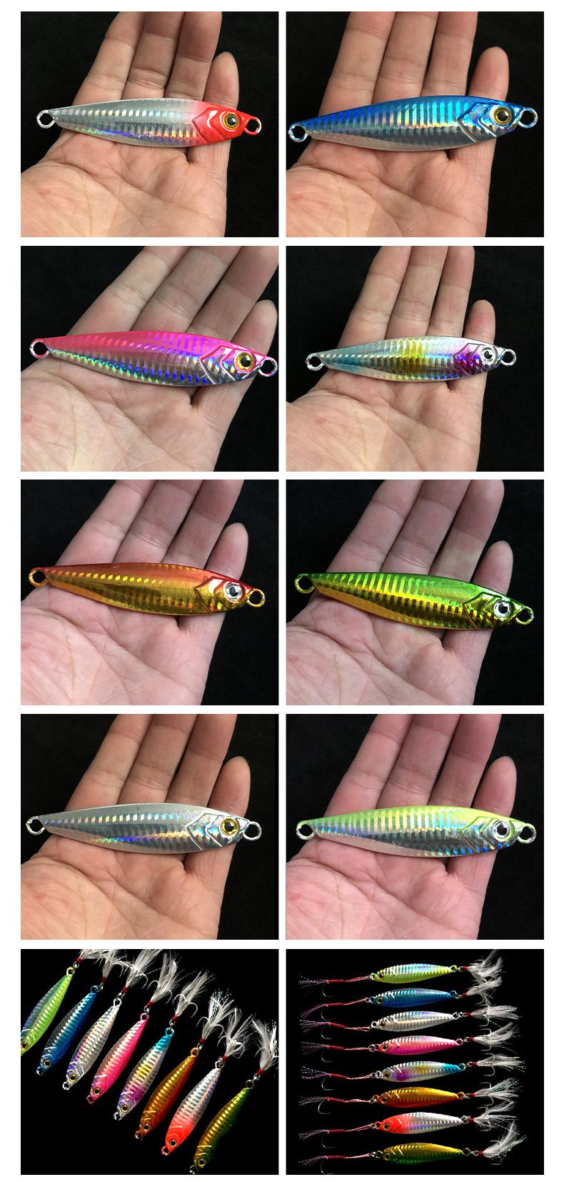 Pesca en el mar, placa de hierro fundido, cebo falso Luya, anzuelo de plumas de lentejuelas, cebo falso biónico de metal, anzuelo de tanque de sangre, cebo de plomo 7g10g