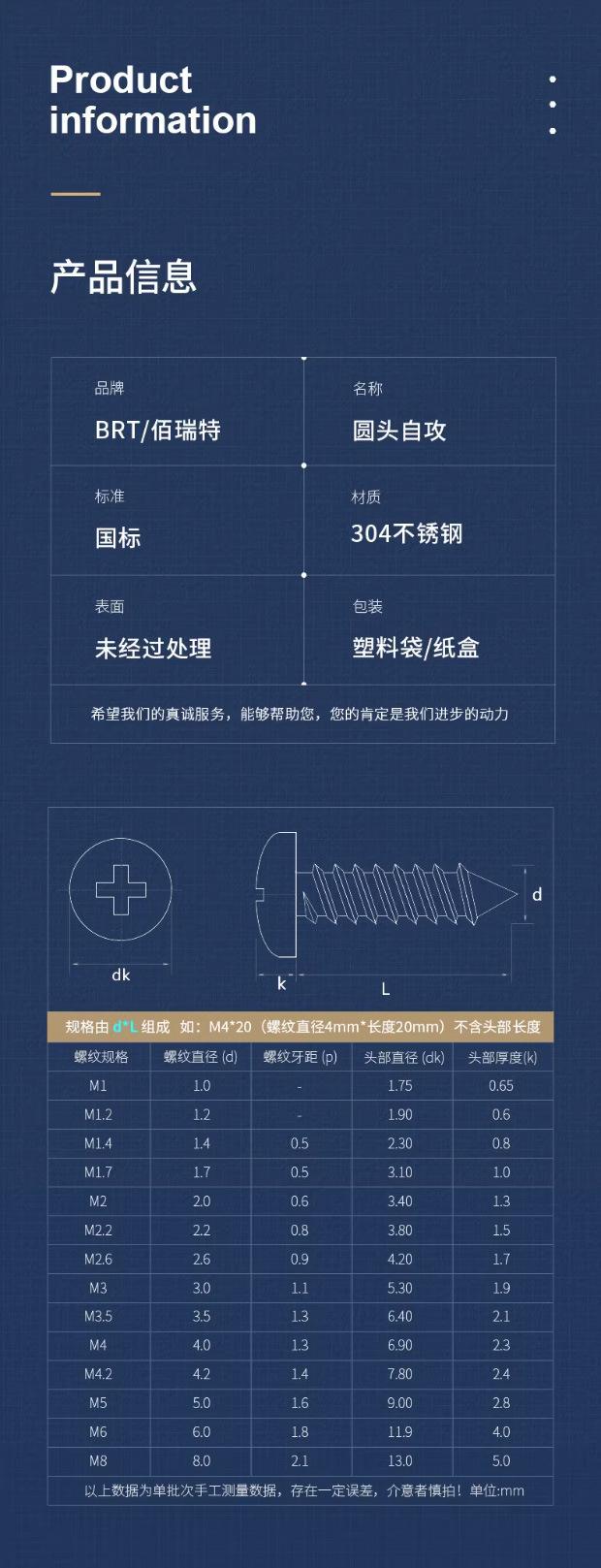 Tornillo autorroscante de acero inoxidable 304PA cabeza redonda cruz autorroscante tornillo electrónico tornillo pequeño M1M3M4M5M6