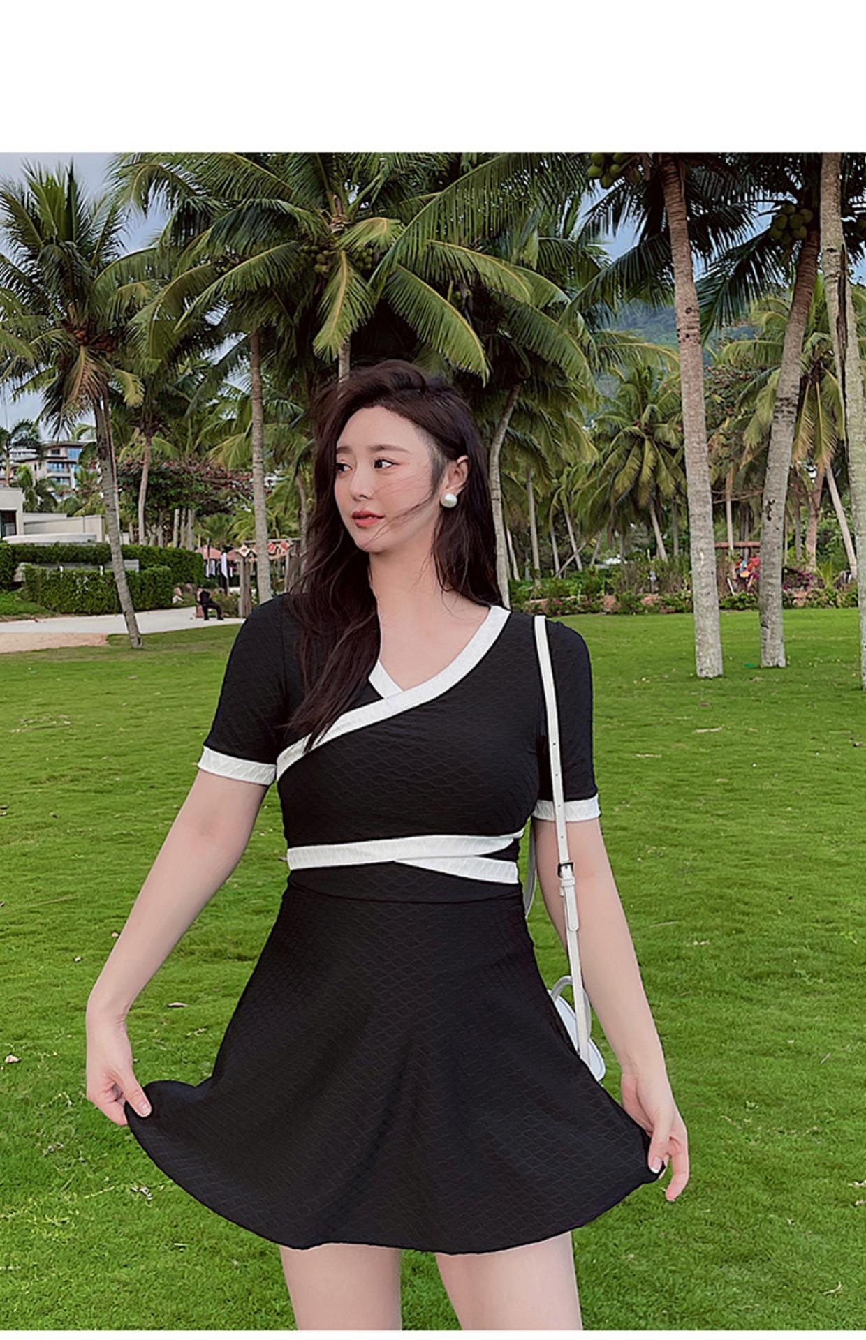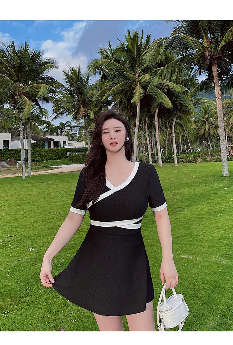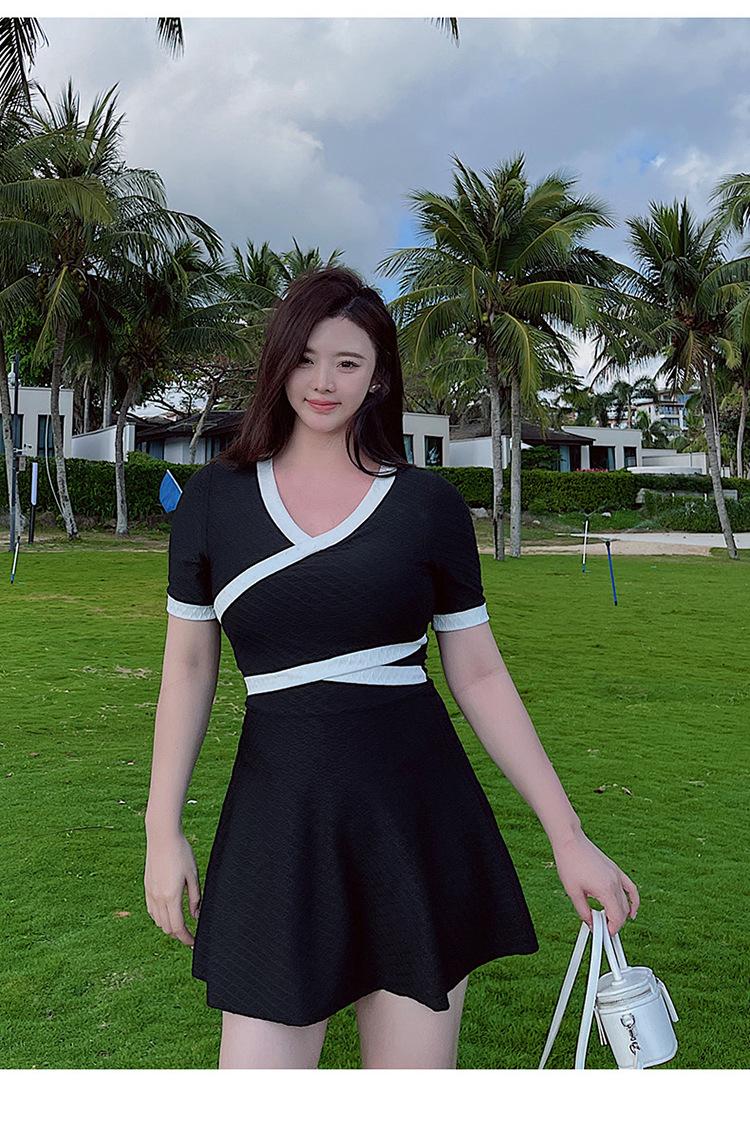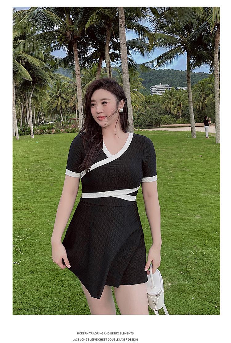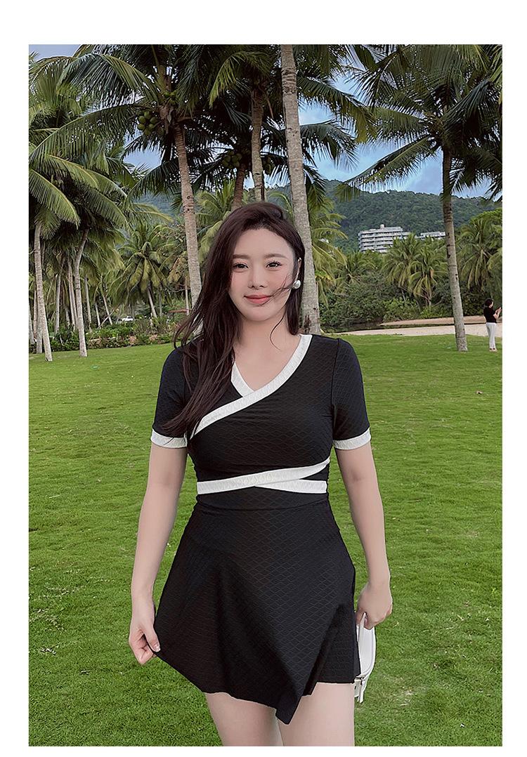 Traje de baño de talla grande para mujer, venta al por mayor, conservador, para chica gordita, adelgazante, viento de deseo puro, bóxer con abertura lateral, traje de baño, aguas termales