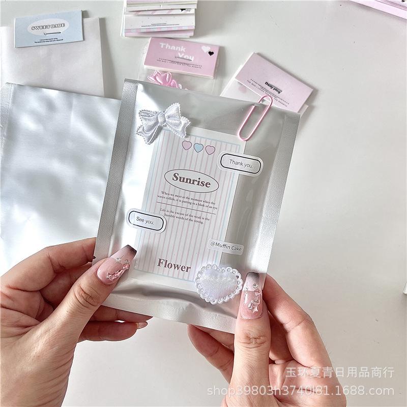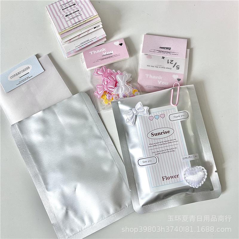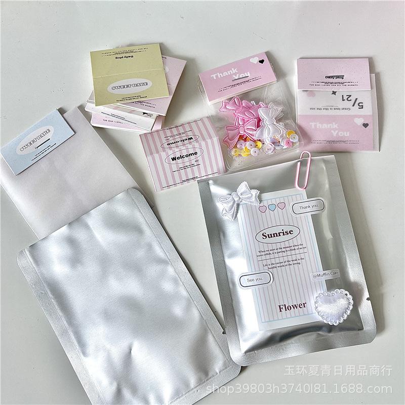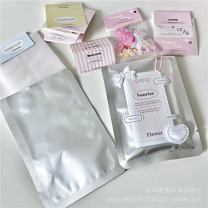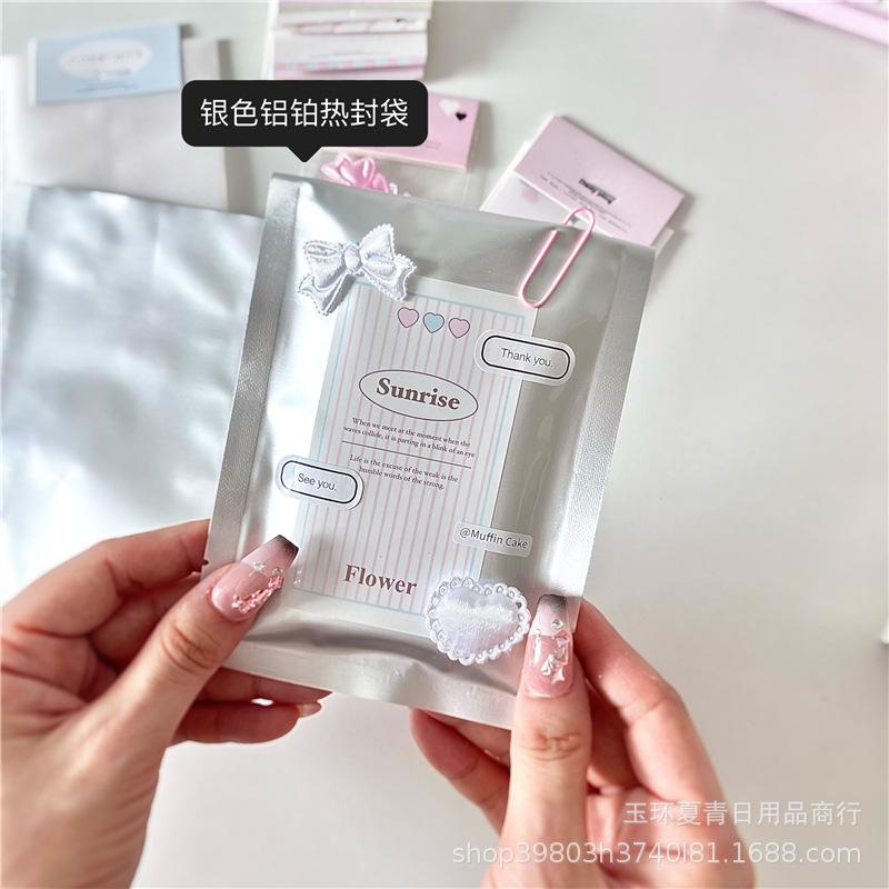 Bolsa de embalaje termosellable de papel de aluminio simple, embalaje de tarjeta, plata, pequeña, pegatina para tarjeta, nota, bolsa de regalo, bolsa sellable para cajón