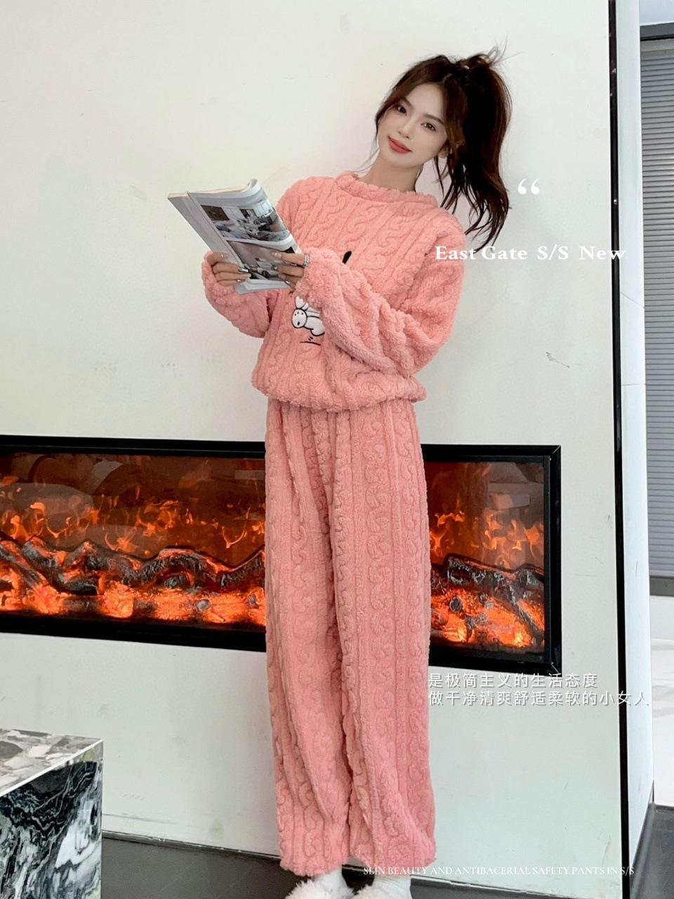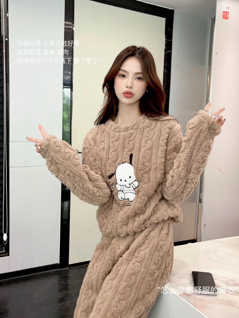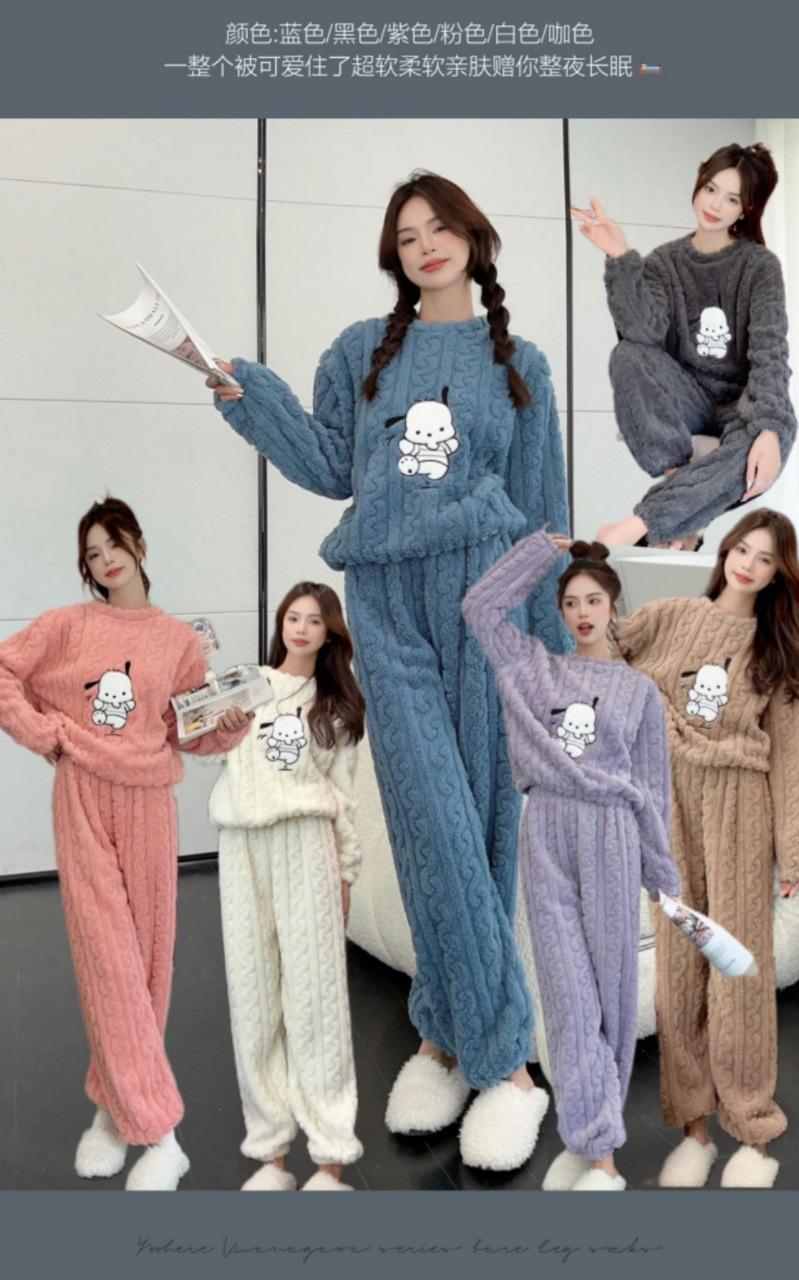 Selección estricta de traje de terciopelo de algodón jacquard Hapa Dog para mujer, otoño e invierno, nuevo, forrado de vellón, grueso, cálido, con dibujos animados, ropa de hogar para mujer.
