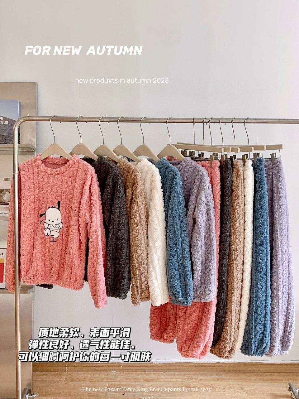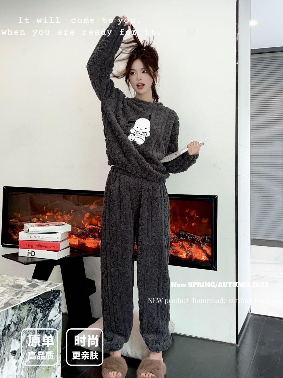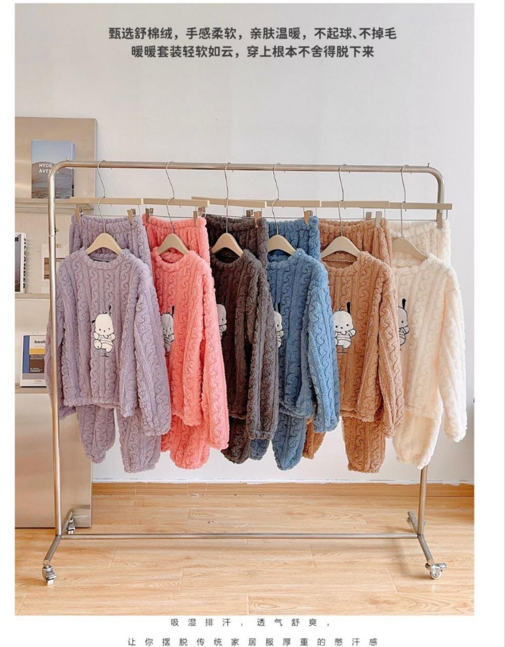 Selección estricta de traje de terciopelo de algodón jacquard Hapa Dog para mujer, otoño e invierno, nuevo, forrado de vellón, grueso, cálido, con dibujos animados, ropa de hogar para mujer.