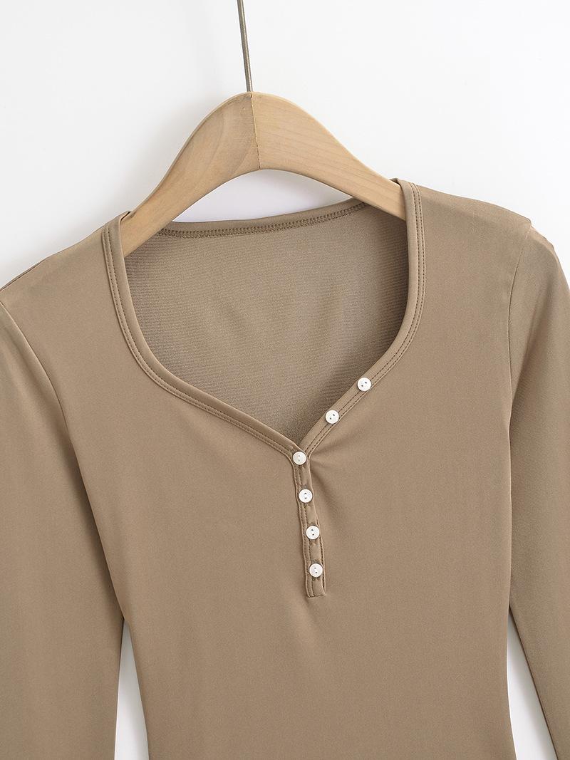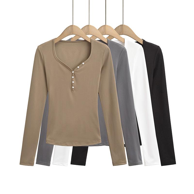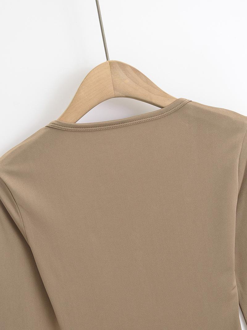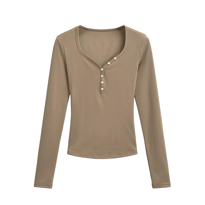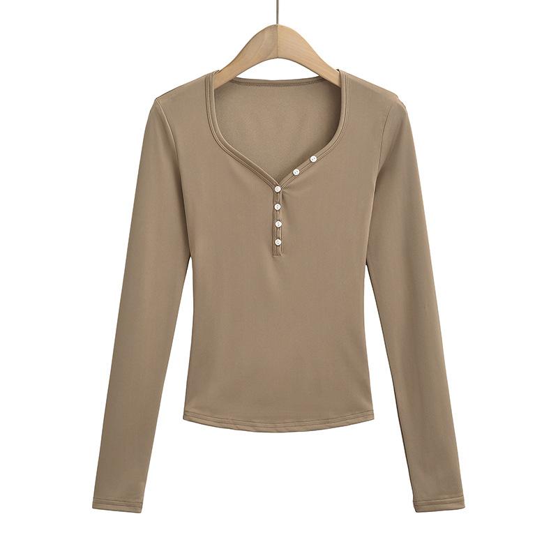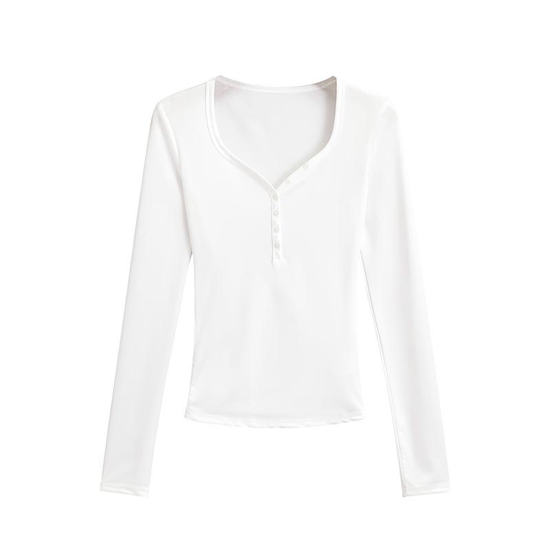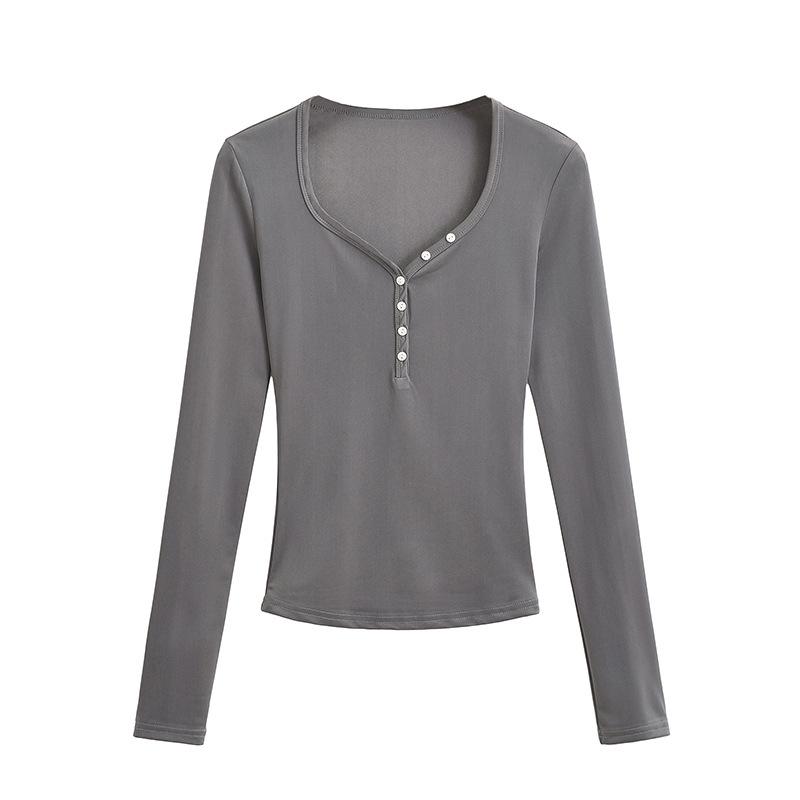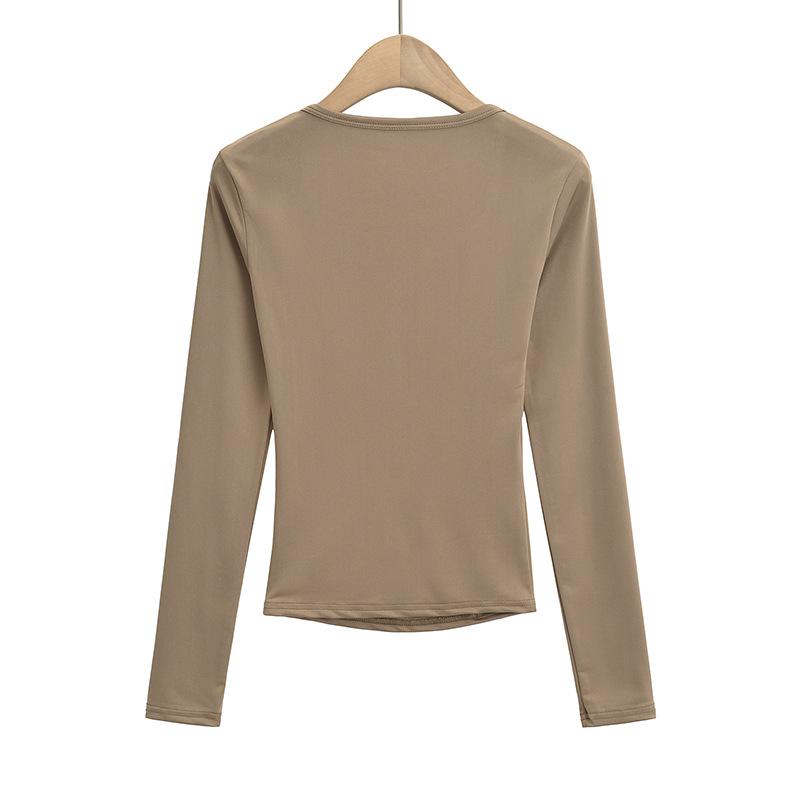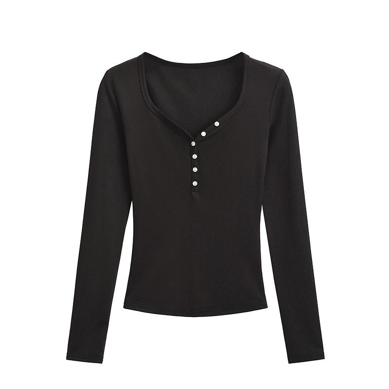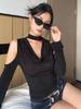 Camiseta sexy con cuello en U y hombros descubiertos estilo Spice Girl para mujer, nueva camiseta de otoño de manga larga con cintura interior ajustada.