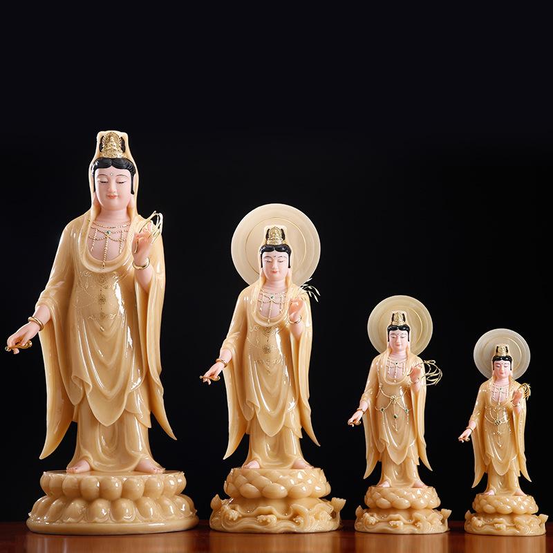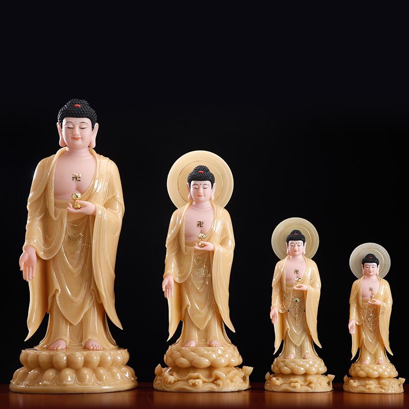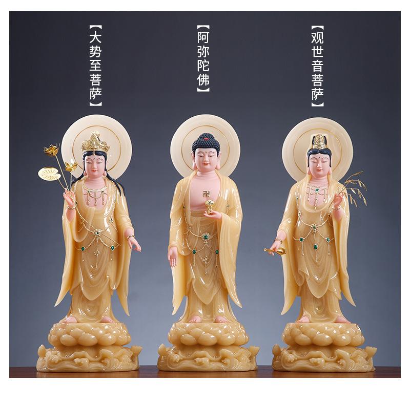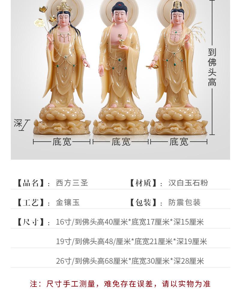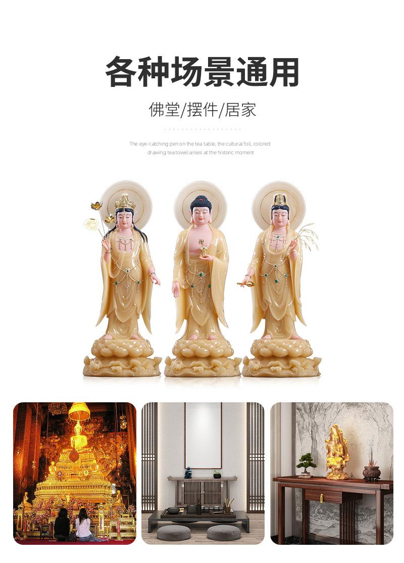 Suministro directo de fábrica mármol blanco topacio occidental tres santos bodhisattvas venta al por mayor hogar Guanyin Buda Amitabha Buda tendencia