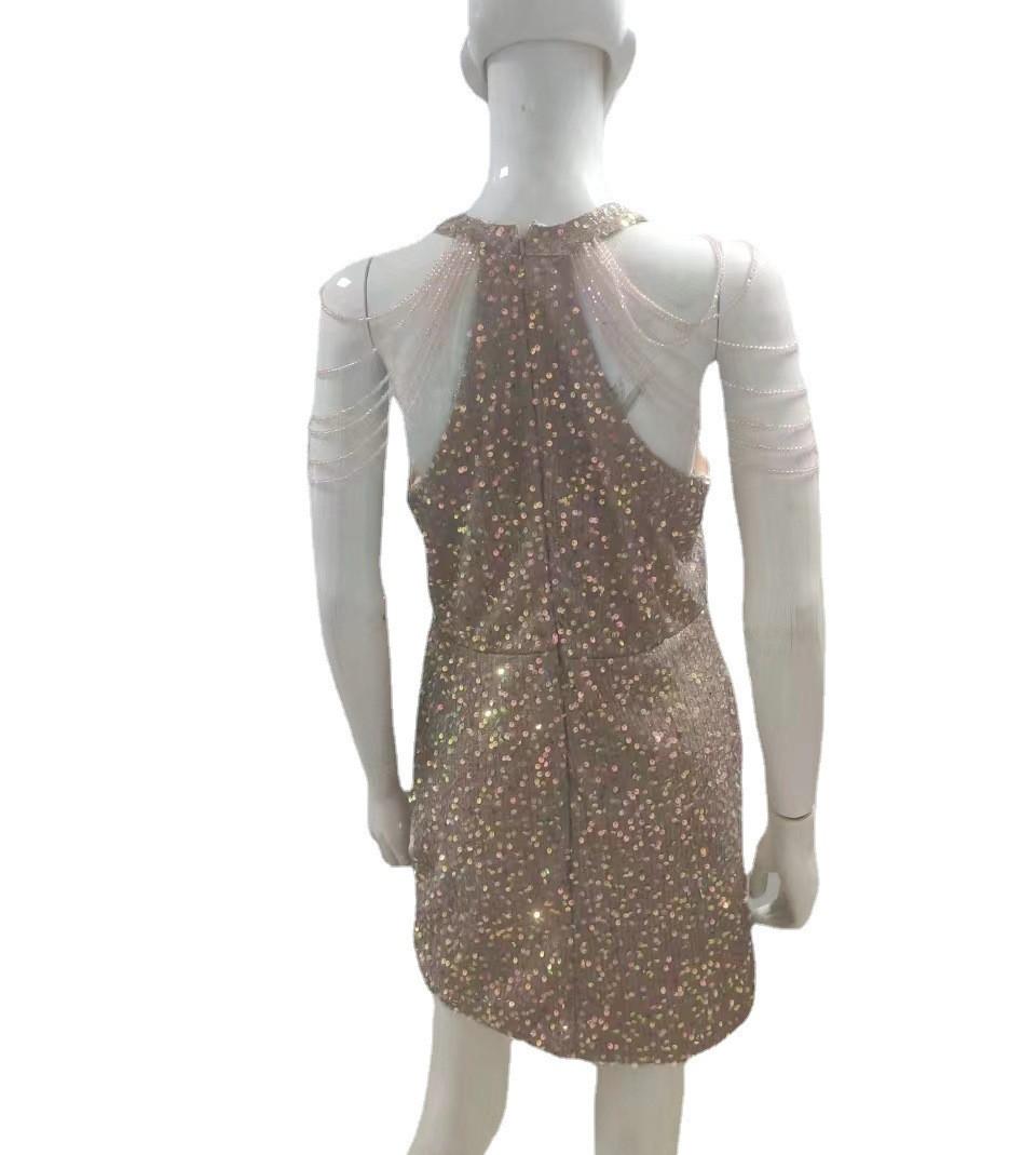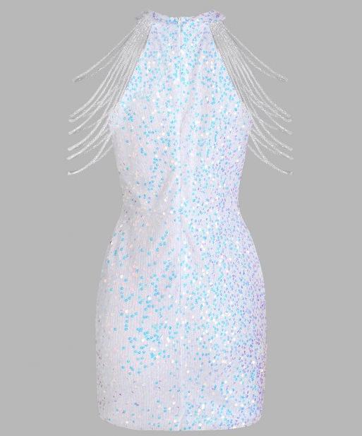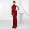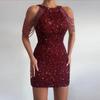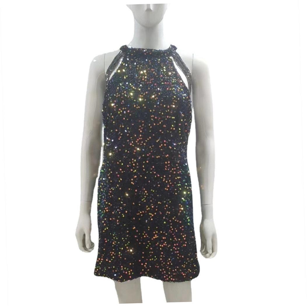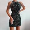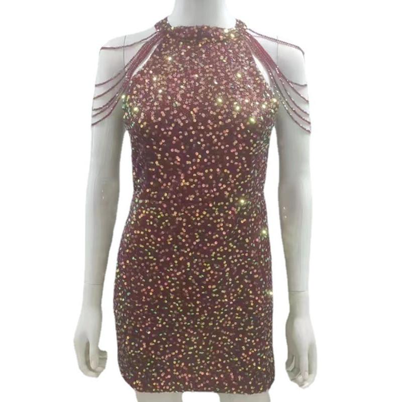2023 Primavera/Verano Nueva Moda Halterneck Sexy Borla de Cristal Bodycon Lentejuela Vestido Europeo y Americano Cintura Media Vestido de Noche