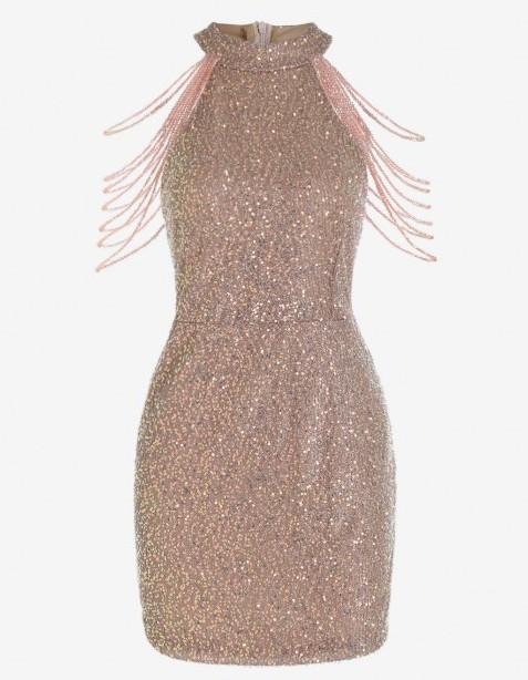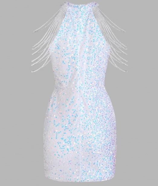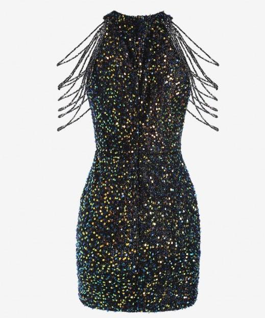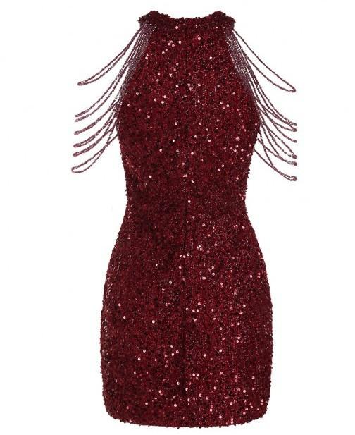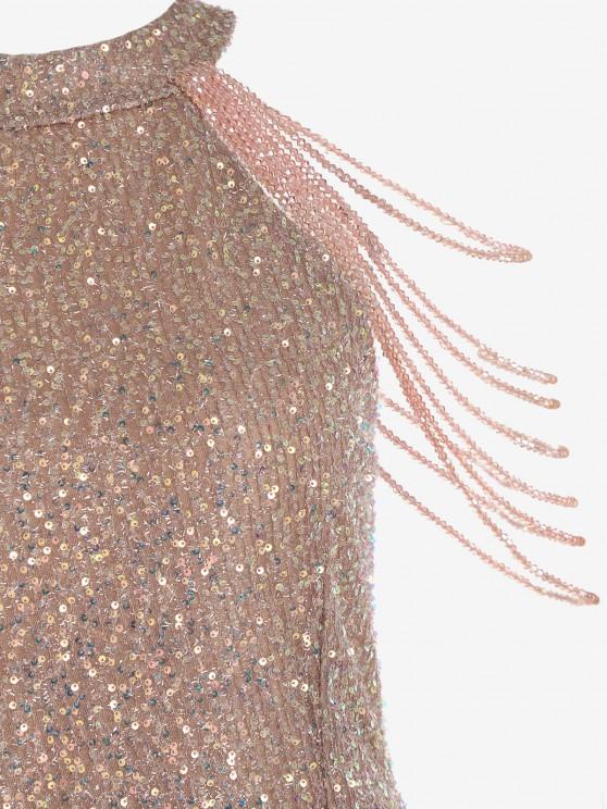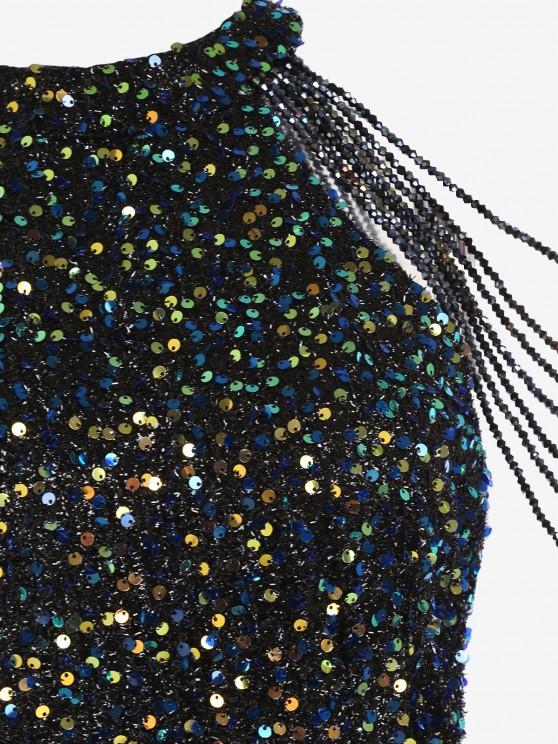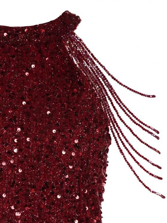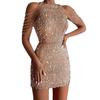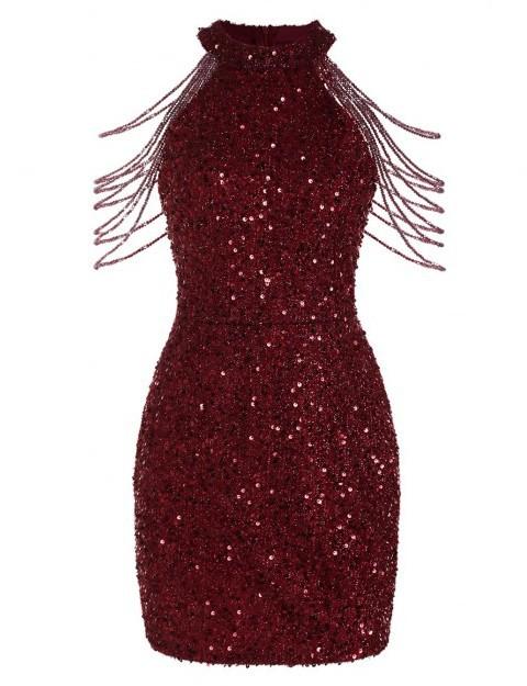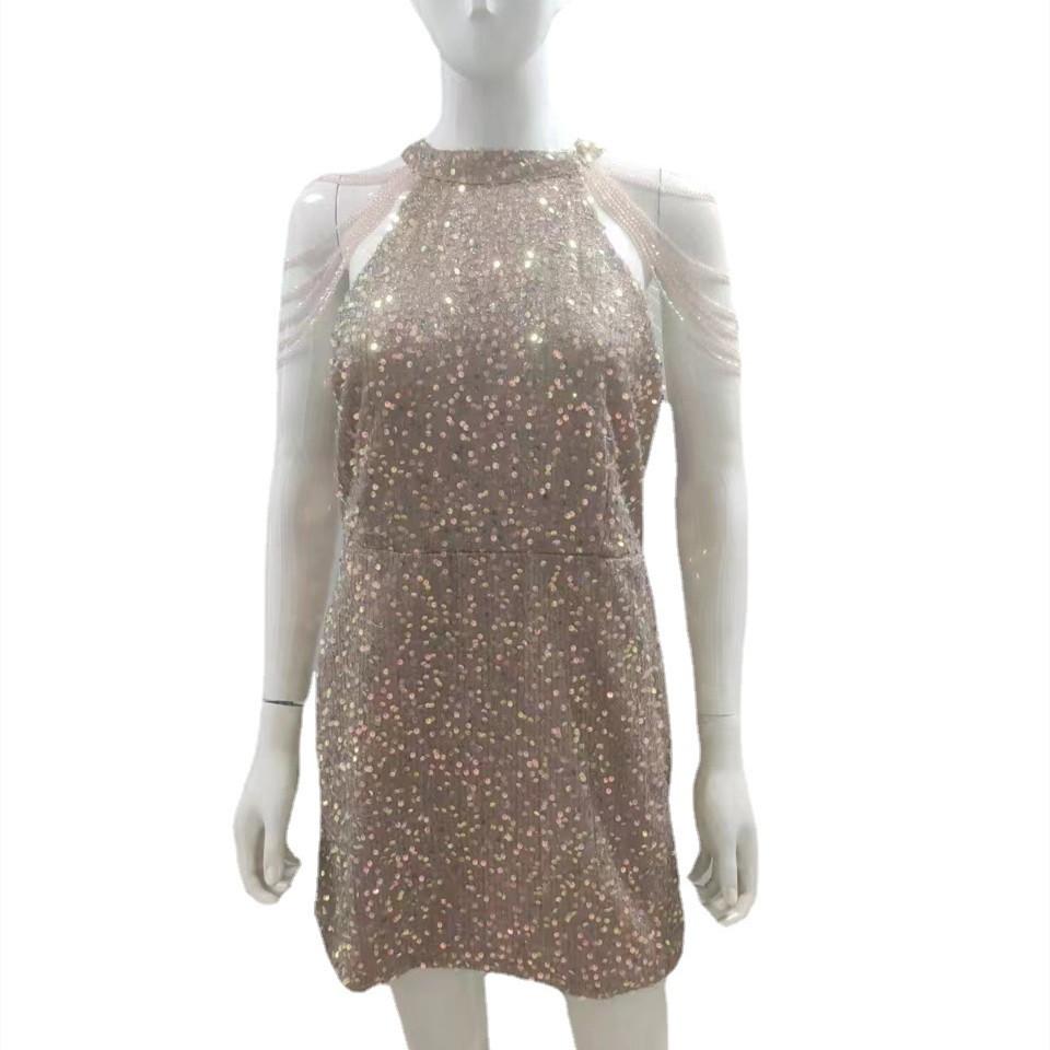 2023 Primavera/Verano Nueva Moda Halterneck Sexy Borla de Cristal Bodycon Lentejuela Vestido Europeo y Americano Cintura Media Vestido de Noche