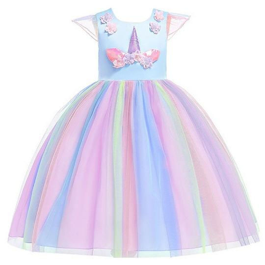 Nuevo vestido de princesa para niña de Halloween y Navidad, vestido de unicornio de malla arcoíris, vestido de niña de las flores