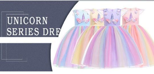 Ropa nueva de Halloween europea y americana para niños, vestido de princesa de Navidad para niñas, vestido de unicornio de malla arcoíris, vestido de niña de las flores, una pieza dropshipping