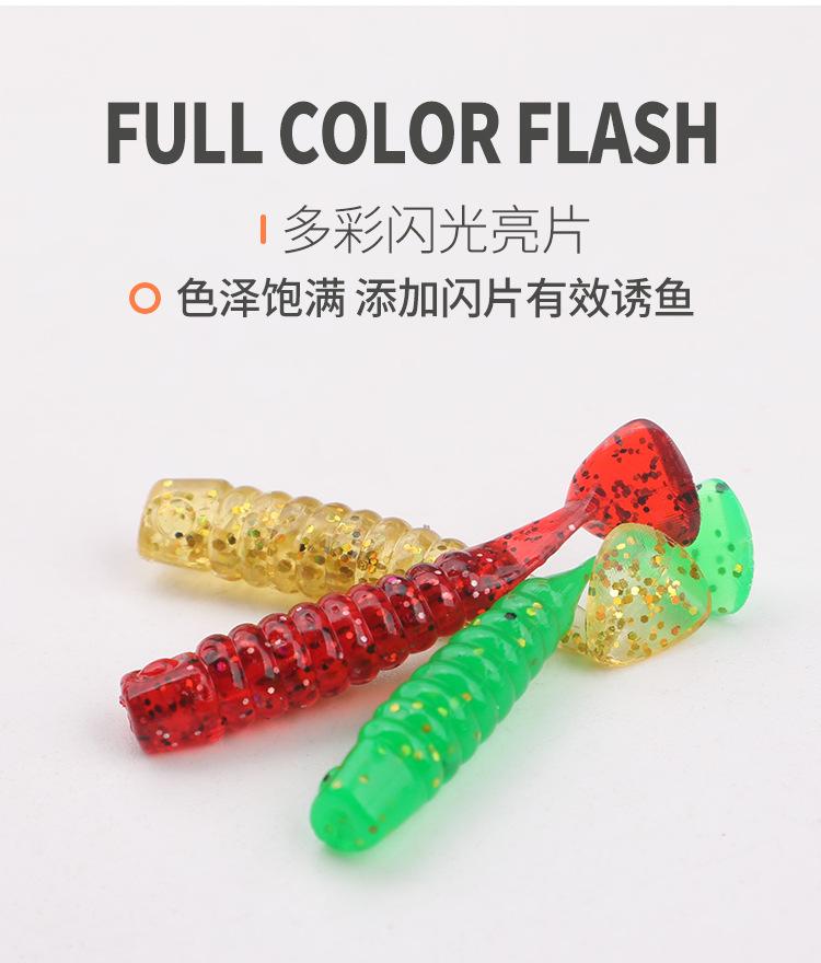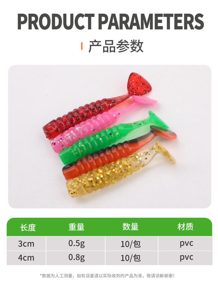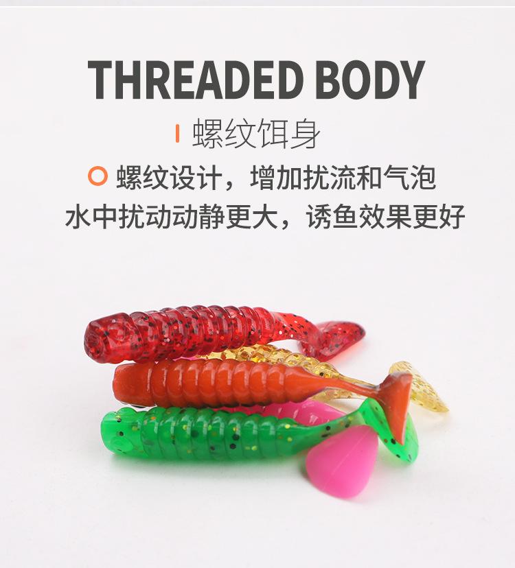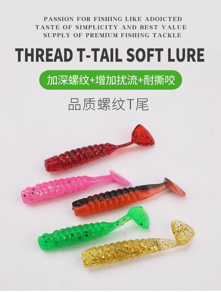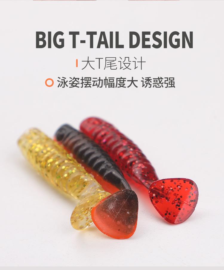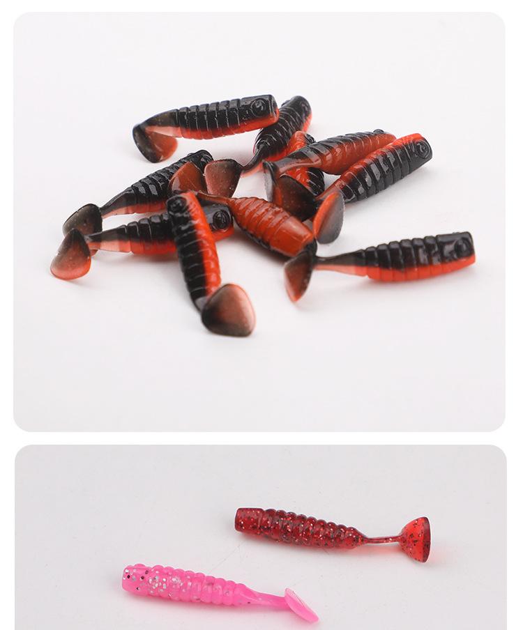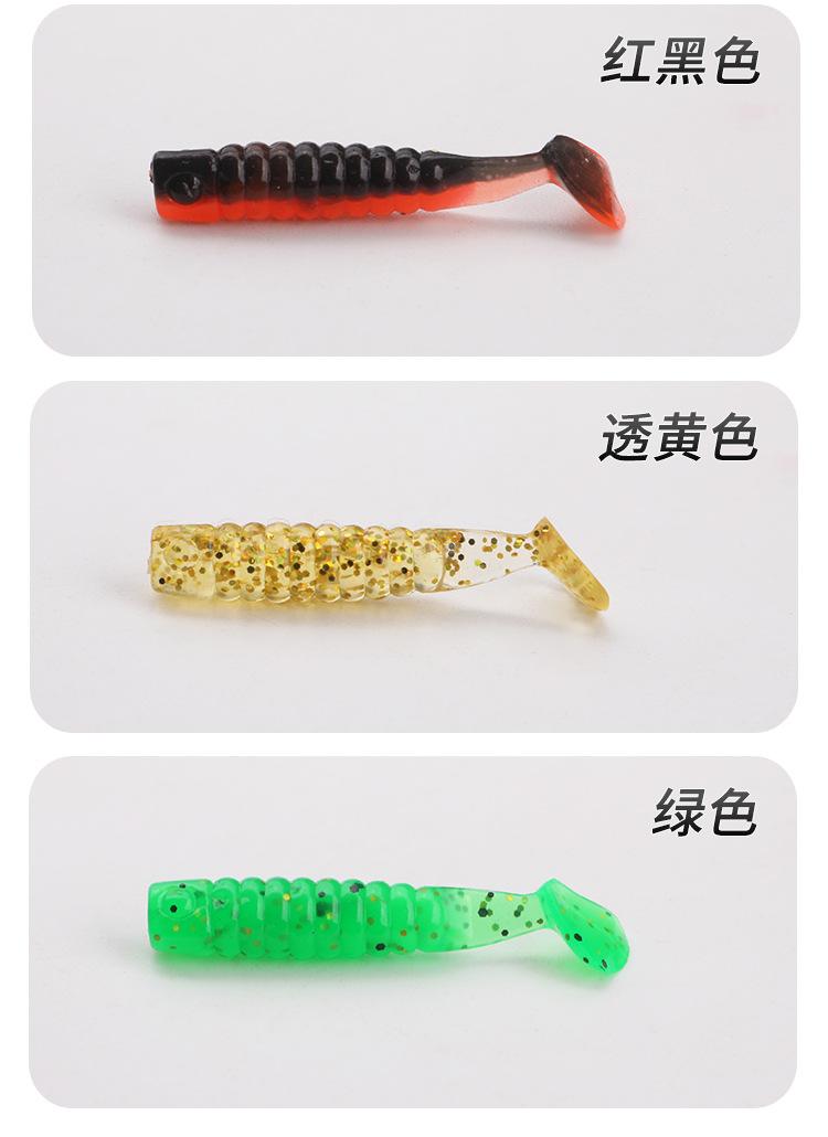 Equipo de pesca, mini cebo de pesca de raíz, cebo Luya, micro hilo, gusano blando biónico, cola en T, fluctuación de pez, lubina, cruceta, pez mandarín