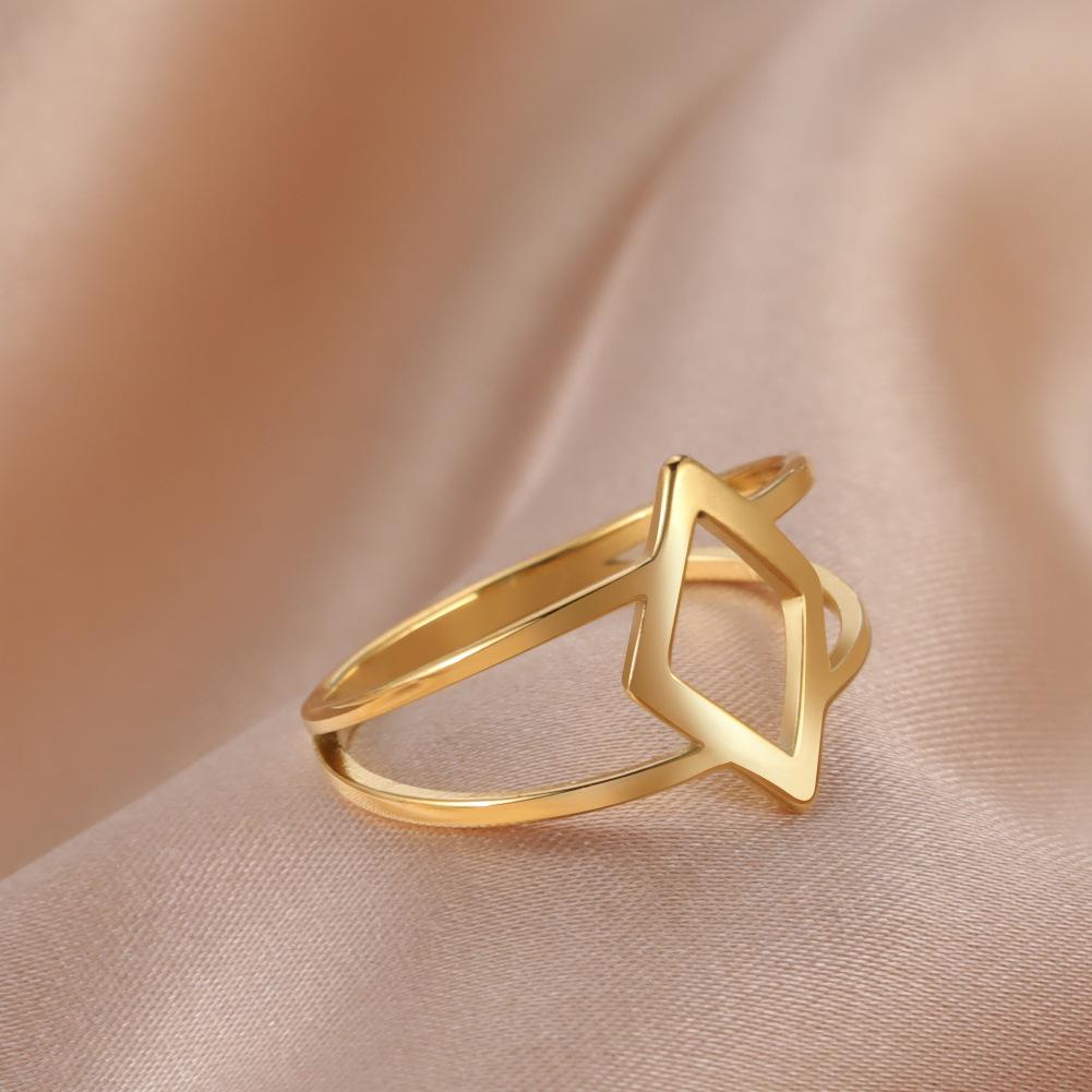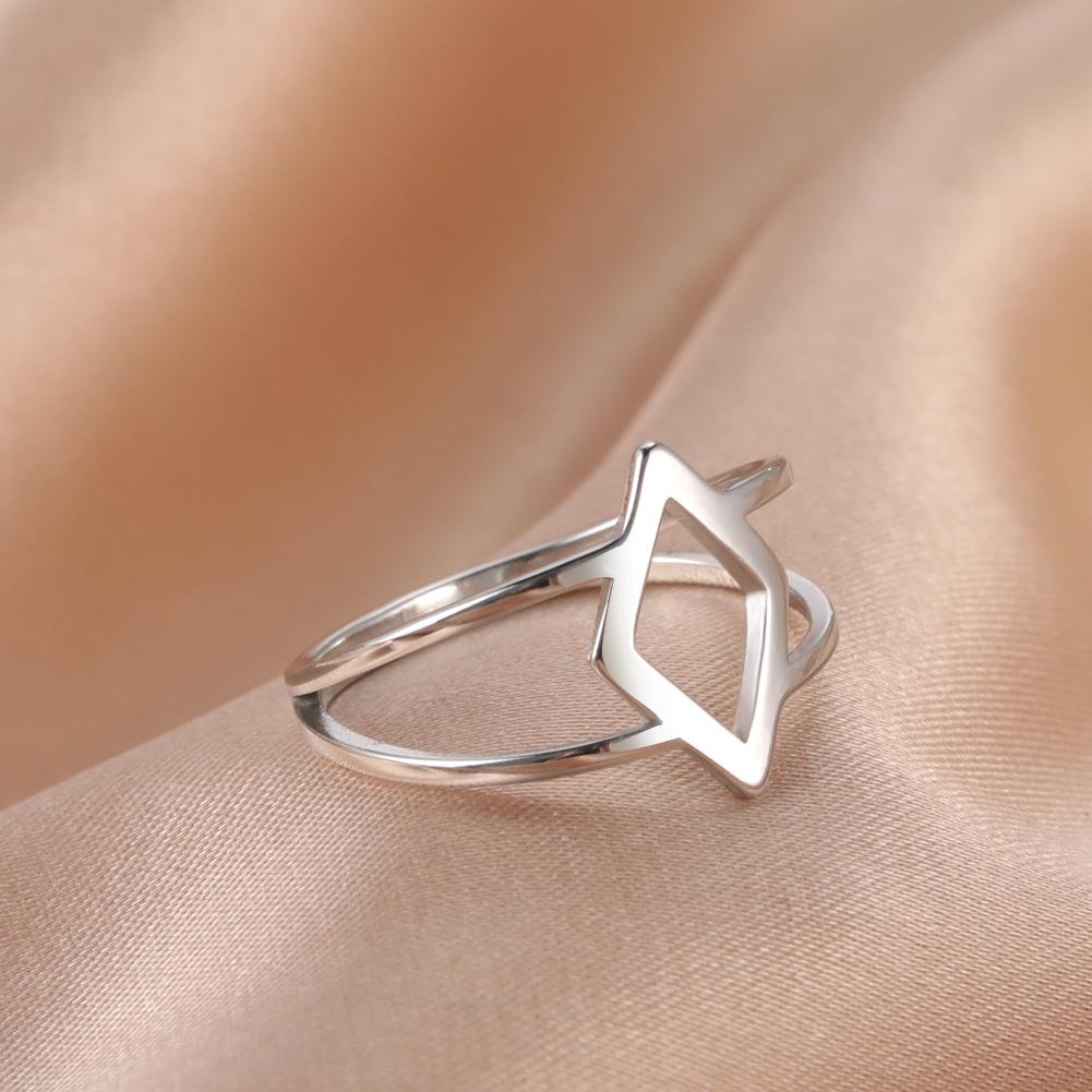 Simple geometric stainless steel hollow diamond stainless steel ring titanium steel small jewelry wholesale, Simple