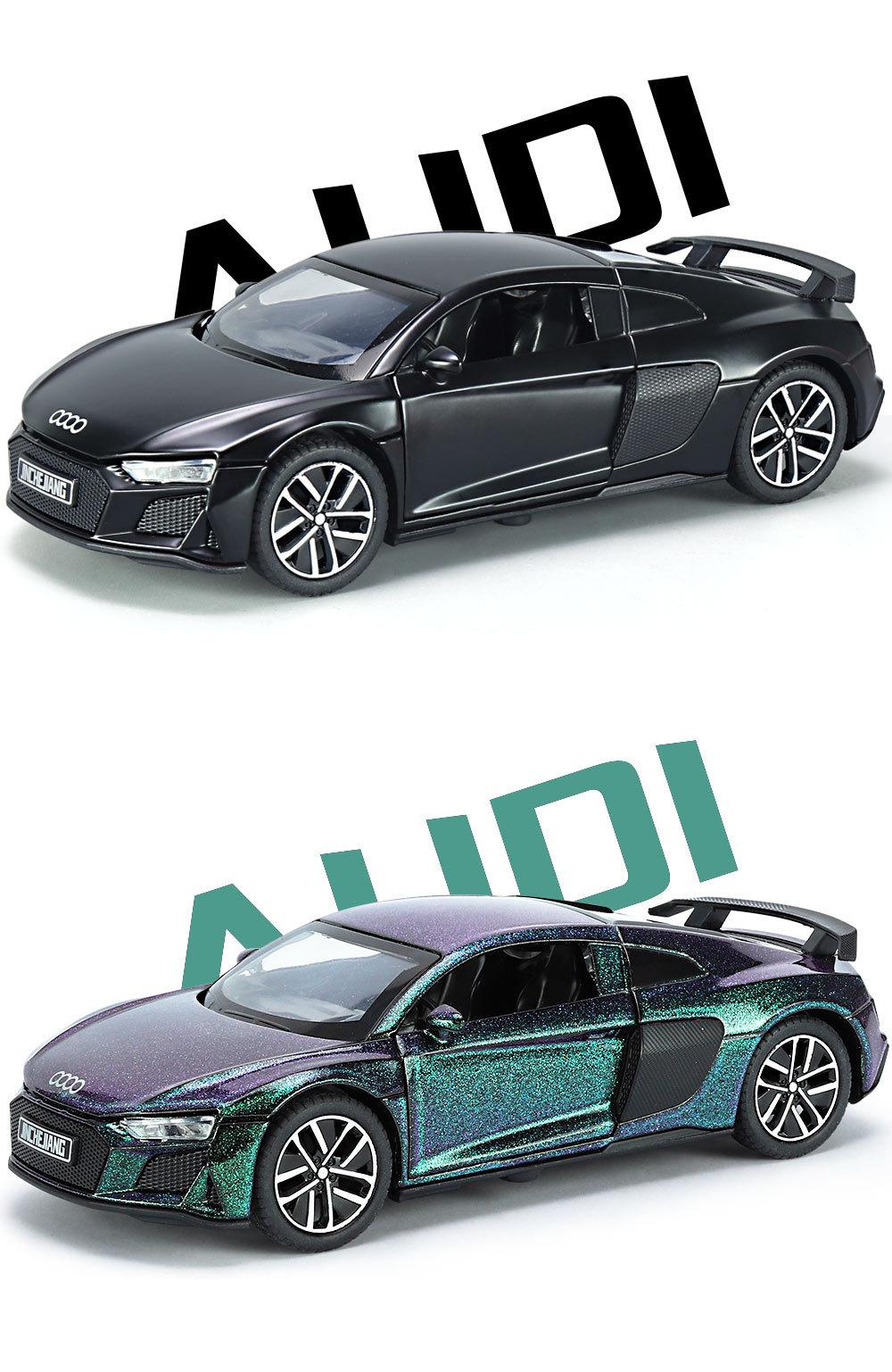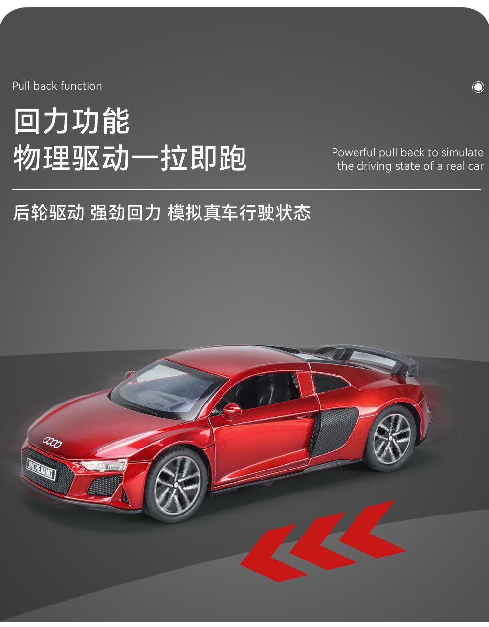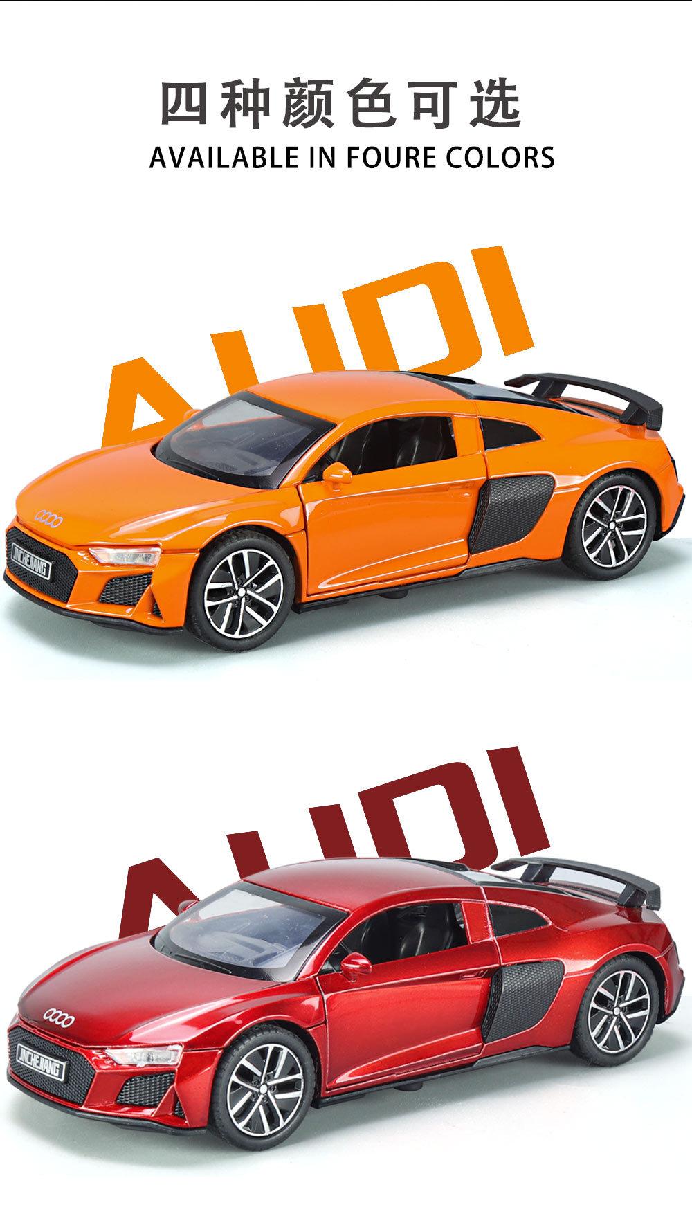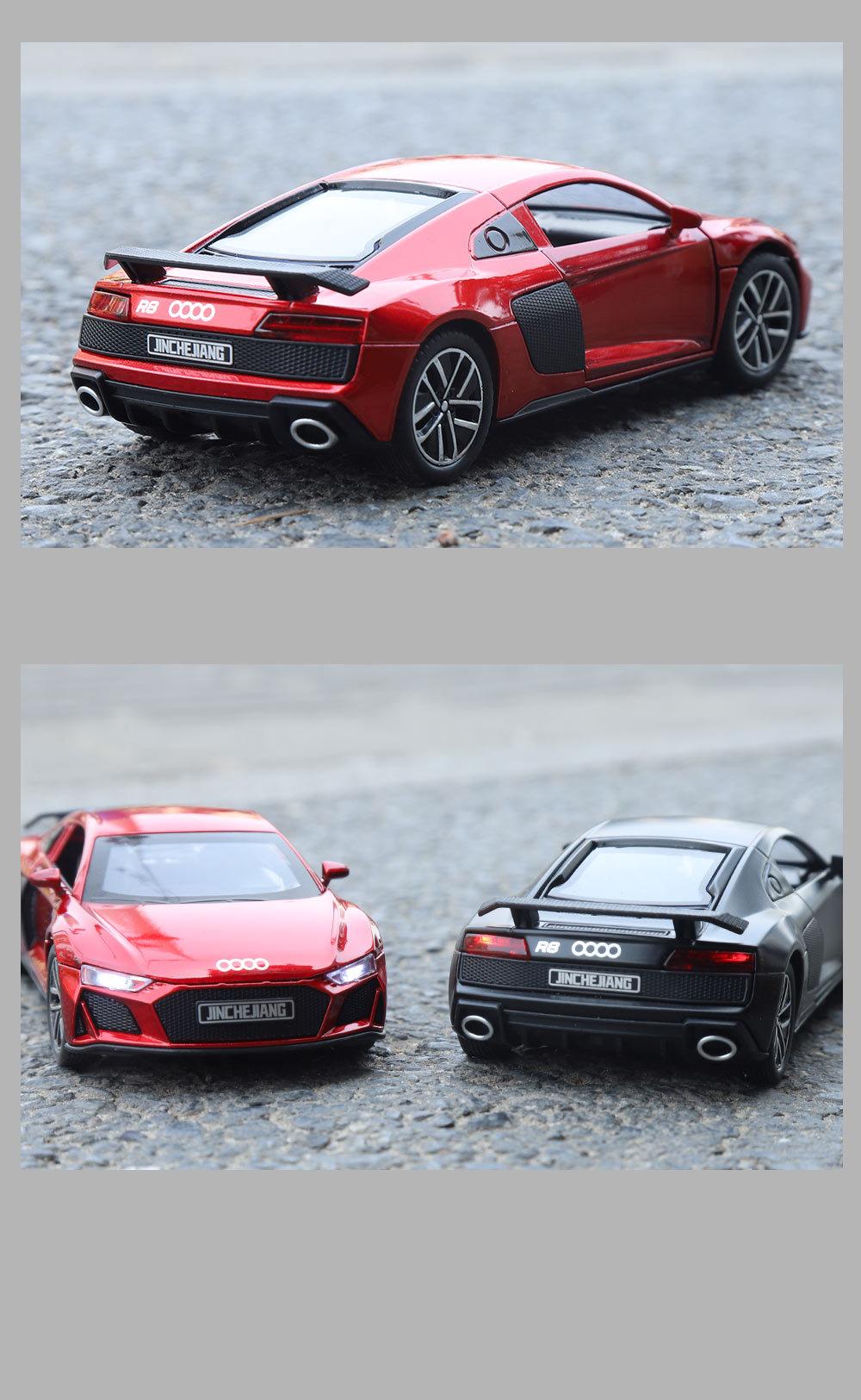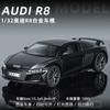 1:32 Coche deportivo austriaco DI R8 de aleación con sonido y luz, apertura de puertas con retroceso, coche de juguete para niños, modelo de coche de simulación
