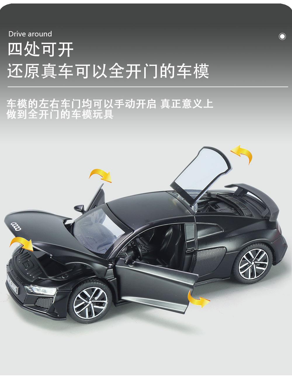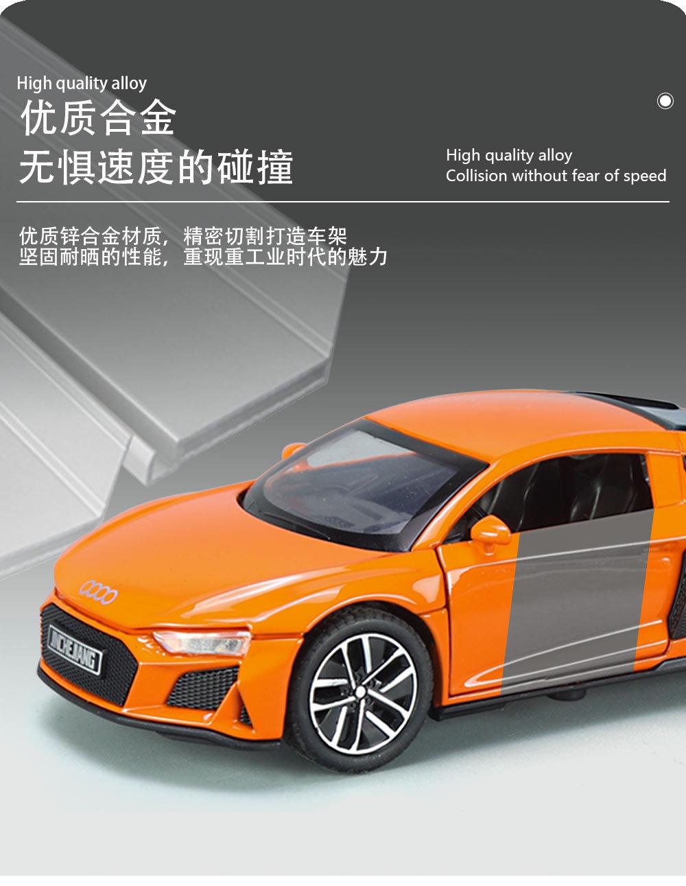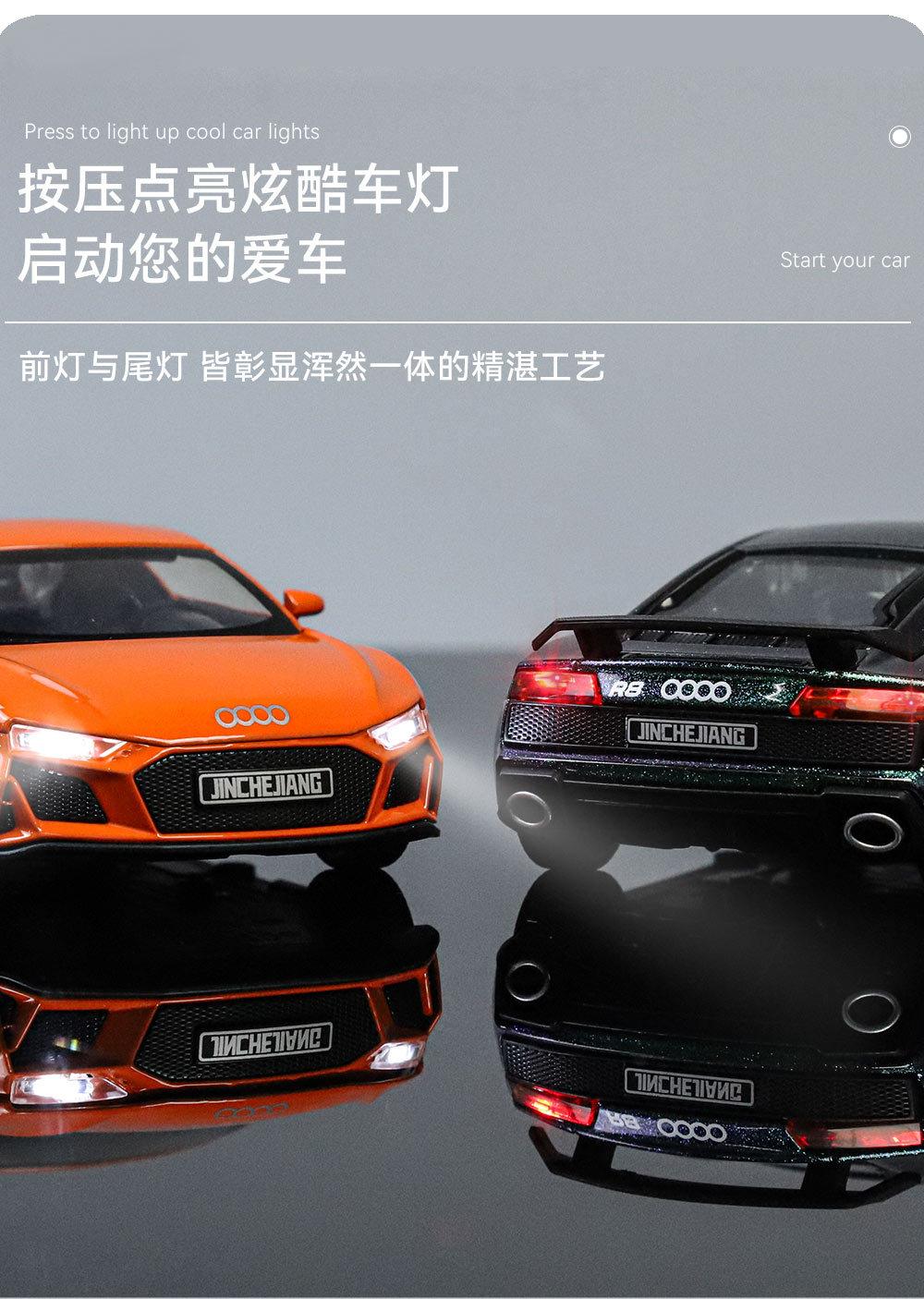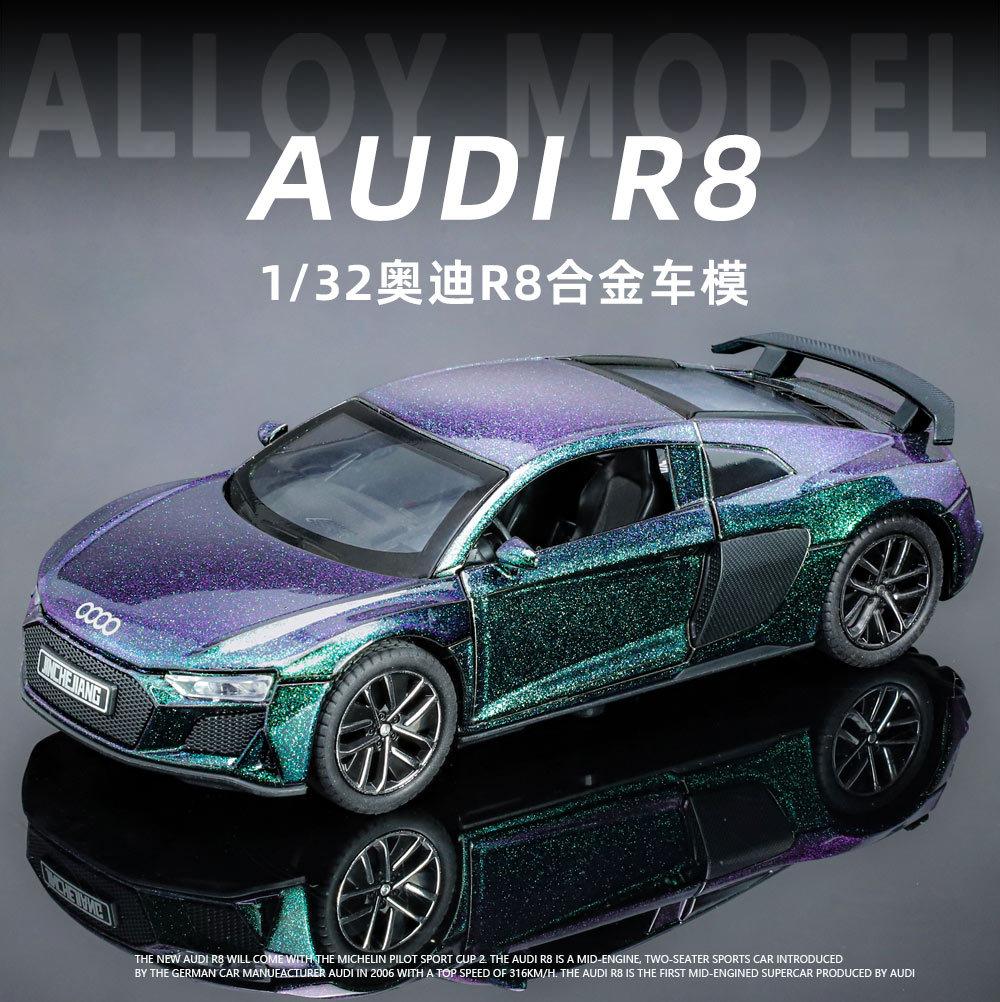 1:32 Coche deportivo austriaco DI R8 de aleación con sonido y luz, apertura de puertas con retroceso, coche de juguete para niños, modelo de coche de simulación