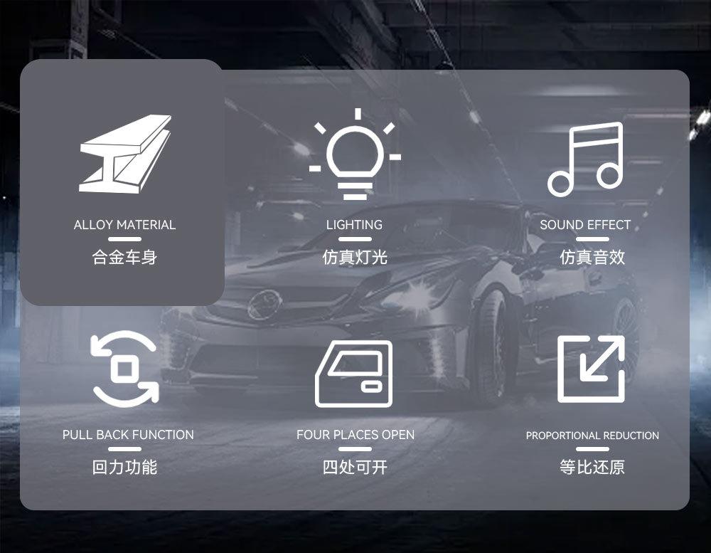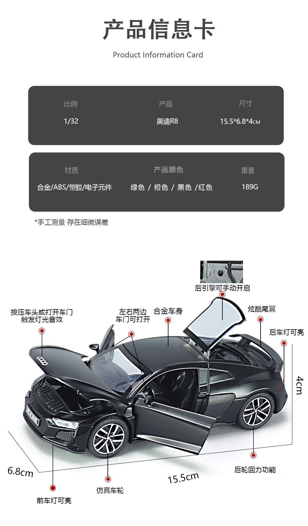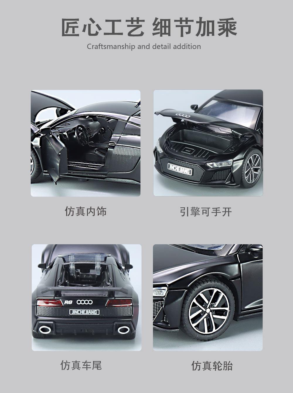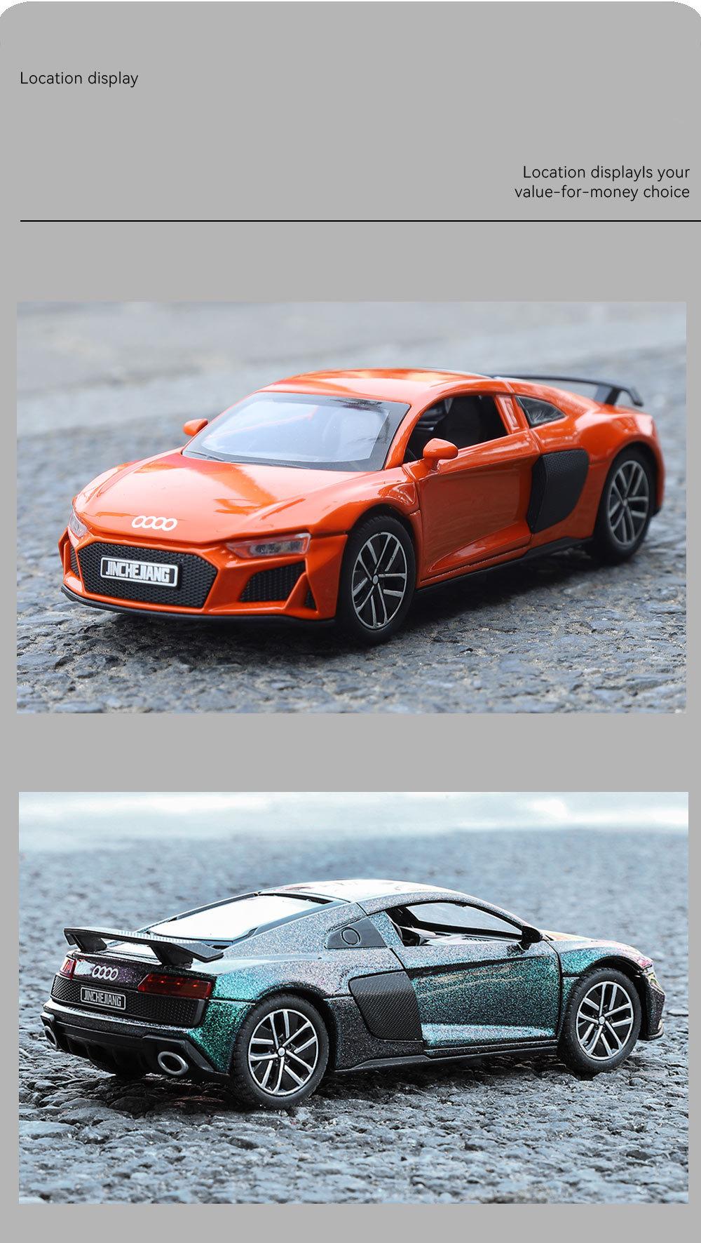 1:32 Coche deportivo austriaco DI R8 de aleación con sonido y luz, apertura de puertas con retroceso, coche de juguete para niños, modelo de coche de simulación