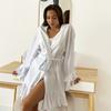 Pijamas de Primavera 2025 Cárdigan para Mujer Satén de Plumas Camisón Suelto Transfronterizo Largo Bata Europea y Americana Ropa de Casa para Mujer