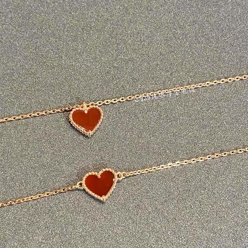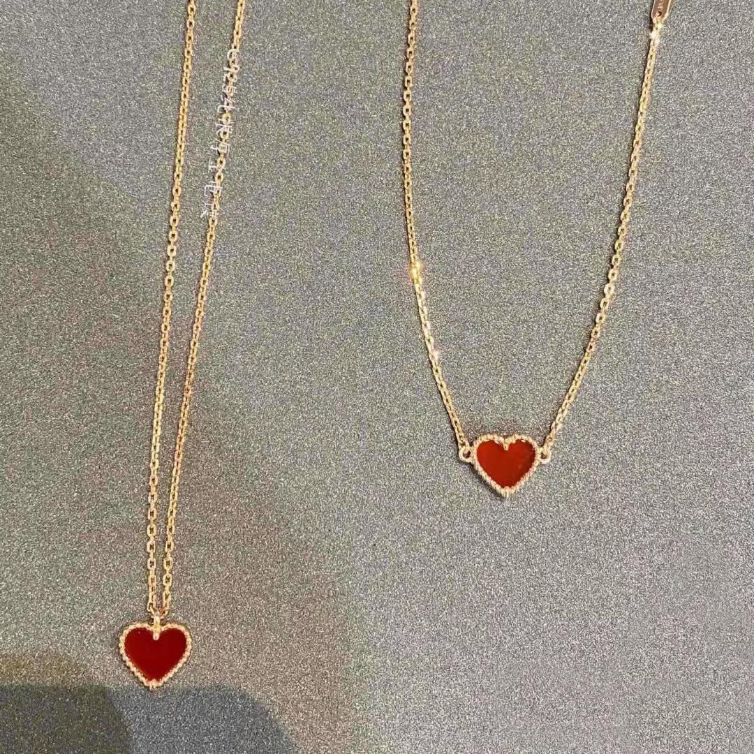 Collar de oro rosa de 18 quilates con forma de corazón pequeño, versión alta, para mujer, grueso, chapado en oro rosa, con cadena de clavícula de ágata roja en forma de corazón, venta al por mayor de fábrica