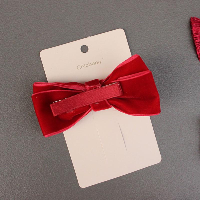 Wine red velvet single-layer bow hairpin
