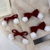 Wine red velvet bow fur ball tassel hair clip