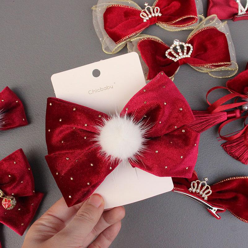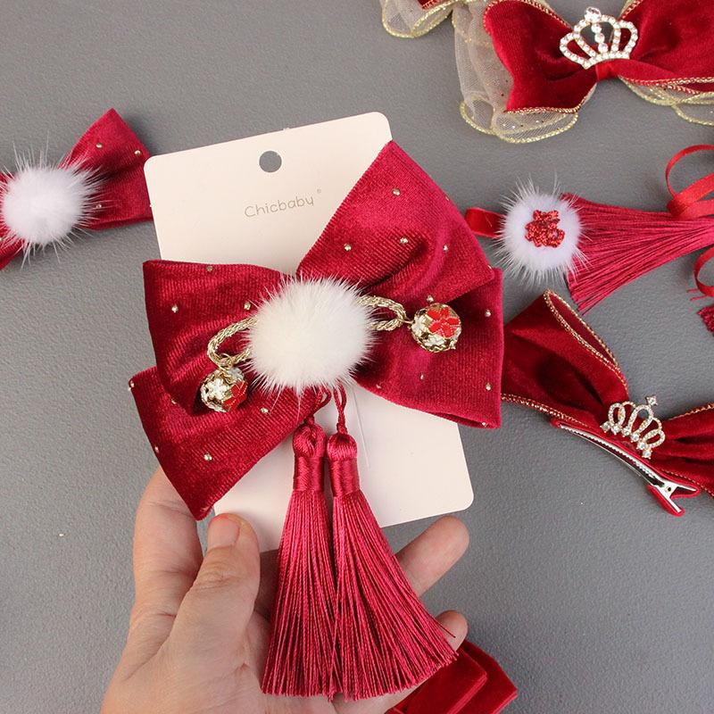 Conjunto de tocado para bebé con horquilla y lazo para el pelo de niña coreana, accesorios para el pelo de Año Nuevo para niña, venta al por mayor