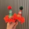 Tocado de Navidad de Año Nuevo para niños horquilla de lazo con borla rojo vino horquilla dorada de terciopelo bola de piel horquilla para niños al por mayor