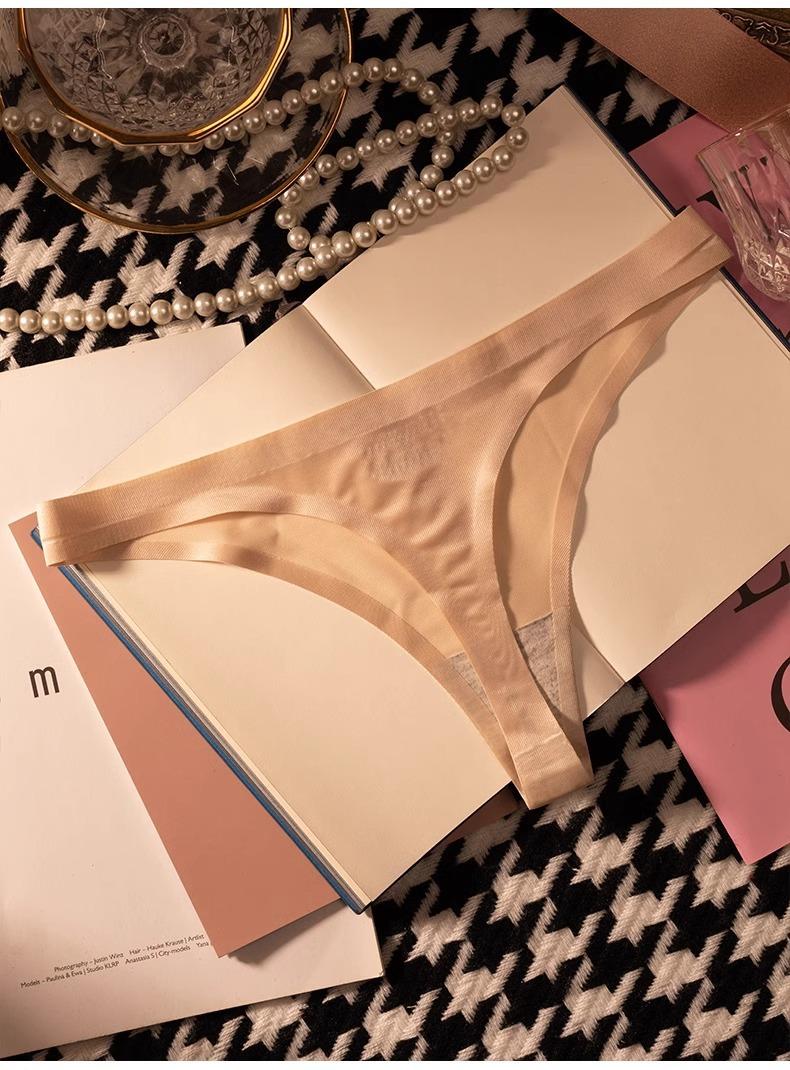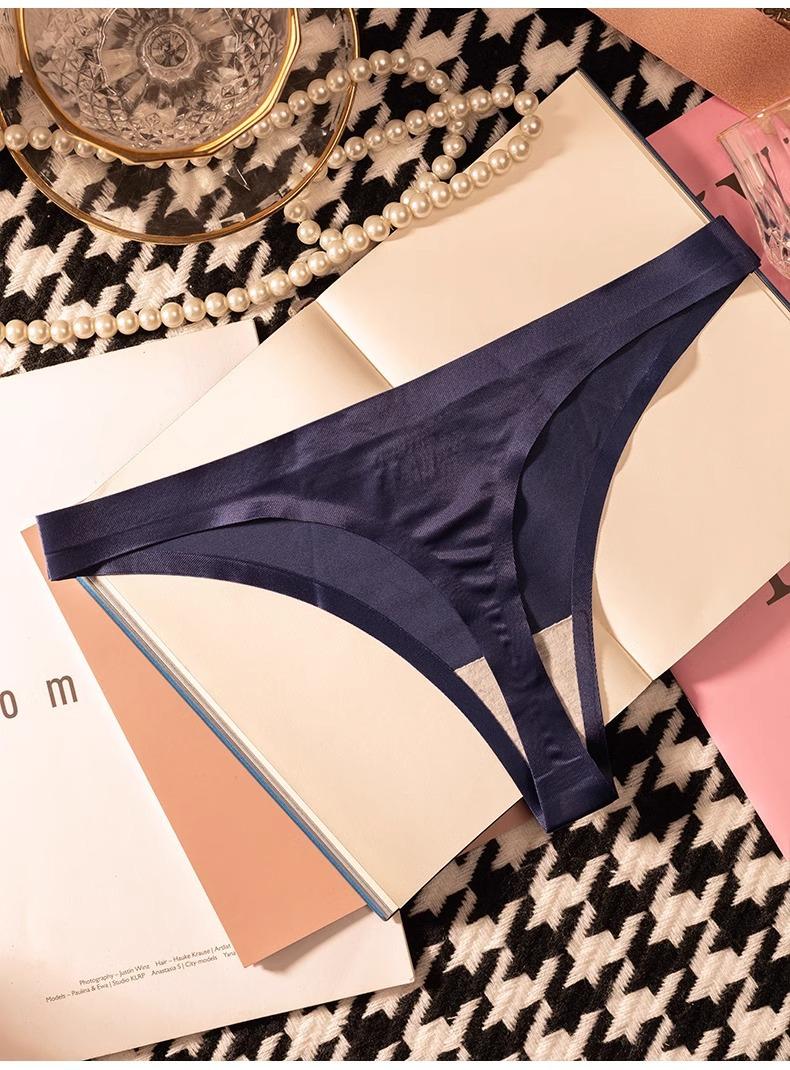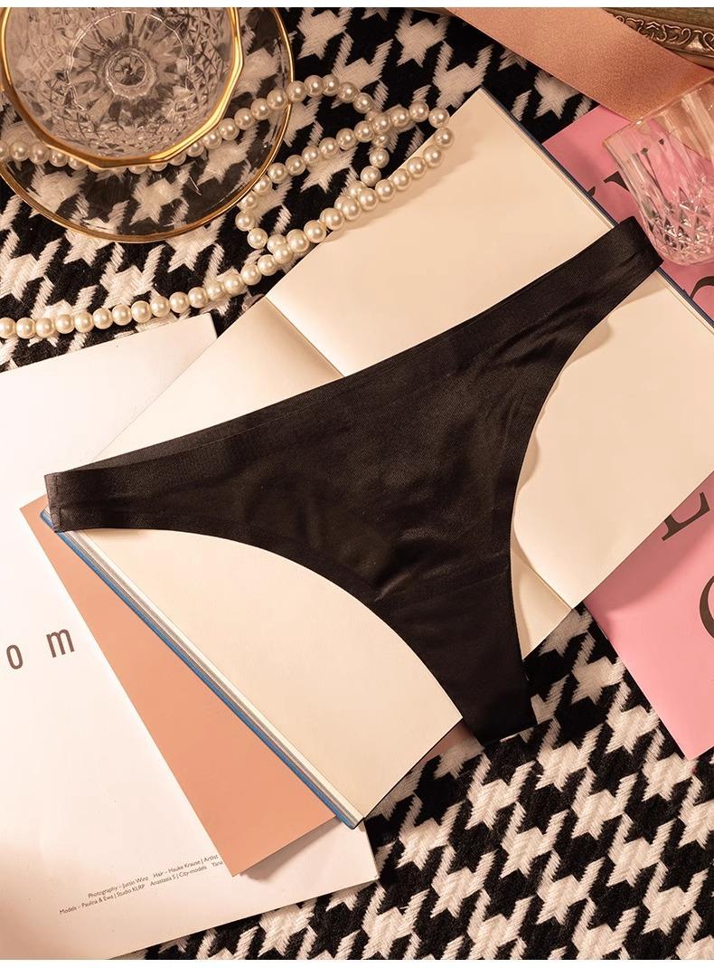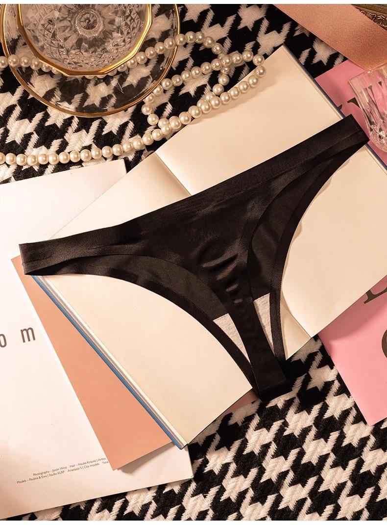 Tanga de una pieza europea y americana para mujer, sin costuras, fina, de seda helada, sexy, para mujer, con perspectiva deportiva y de fitness, pantalones tipo T triangulares