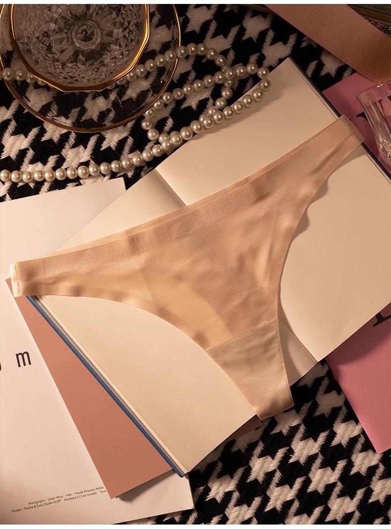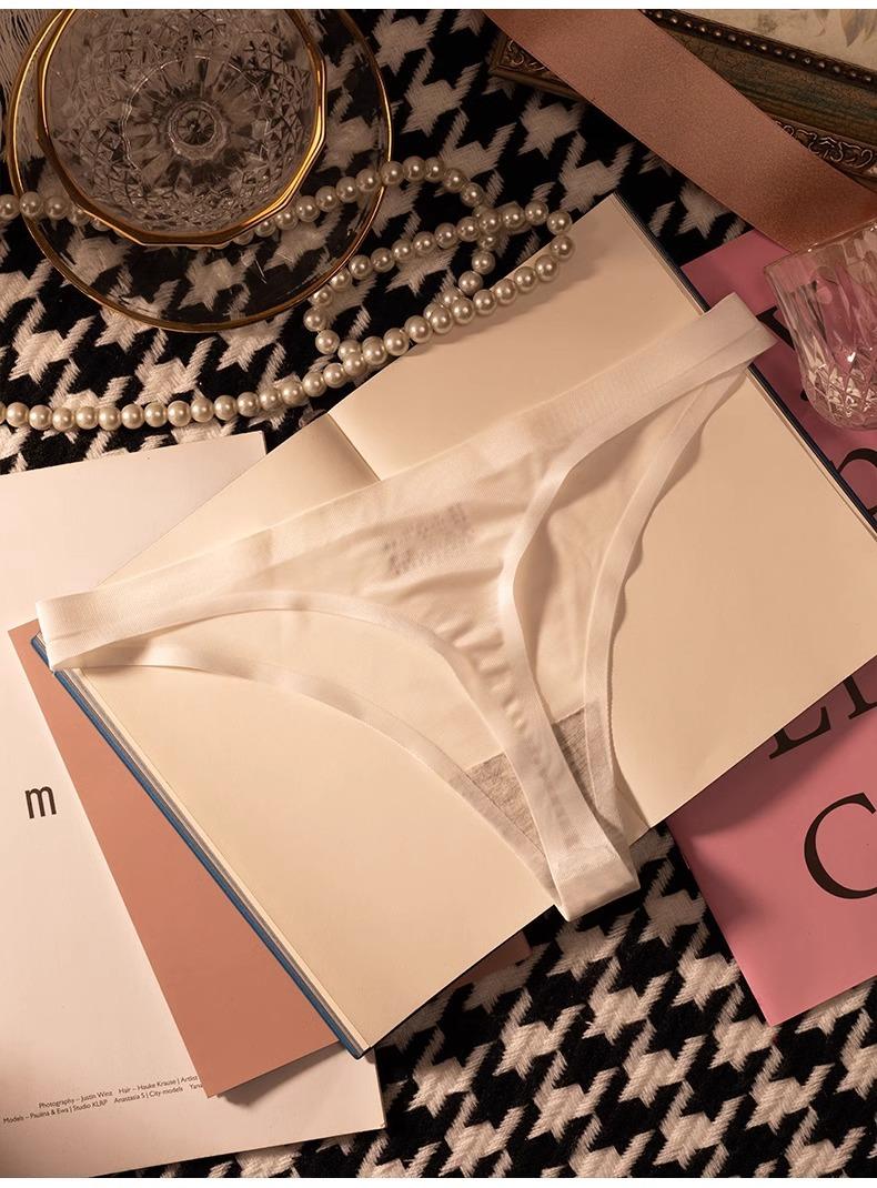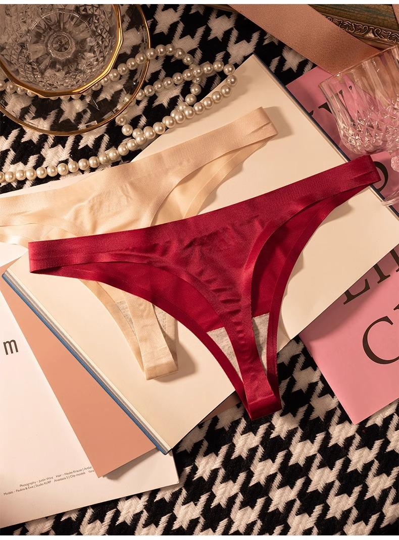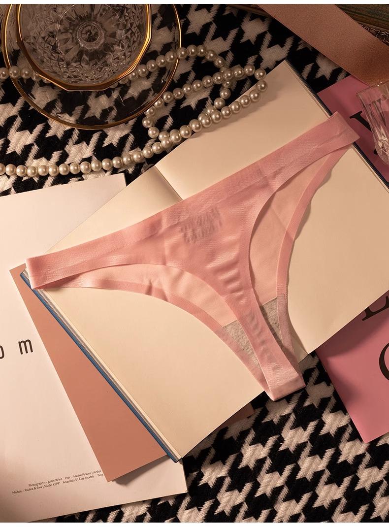 Tanga de una pieza europea y americana para mujer, sin costuras, fina, de seda helada, sexy, para mujer, con perspectiva deportiva y de fitness, pantalones tipo T triangulares