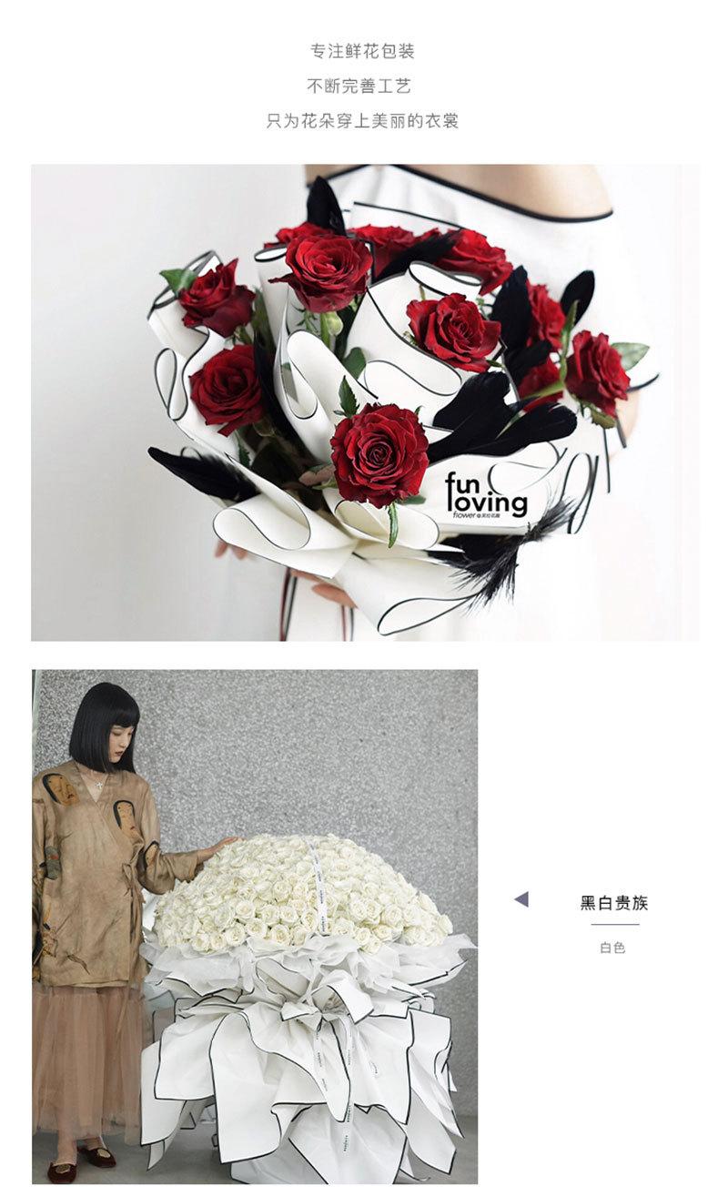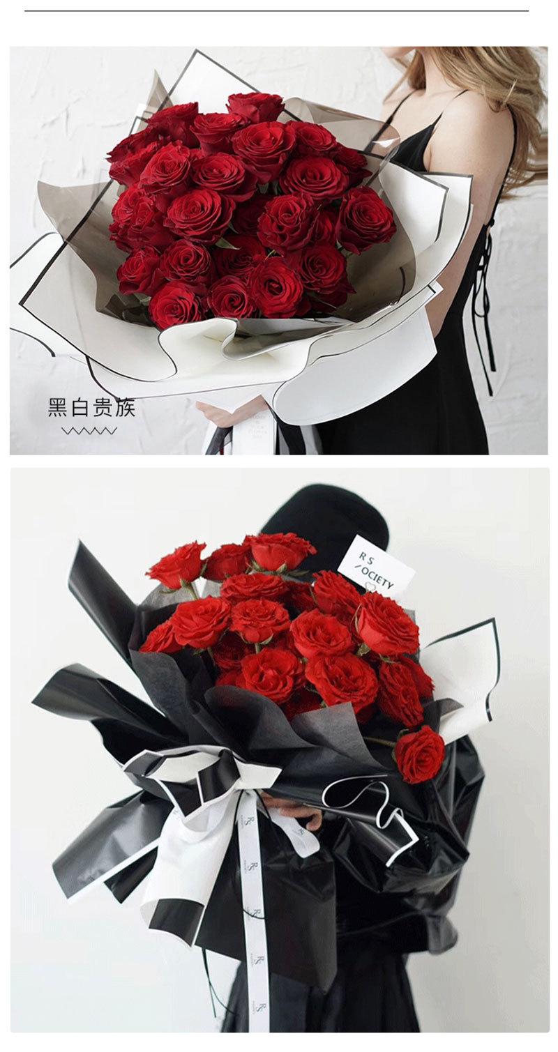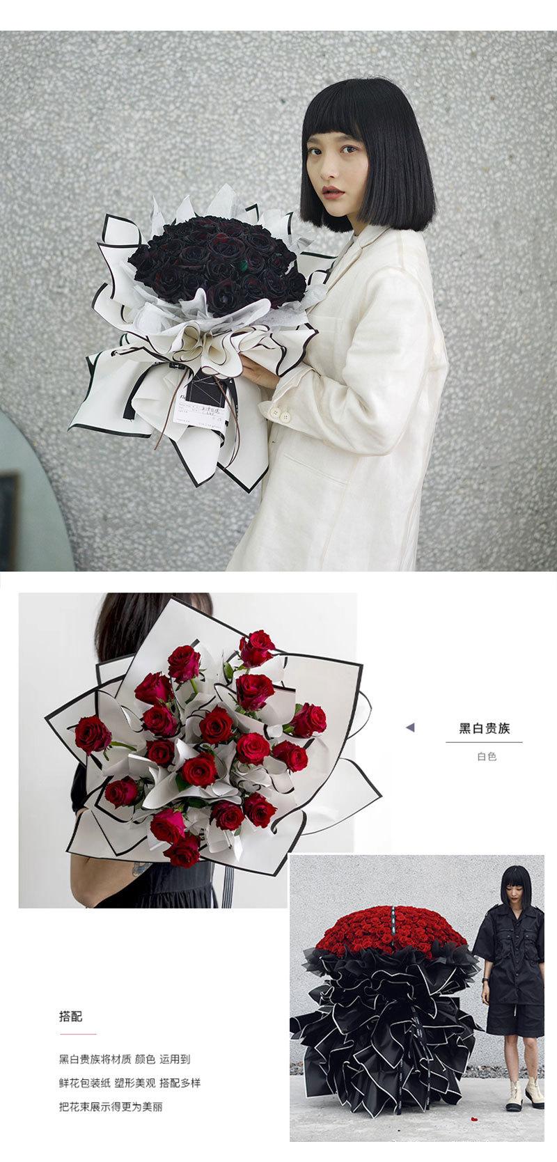 Papel de regalo de flores nobles en blanco y negro, papel de regalo floral impermeable, papel de regalo de rosas para el Día de San Valentín, materiales de película de gelatina