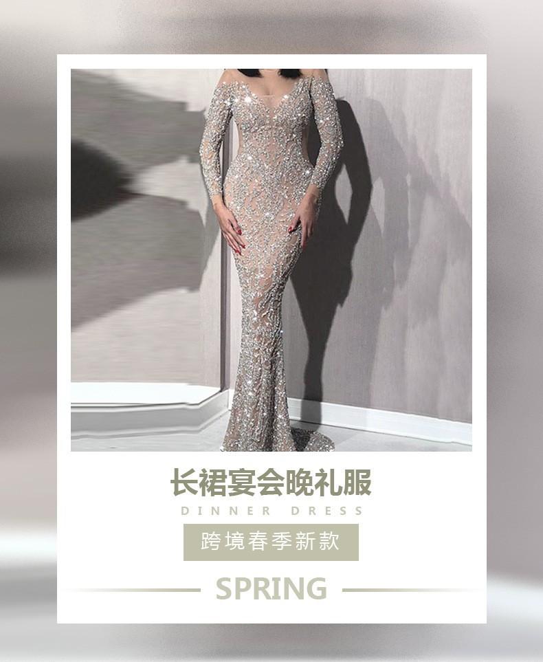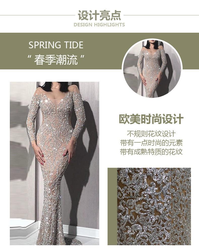 2025 Primavera Transfronteriza Nuevo Exportación Europea y Americana Ropa de Mujer Bronceado Manga Larga Ajustado Sexy Falda Larga Vestido de Noche de Banquete