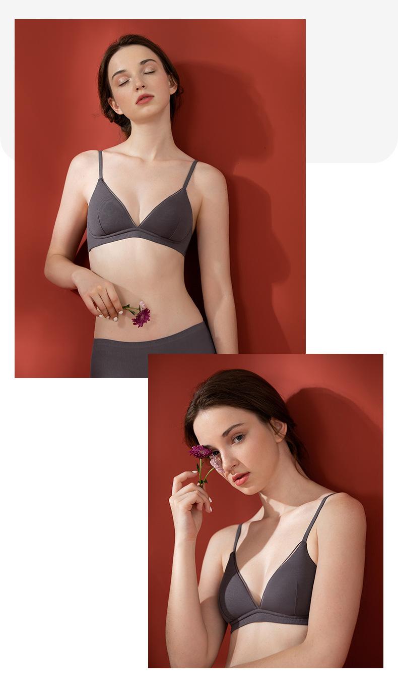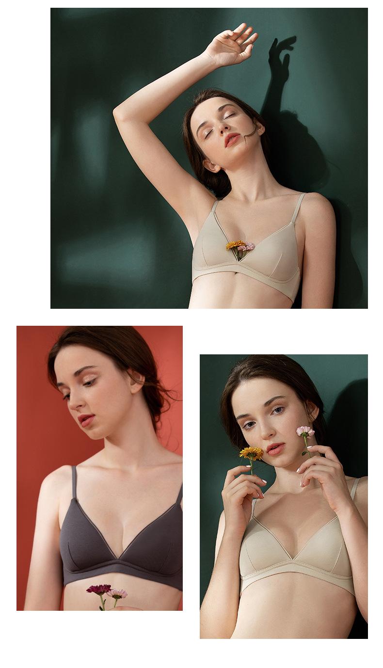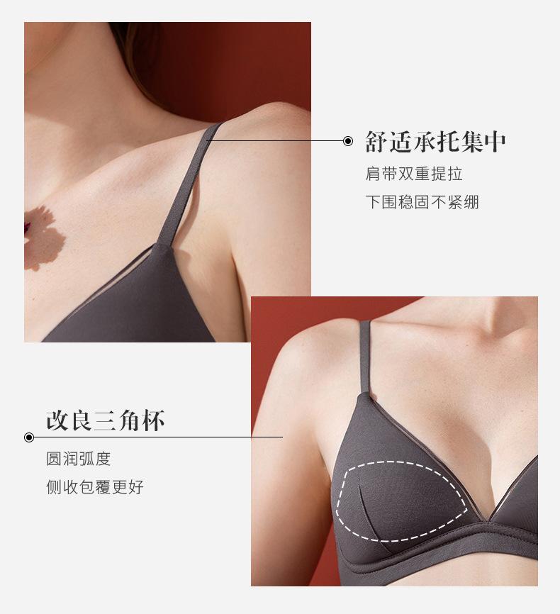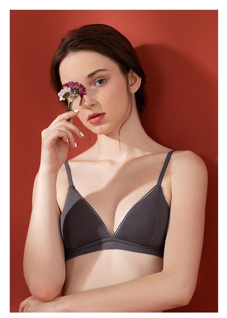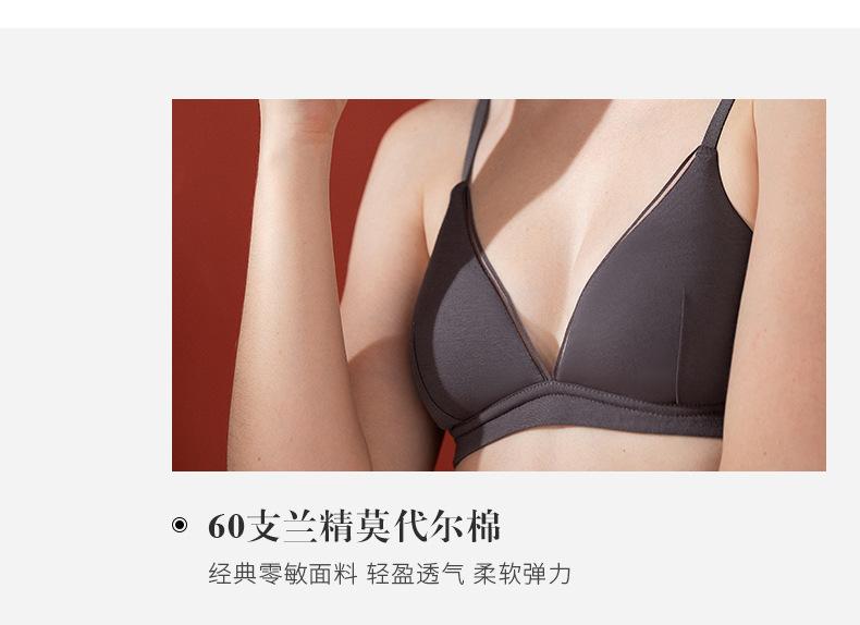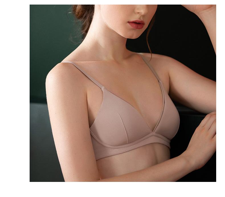 Sujetador fino sexy modal sin aros de acero, ajustable, para realzar el pecho, ropa interior con copa triangular y cobertura de leche.