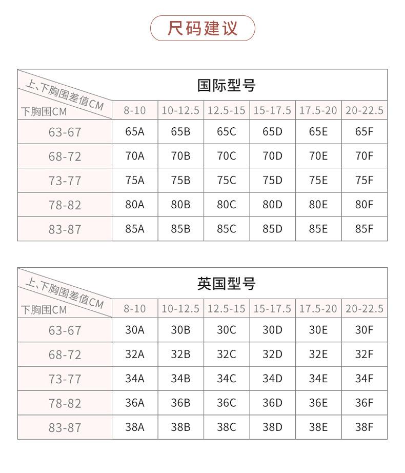 S(65A/65B/65C/70A), M(70B/70C/75A/75B), L(75C/80A/80B/85A)