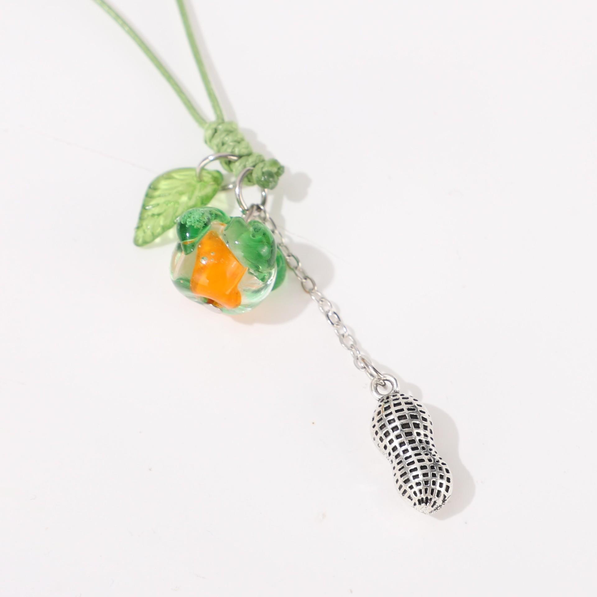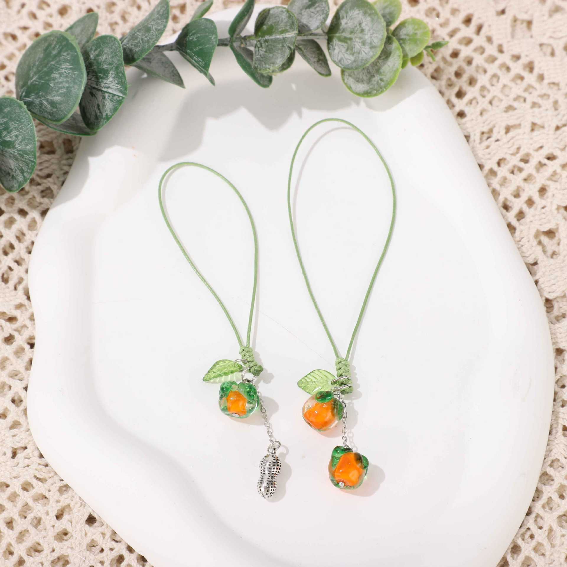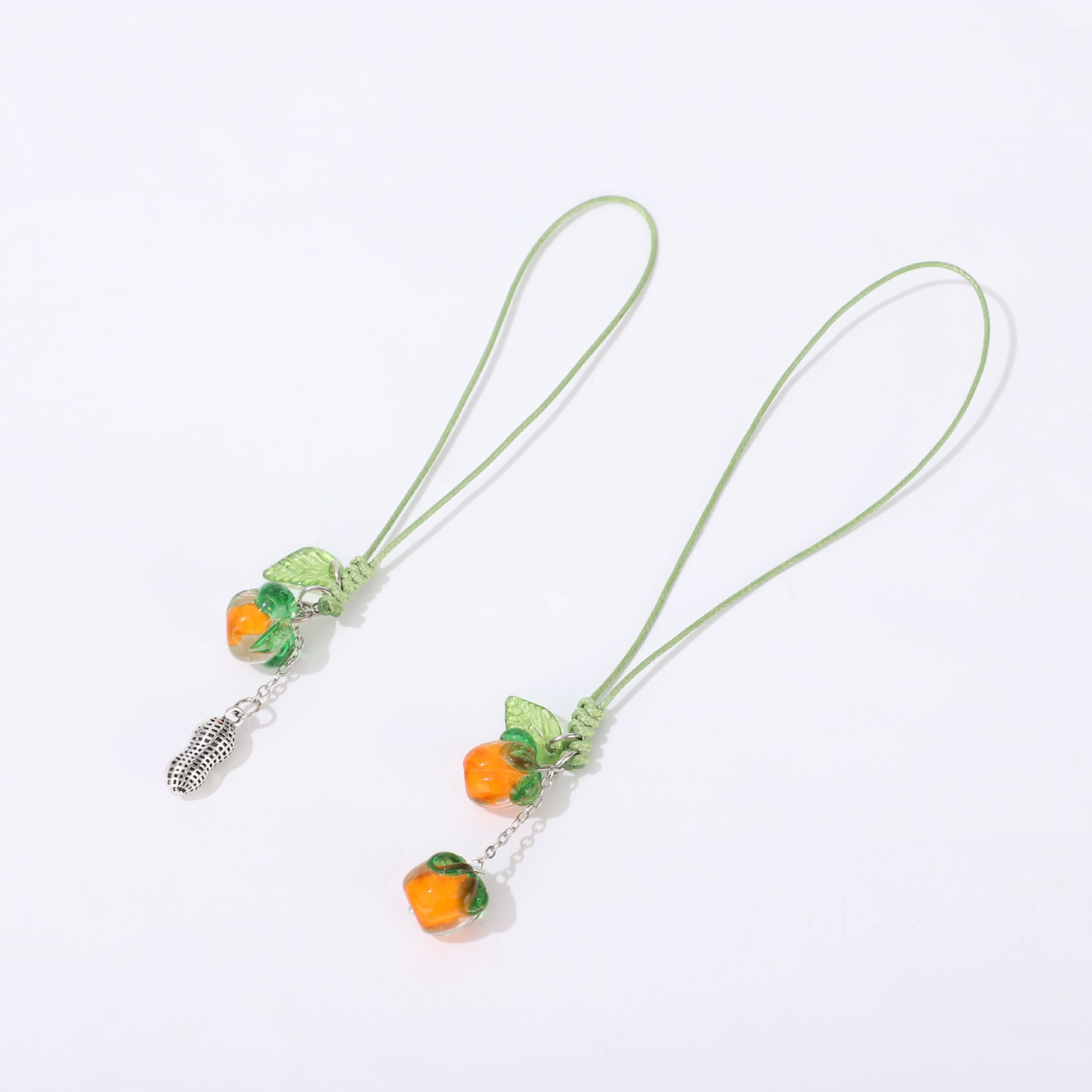 Colgante de caqui para teléfono móvil, pequeño colgante, llavero tejido de cristal abierto, adorno pequeño