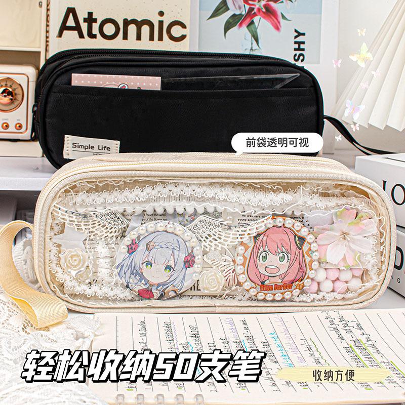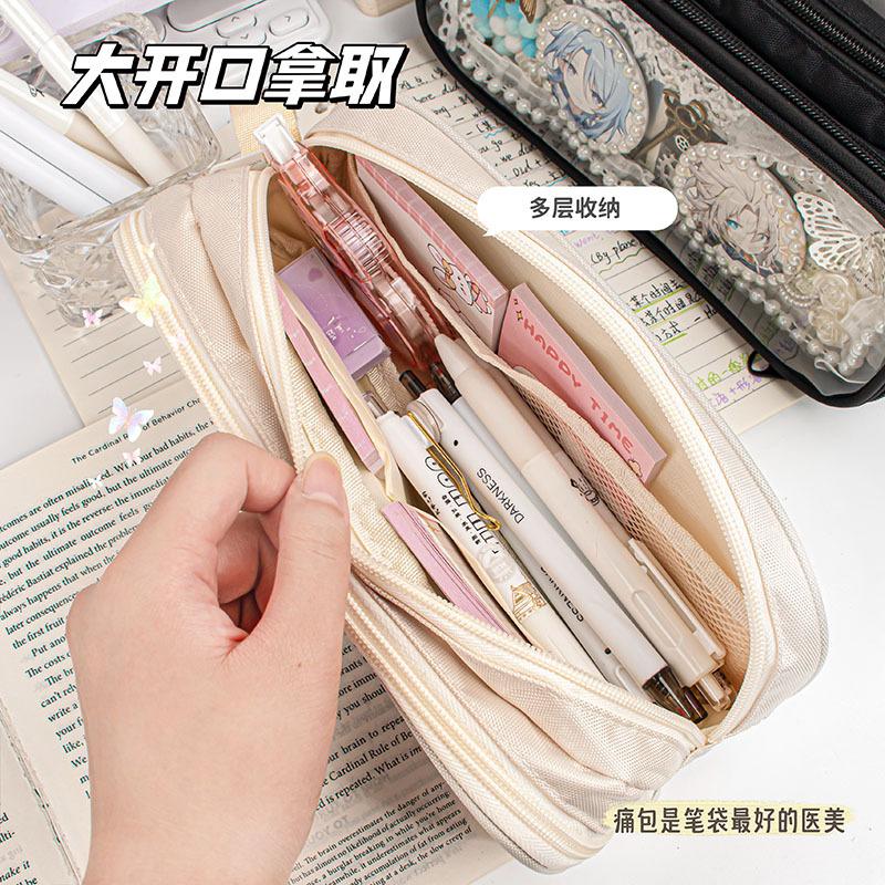 Bolsa de Dolor de Gran Capacidad de Doble Cara Bolsa para Lápices para Niñas de Primaria Nuevo Estuche Transparente de Alto Valor Caja de Papelería Bolsa para Lápices