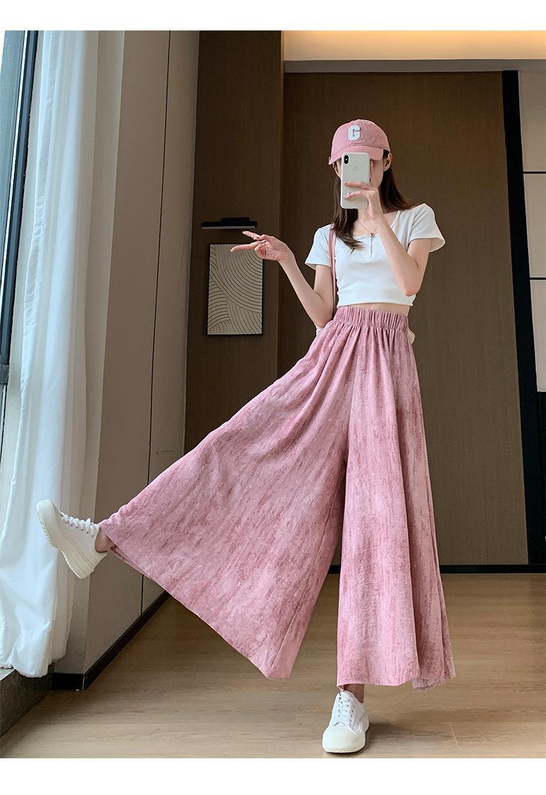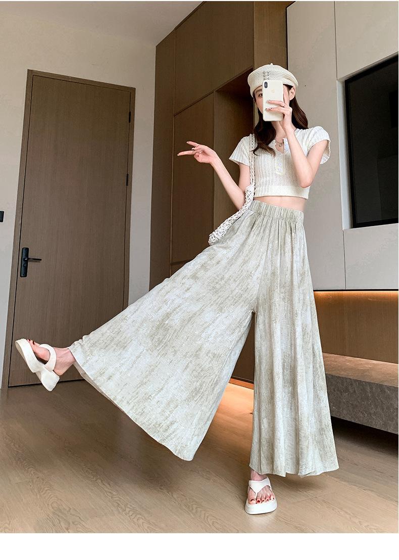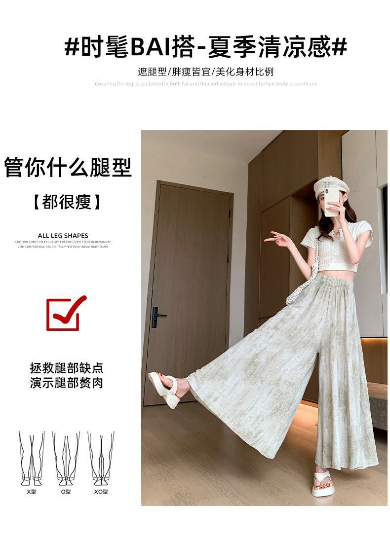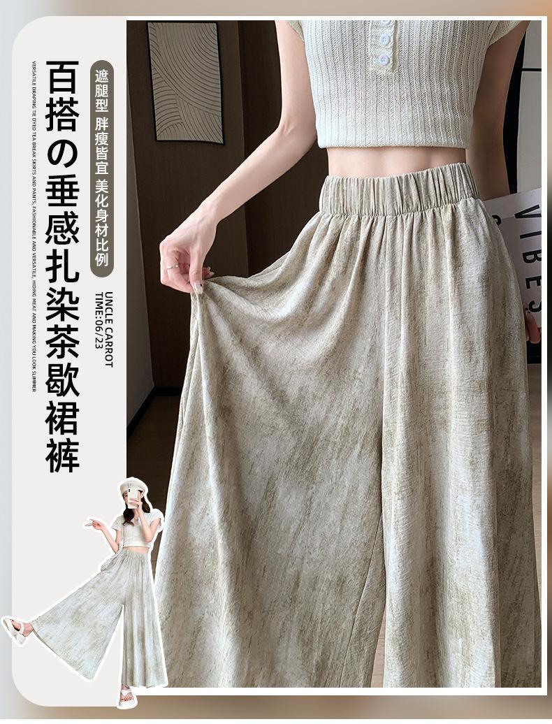 Verano 2025 Nuevo Elegante Culottes Tie-Dye de Seda de Hielo Transfronterizo para Mujer de Cintura Alta con Aspecto Adelgazante Drapeados Sueltos Casuales de Pierna Ancha