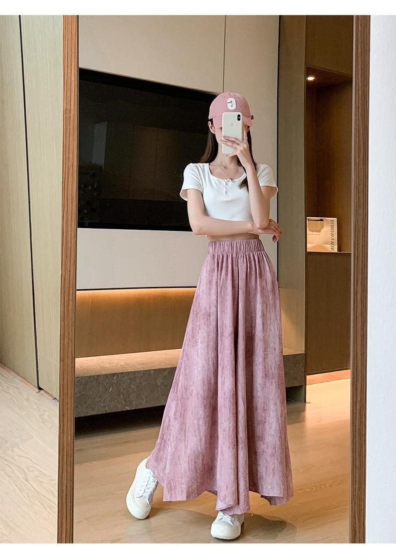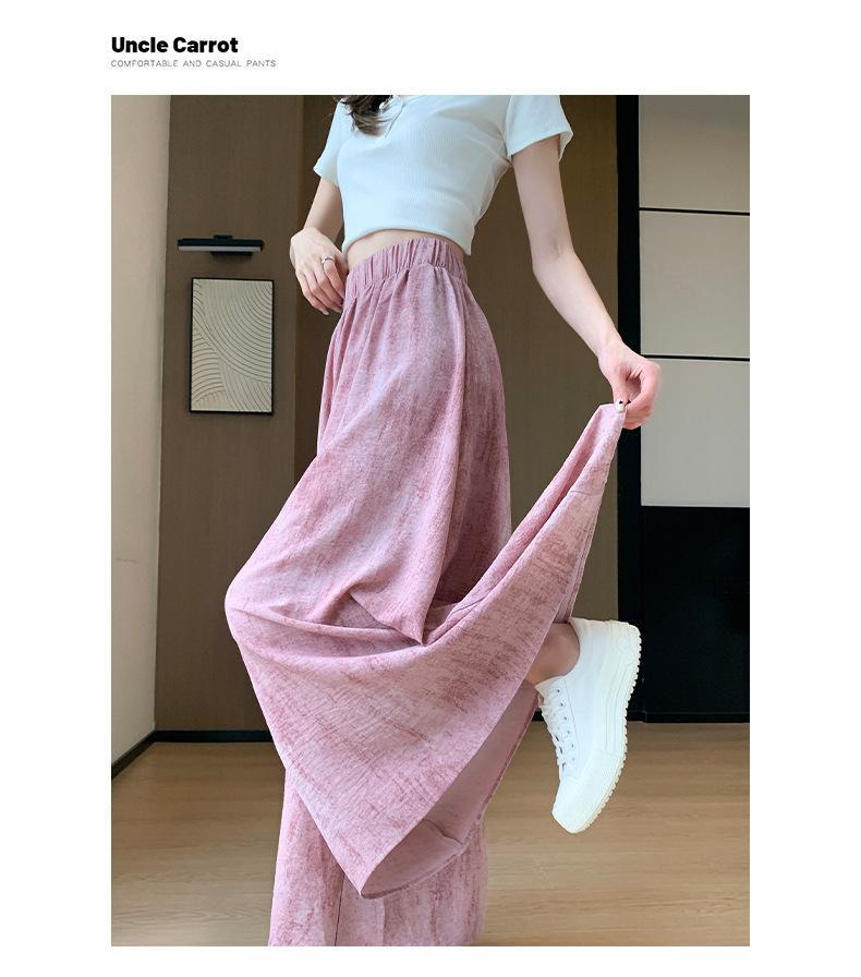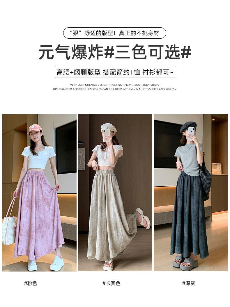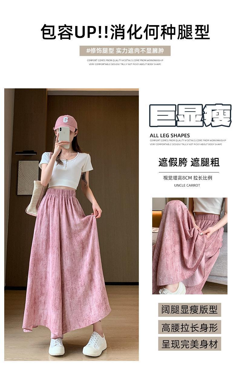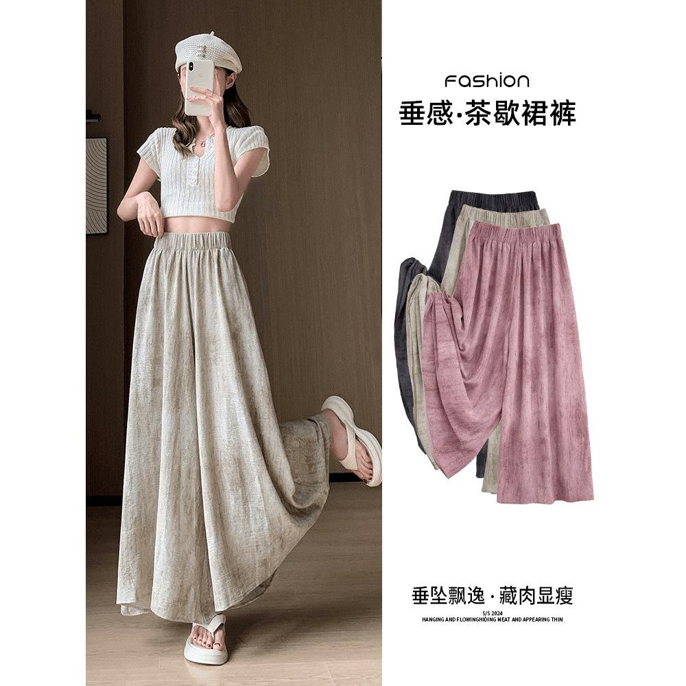 Verano 2025 Nuevo Elegante Culottes Tie-Dye de Seda de Hielo Transfronterizo para Mujer de Cintura Alta con Aspecto Adelgazante Drapeados Sueltos Casuales de Pierna Ancha