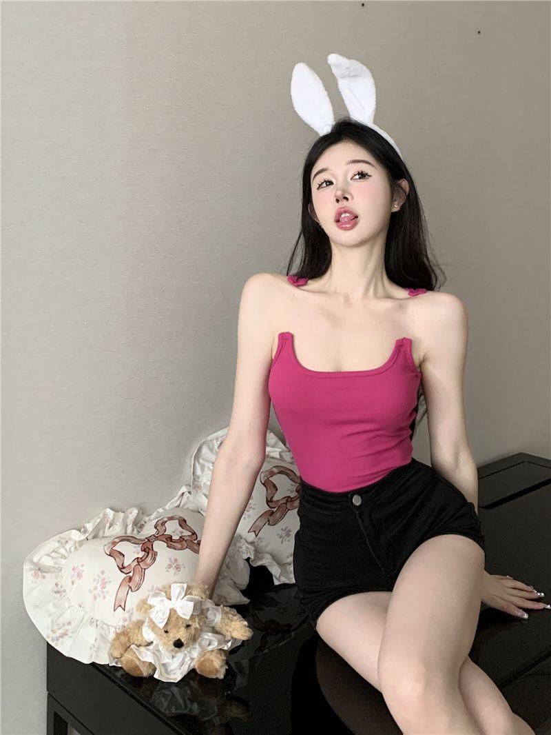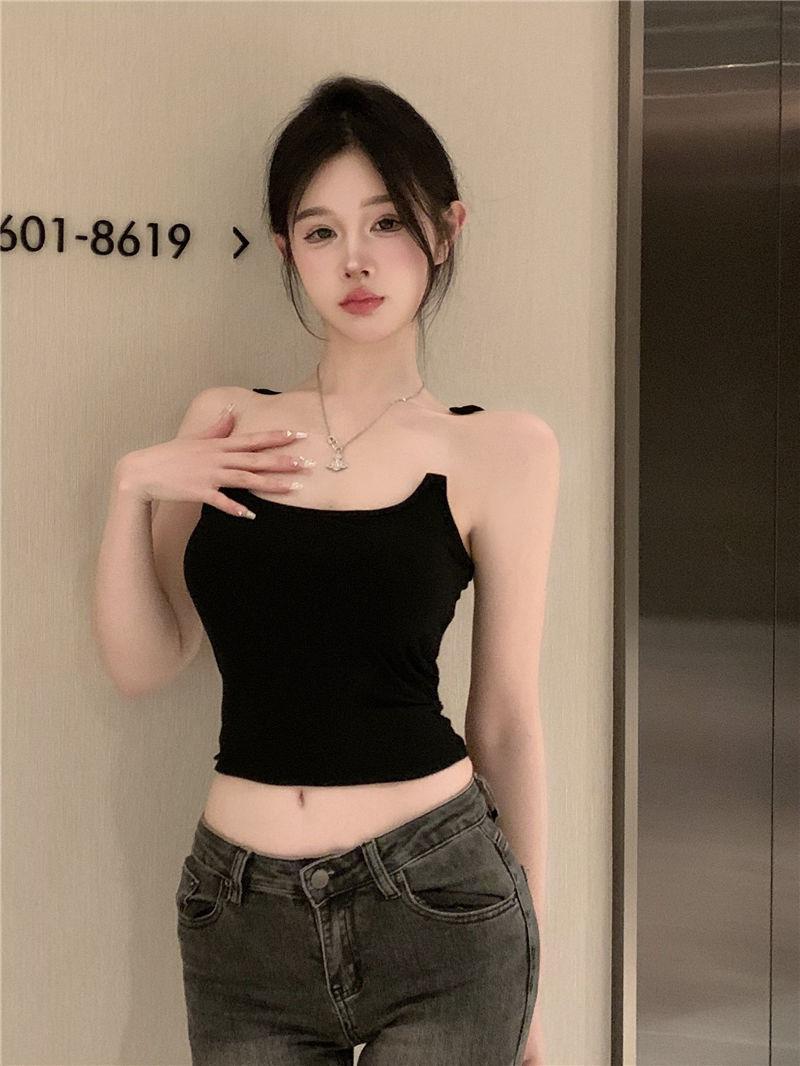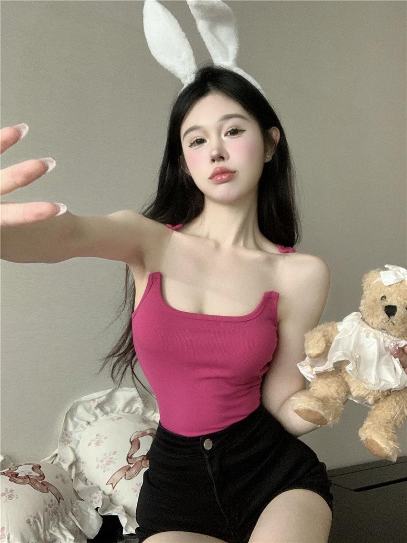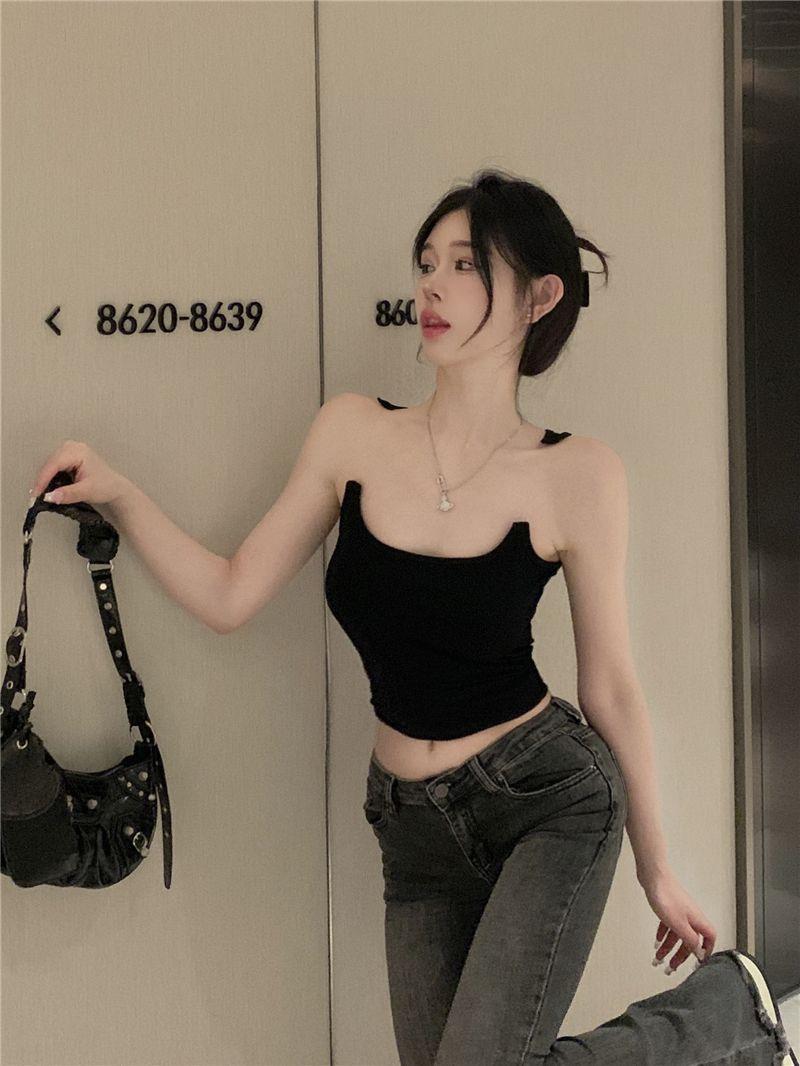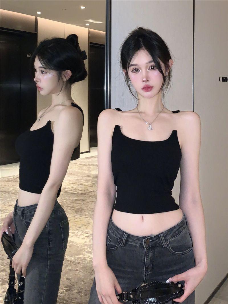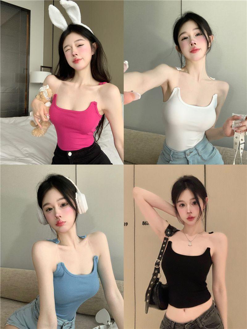 Camisola de Tirantes Invisibles para Mujer Verano Ropa Exterior Estilo Lujuria Pura Dulce Hottie Nuevo Top de Tubo Corto de Color Puro