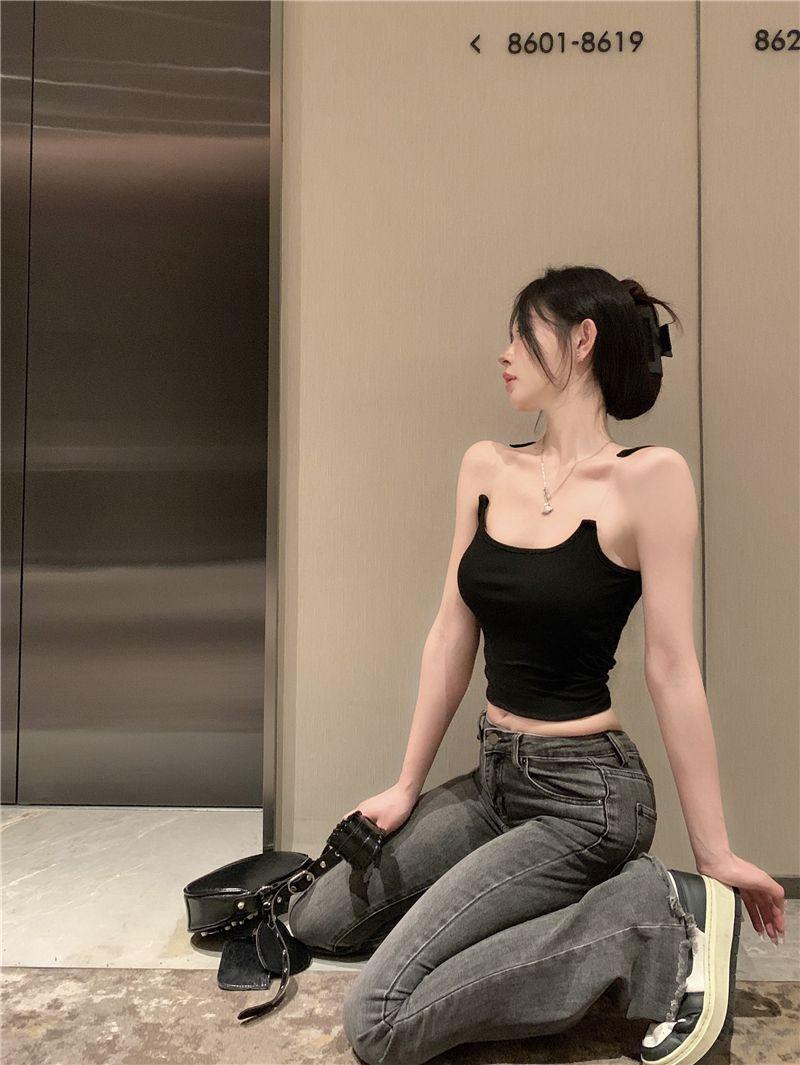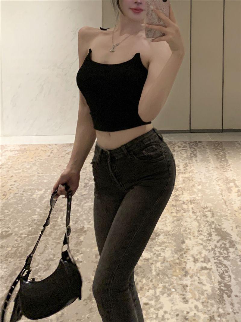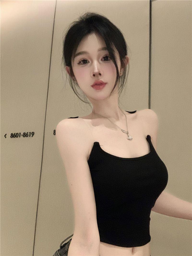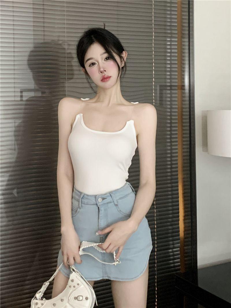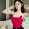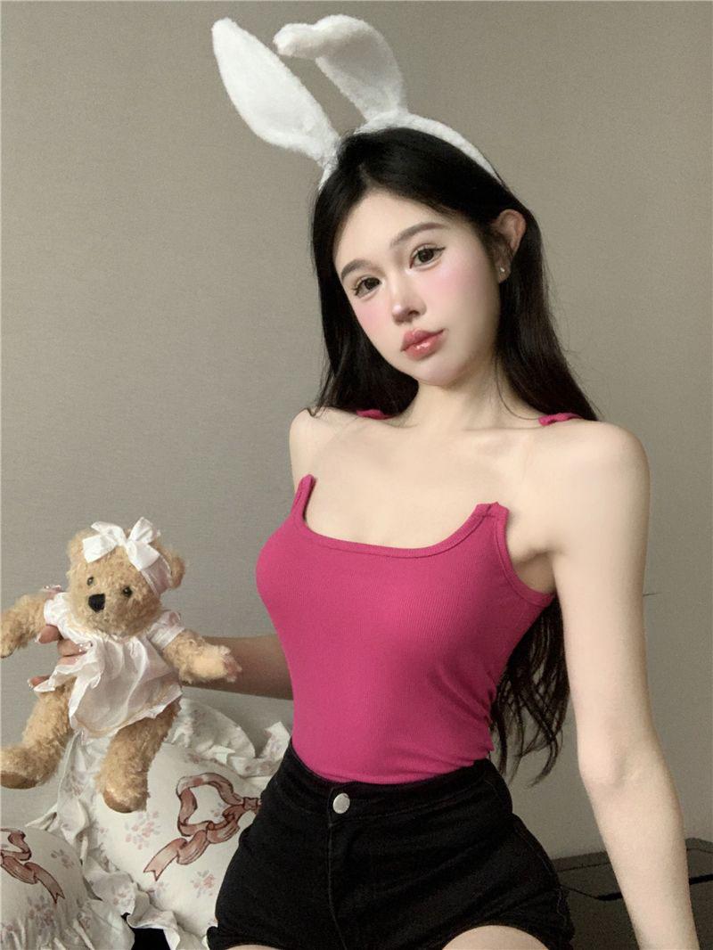 Camisola de Tirantes Invisibles para Mujer Verano Ropa Exterior Estilo Lujuria Pura Dulce Hottie Nuevo Top de Tubo Corto de Color Puro