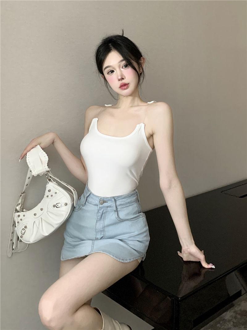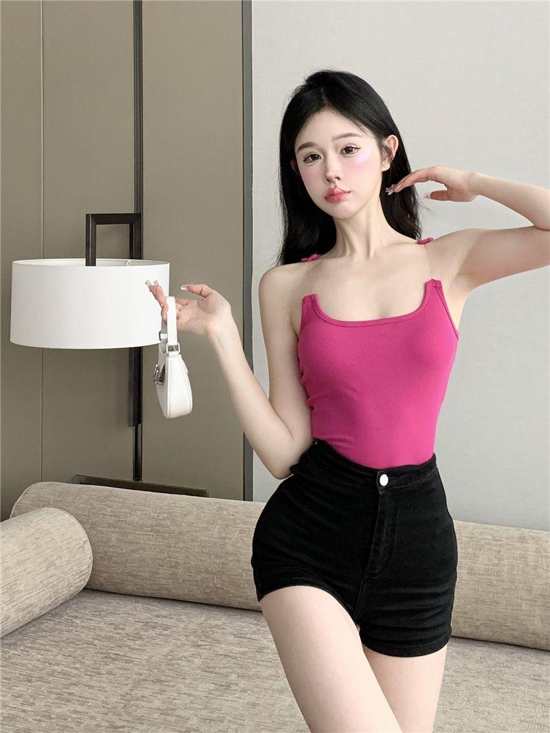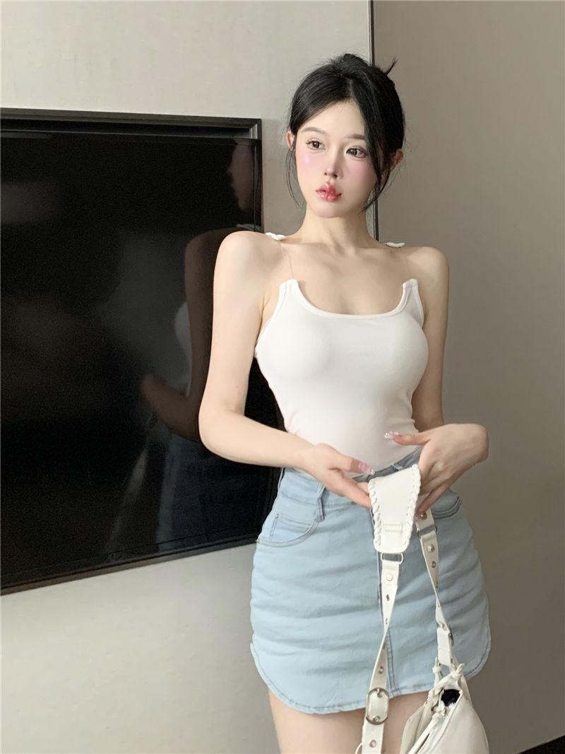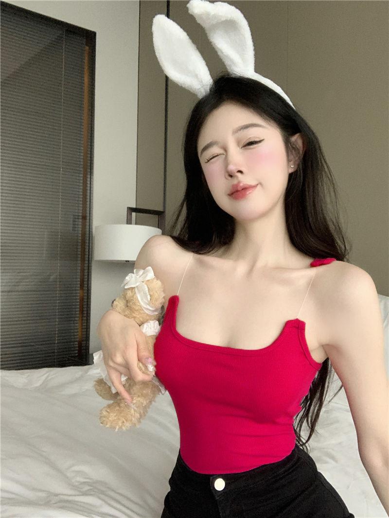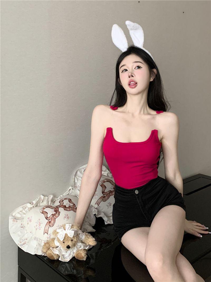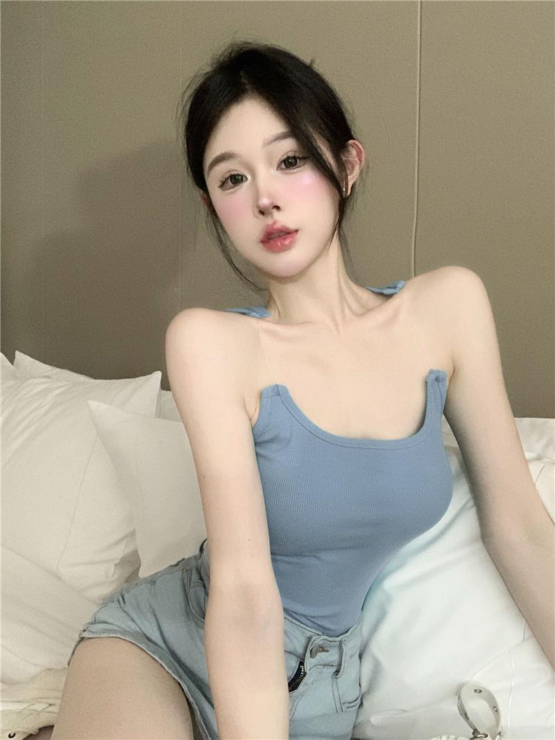 Camisola de Tirantes Invisibles para Mujer Verano Ropa Exterior Estilo Lujuria Pura Dulce Hottie Nuevo Top de Tubo Corto de Color Puro