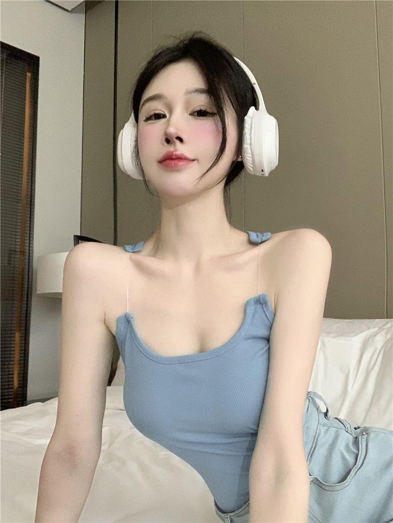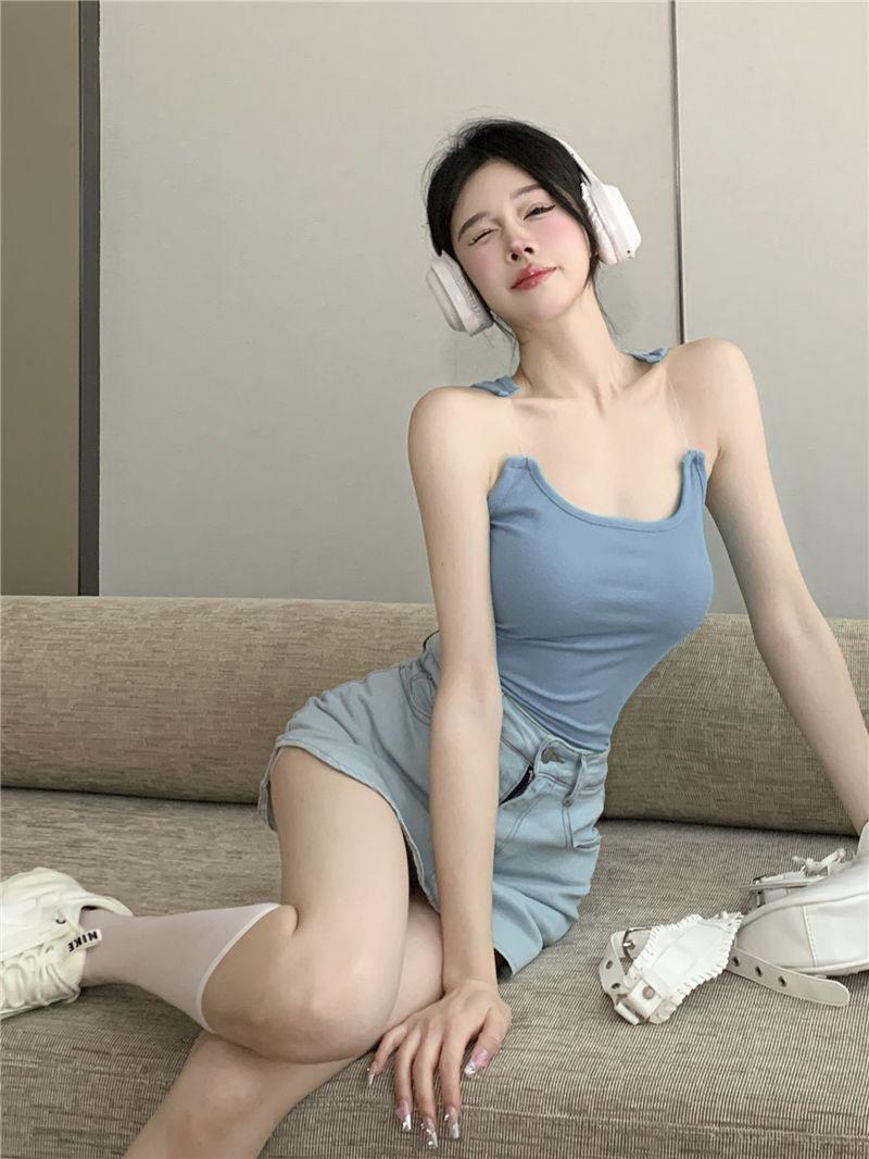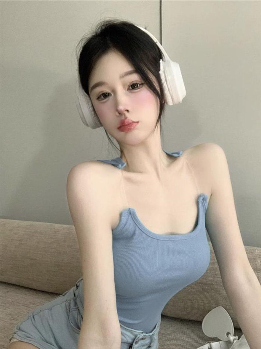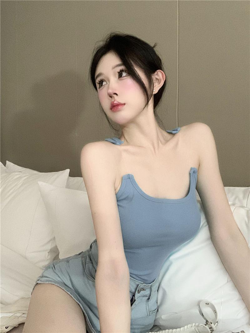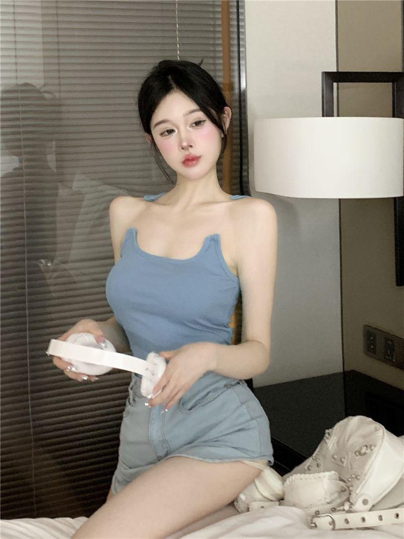 Camisola de Tirantes Invisibles para Mujer Verano Ropa Exterior Estilo Lujuria Pura Dulce Hottie Nuevo Top de Tubo Corto de Color Puro